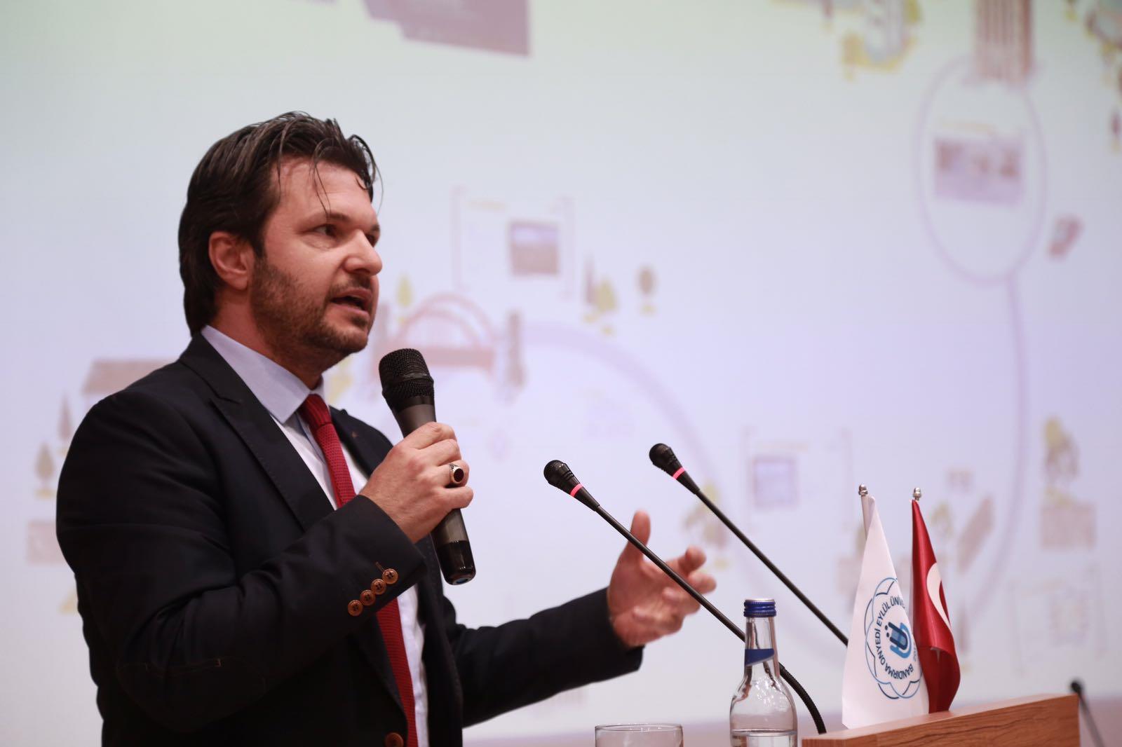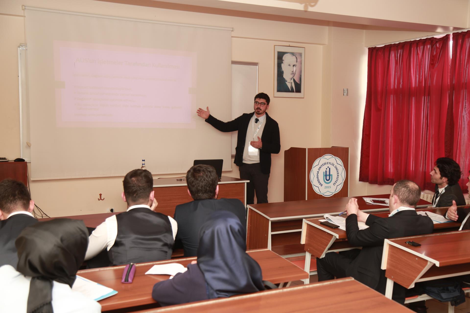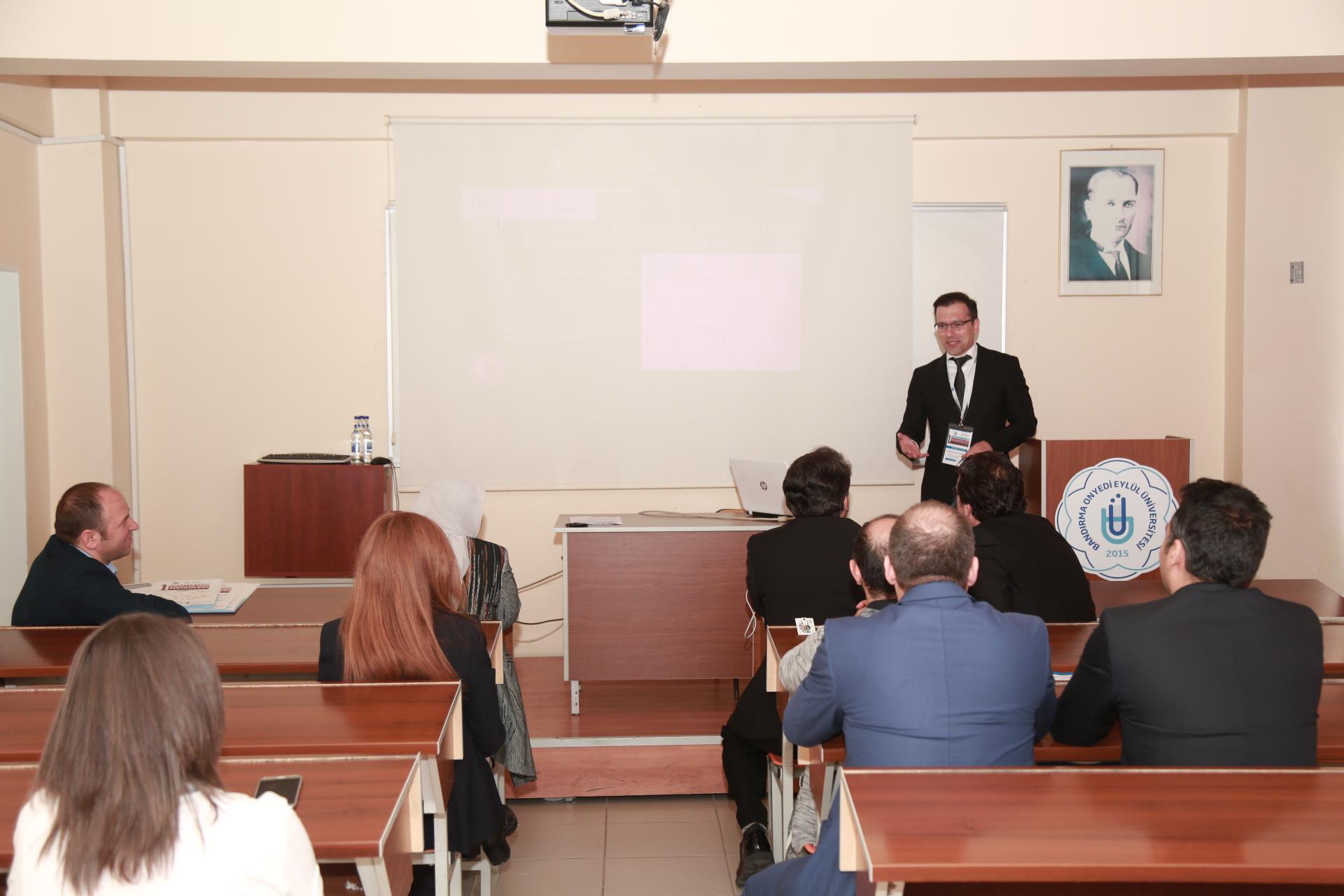 Rektörümüz Prof. Dr. Süleyman Özdemir’in açılış konuşmasıyla başlayan konferansta, protokol konuşmaları bölümünde, Akıllı Ulaşım Sistemleri Derneği (AUSDER) Başkanı Erol Yanar, Balıkesir Büyükşehir Belediyesi Genel Sekreter Yardımcısı Yavuz Subaşı ve Bandırma Kaymakamı Günhan Yazar konuşma gerçekleştirdiler. Konuşmalarının sonunda konuşmacılara Rektörümüz Prof. Dr. Süleyman Özdemir tarafından plaket ve Bandırma gemisi maketi takdim edildi. Konferansın açılış programına ayrıca il ve ilçe protokolü, misafir akademisyenler üniversitemiz öğretim elemanları, öğrencilerimiz ve basın mensupları tarafından yoğun ilgi gösterildi.