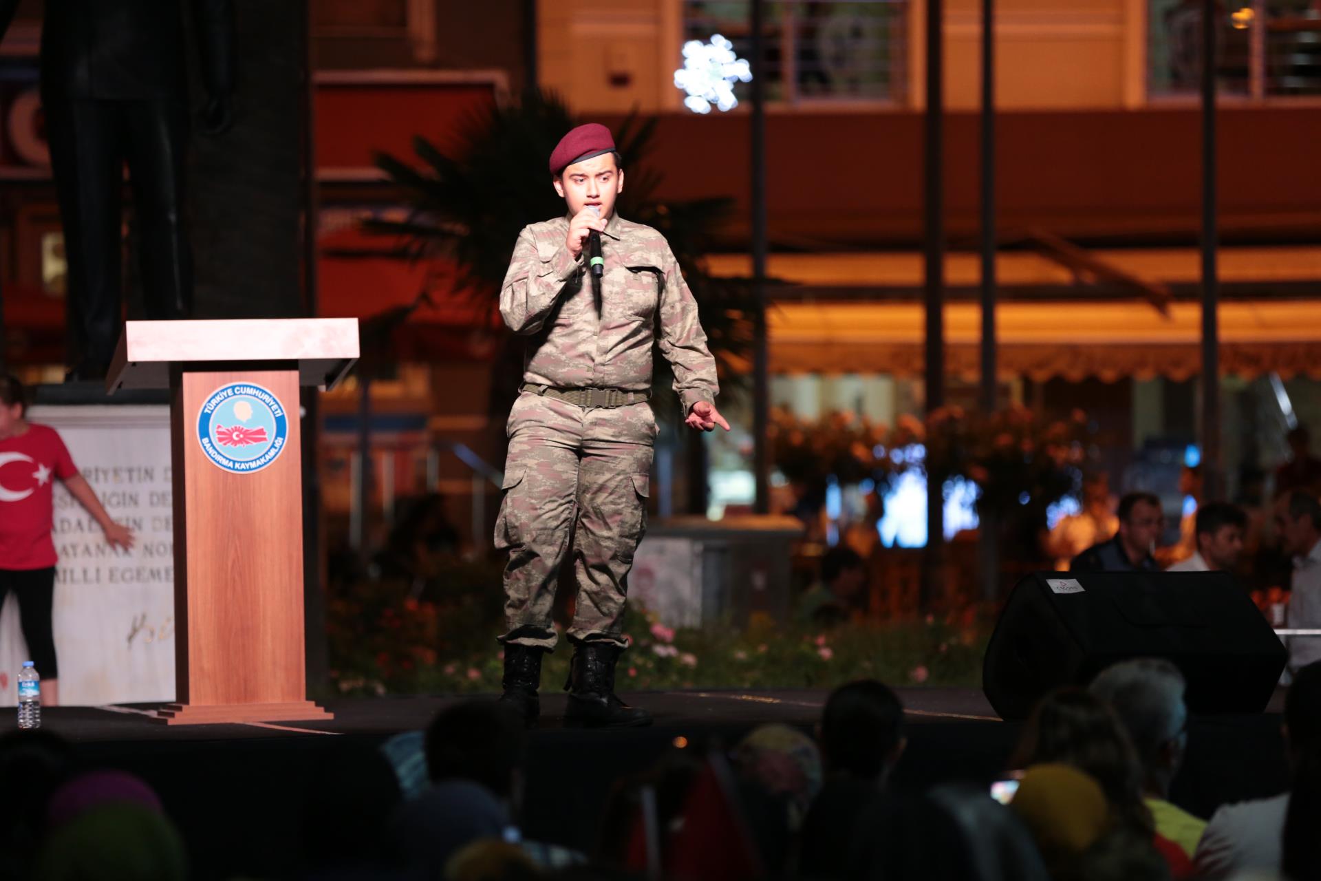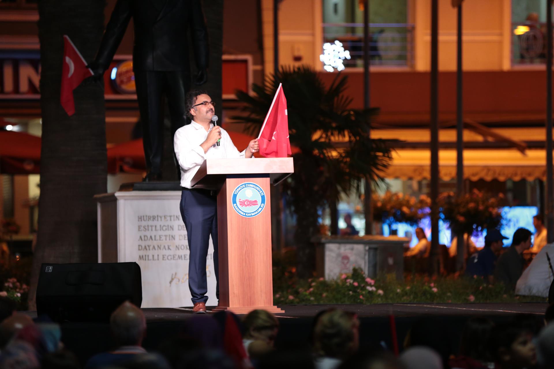 "15 Temmuz Demokrasi ve Millî Birlik Günü" programı kapsamında düzenlenen etkinliklerin sonuncusu Cumhuriyet Meydanı’nda gerçekleşti. Üniversitemiz, Bandırma Kaymakamlığı, Balıkesir Büyükşehir Belediyesi ve Bandırma Belediyesi işbirliği ile gerçekleşen etkinliğe Bandırma Kaymakamı Günhan Yazar, Bandırma Garnizon Komutanı Albay Selahattin Akalp, Bandırma Belediye Başkan Vekili Sami Türkmen, Cumhuriyet Başsavcısı Önder Yeniçeri, Bandırma ilçe protolü, sivil toplum kuruluşu temsilcileri ve vatandaşlar yoğun katılım gösterdi.