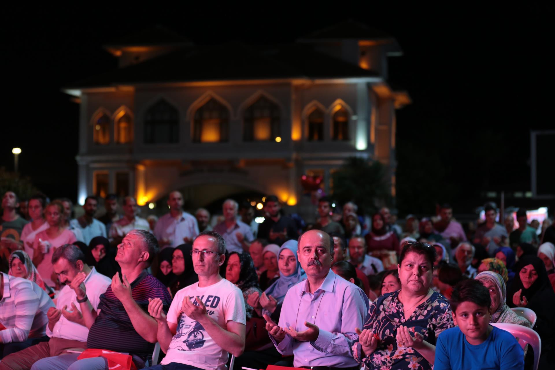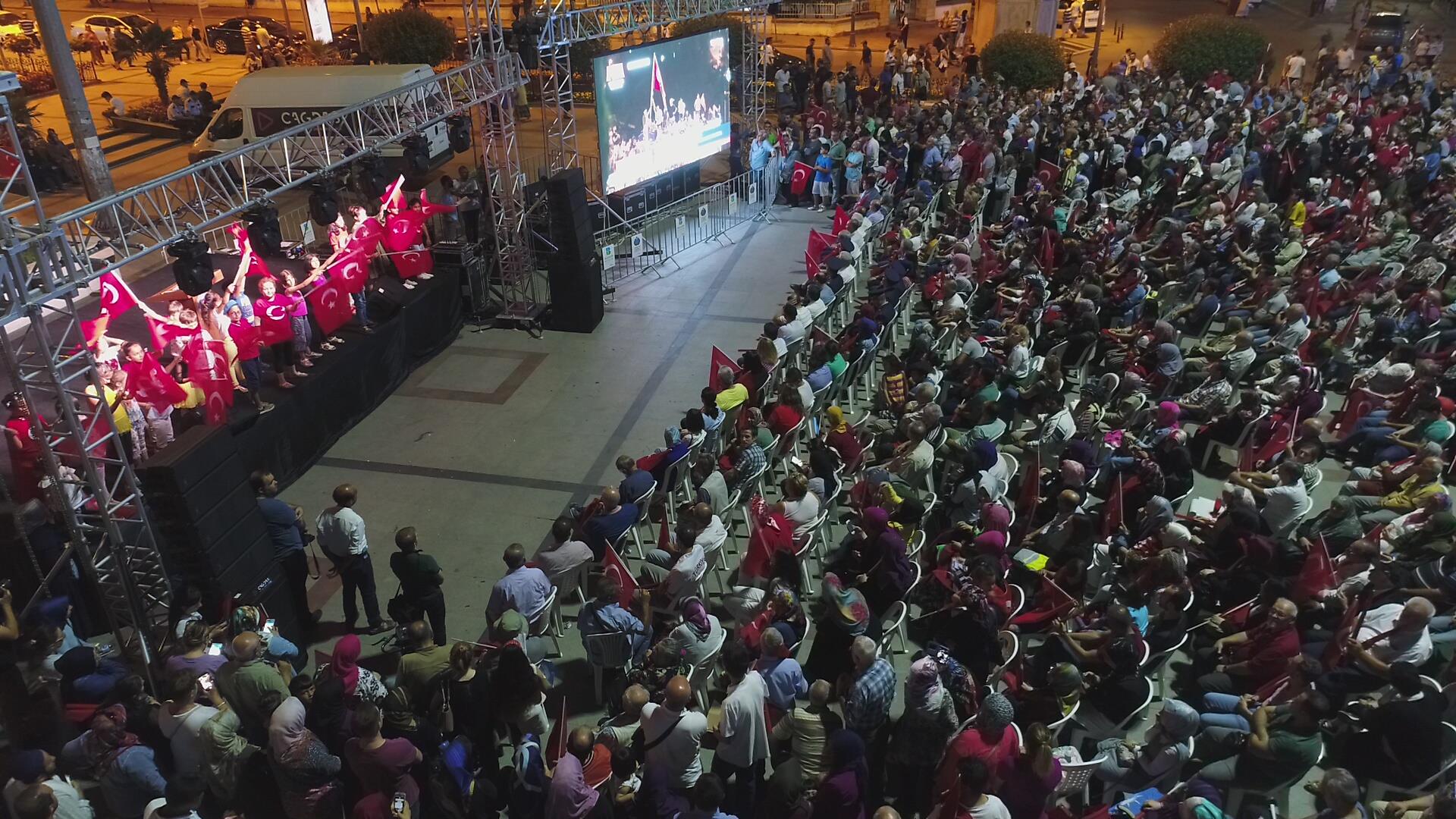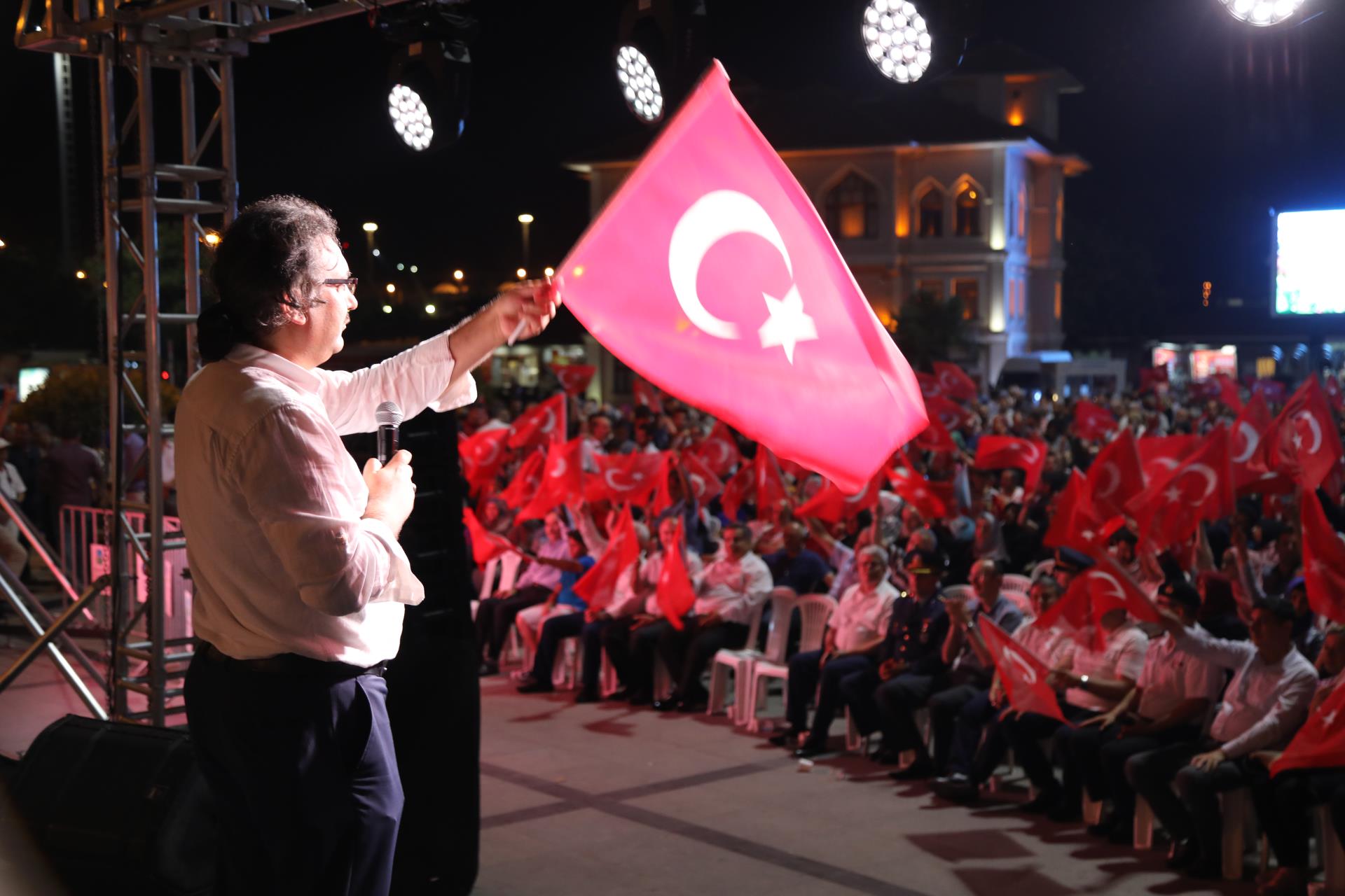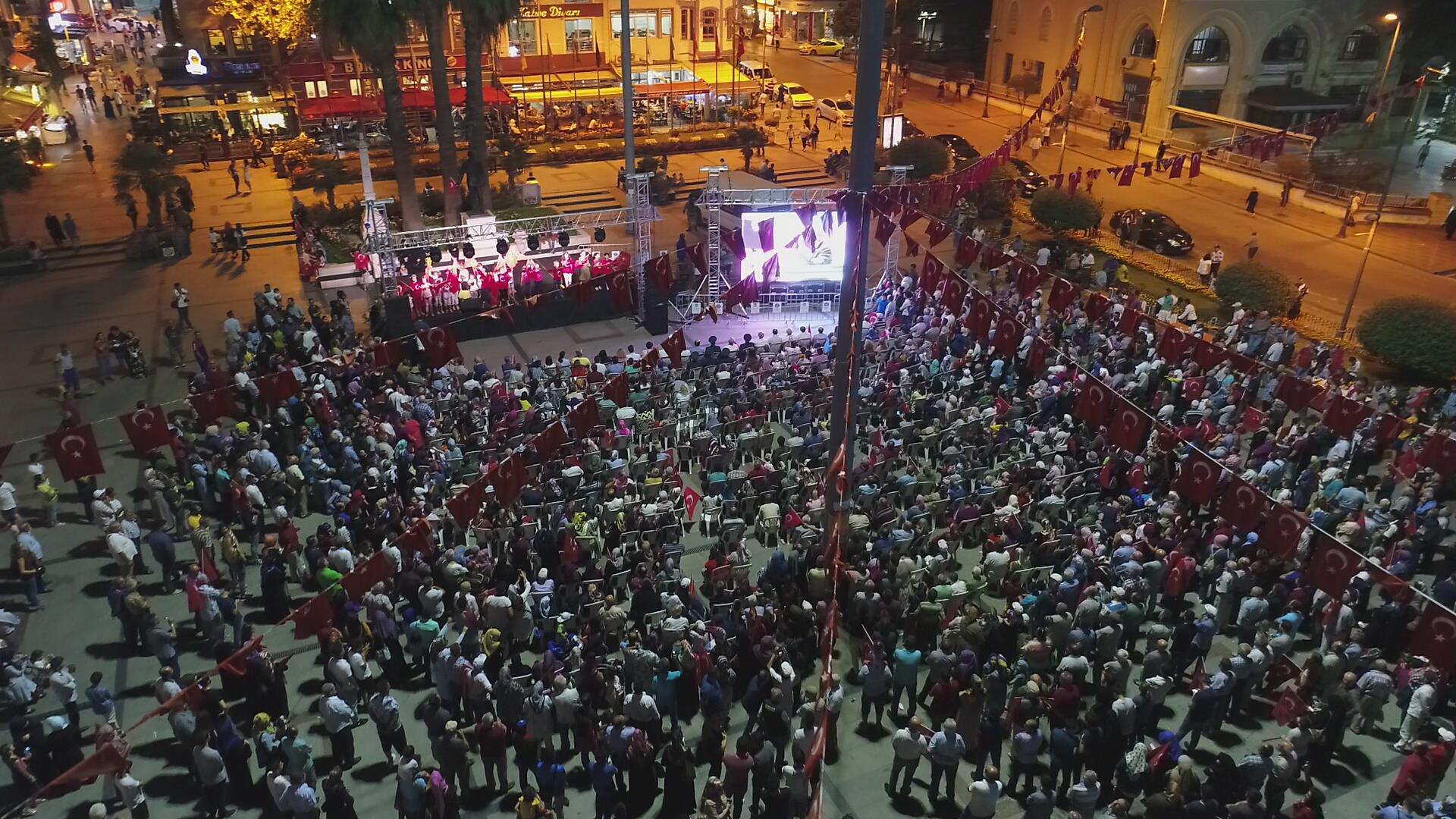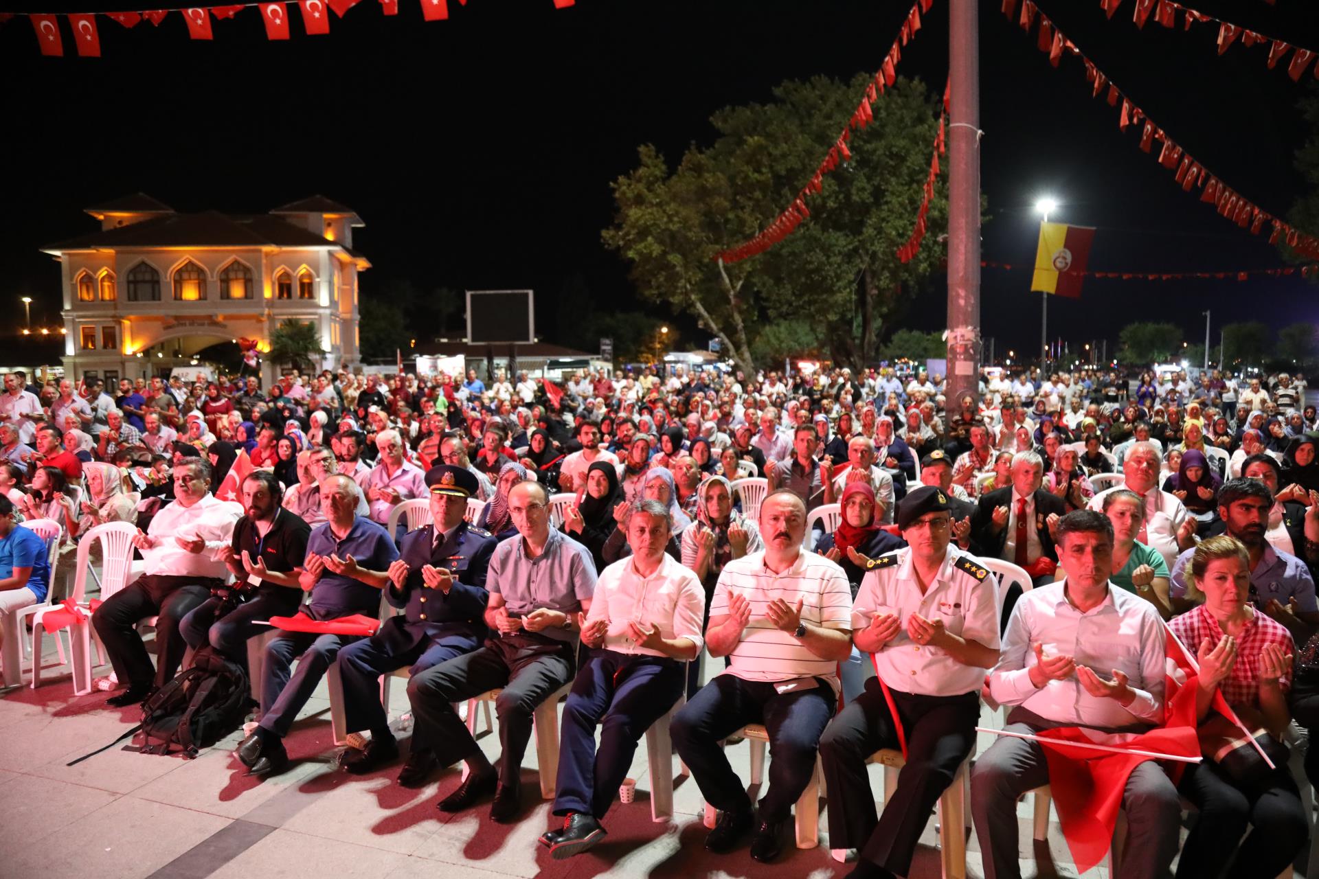 Saygı duruşu ve İstiklal Marşı’mızın okunması ile başlayan program sinevizyon gösterimleriyle devam etti. Belgesel ve sinevizyon gösterimleri esnasında izleyicilerin gözyaşlarına hakim olamadığı duygusal anlar yaşandı. Gecenin ilerleyen saatlerinde Cumhurbaşkanımız Recep Tayyip Erdoğan’ın yaptığı konuşma barkovizyon aracılığıyla katılımcılara izletildi. 15 Temmuz için yazılan marşların çalınması, şiirlerin okunması ve belgesel gösterimleriyle devam etti. Program 00.13’ te okunan selaların dinlenmesinin ardından Bandırma İlçe Müftüsü Süleyman Küçük’ün şehitlerimiz için yaptığı dua ile son buldu.