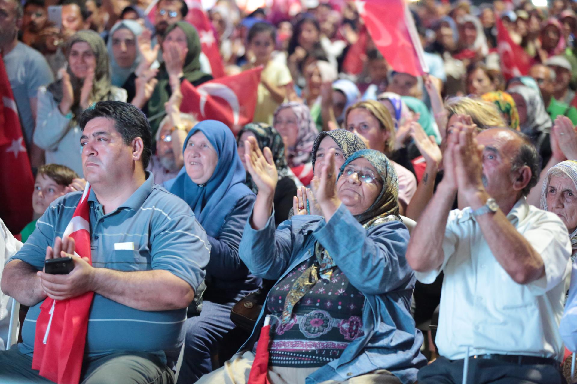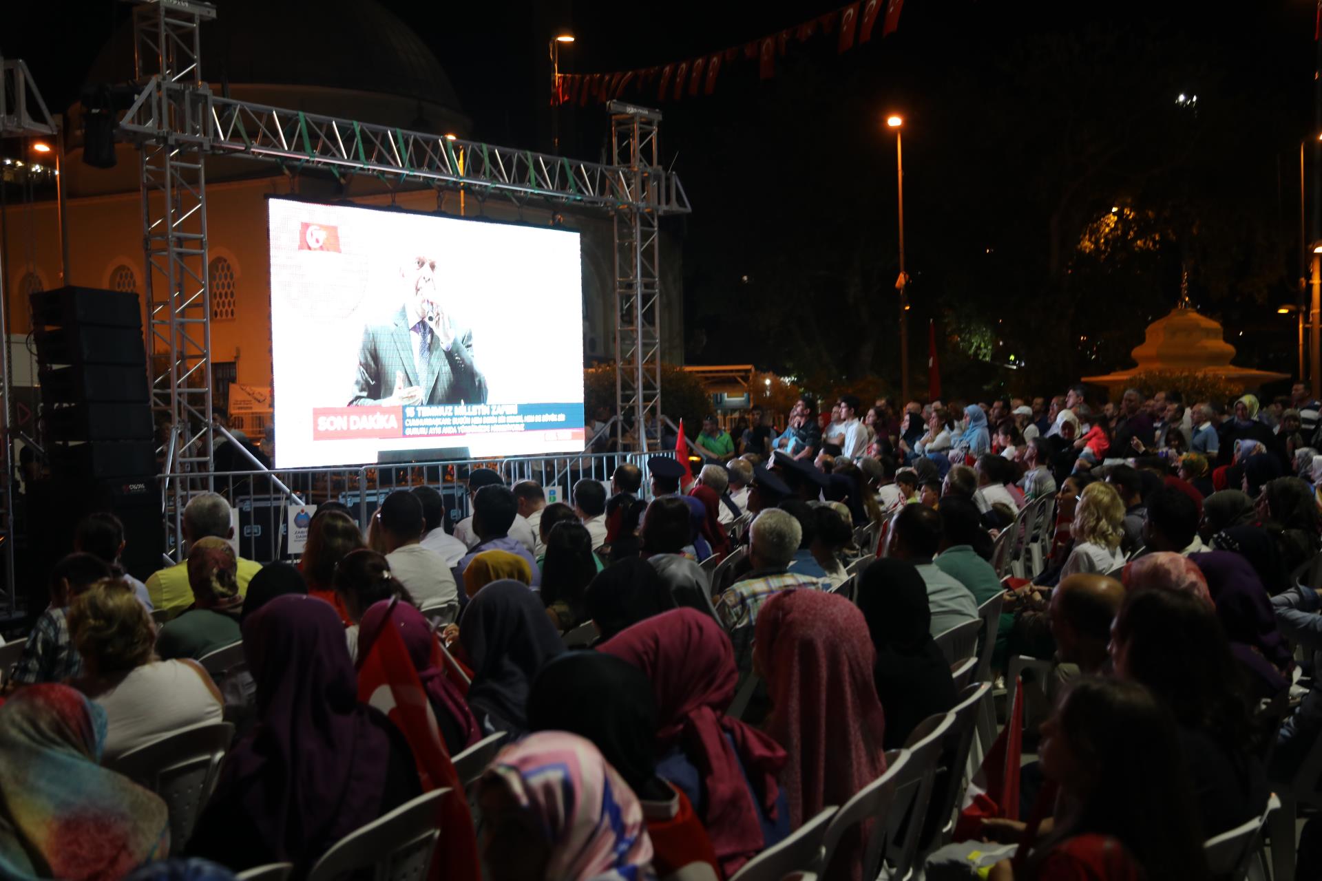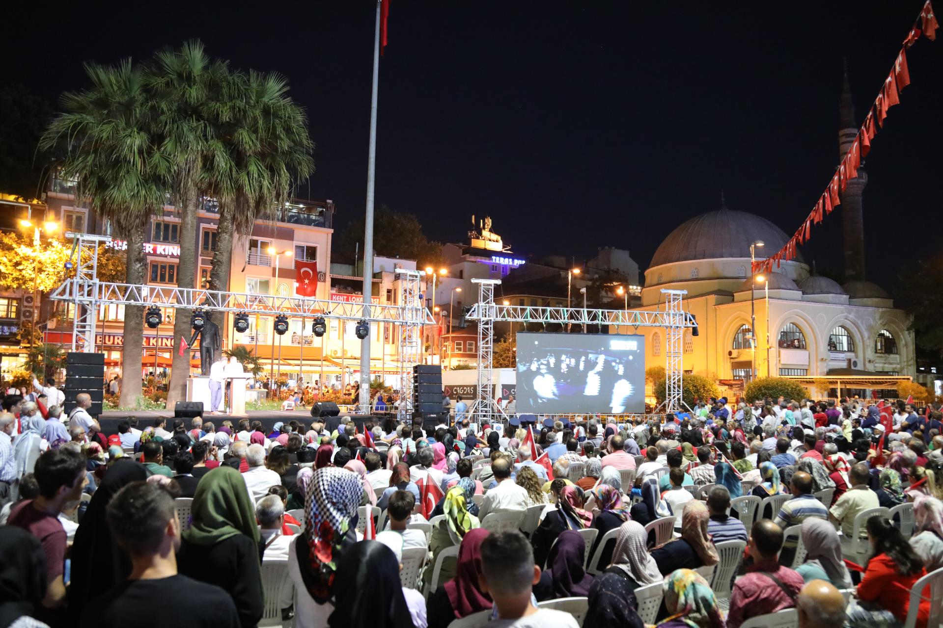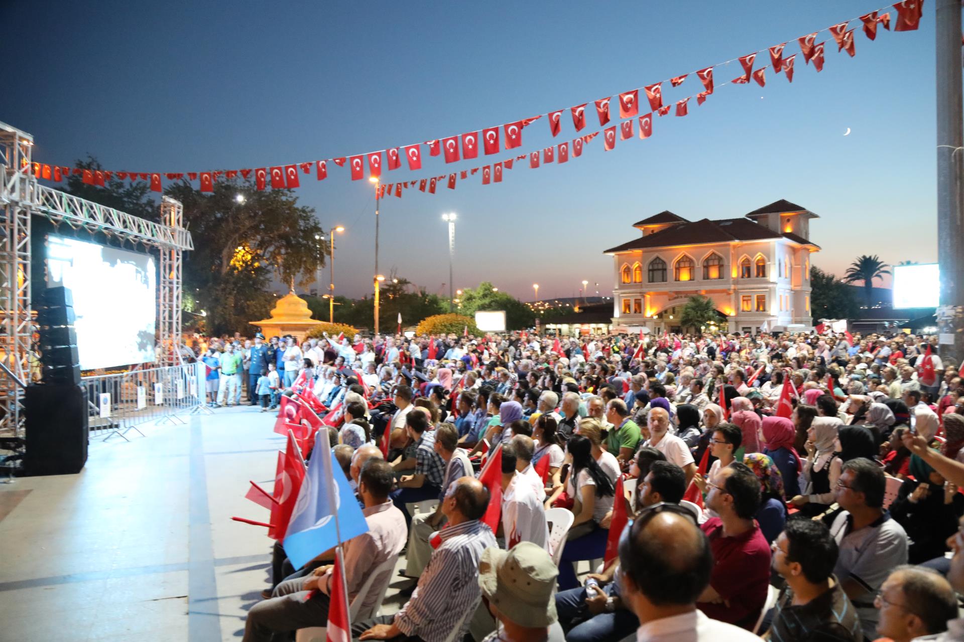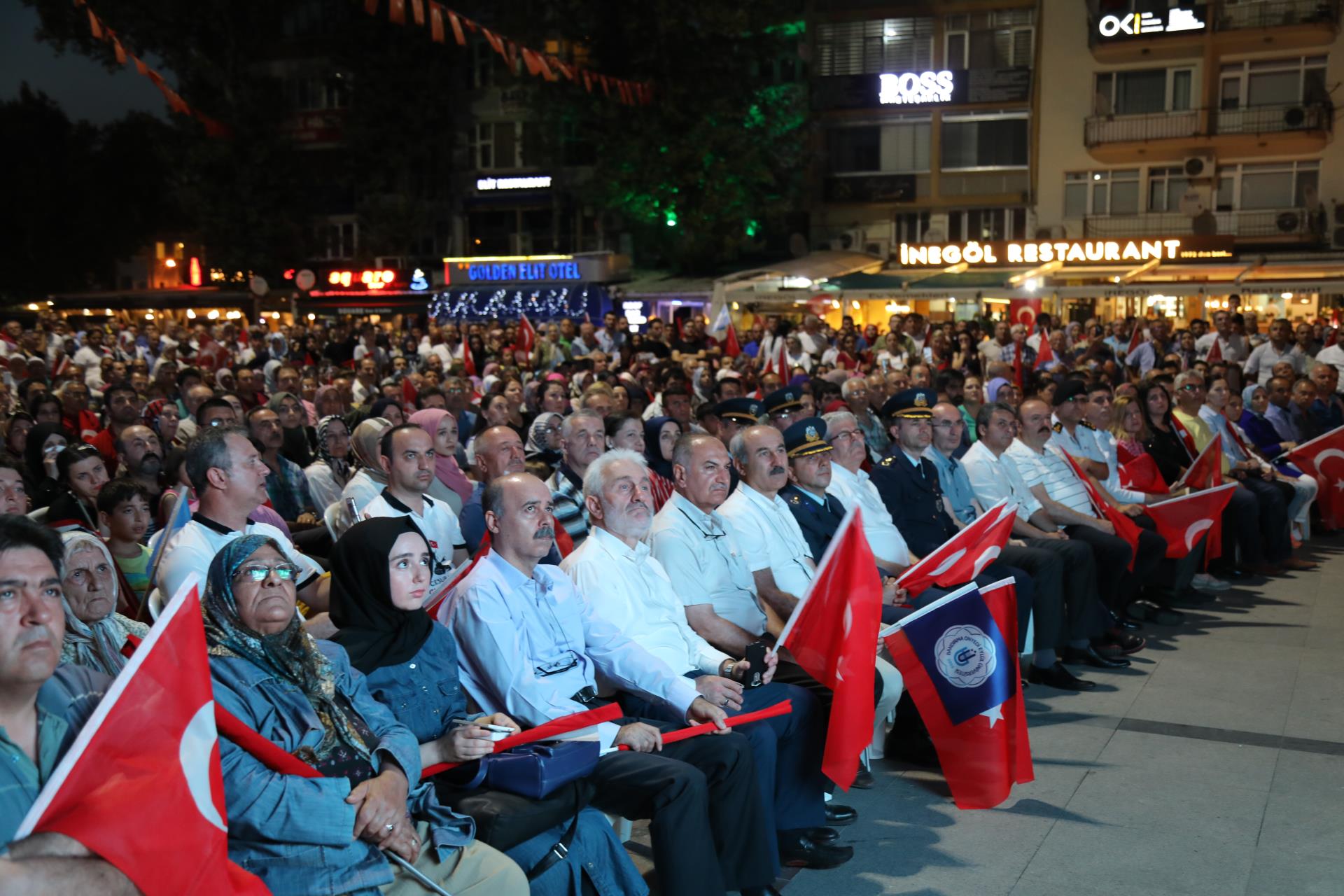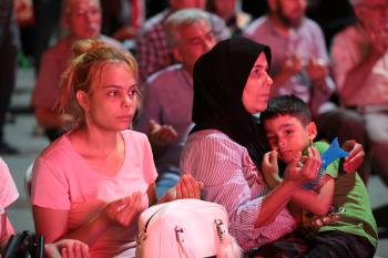 Saygı duruşu ve İstiklal Marşı’mızın okunması ile başlayan program sinevizyon gösterimleriyle devam etti. Belgesel ve sinevizyon gösterimleri esnasında izleyicilerin gözyaşlarına hakim olamadığı duygusal anlar yaşandı. Gecenin ilerleyen saatlerinde Cumhurbaşkanımız Recep Tayyip Erdoğan’ın yaptığı konuşma barkovizyon aracılığıyla katılımcılara izletildi. 15 Temmuz için yazılan marşların çalınması, şiirlerin okunması ve belgesel gösterimleriyle devam etti. Program 00.13’ te okunan selaların dinlenmesinin ardından Bandırma İlçe Müftüsü Süleyman Küçük’ün şehitlerimiz için yaptığı dua ile son buldu.