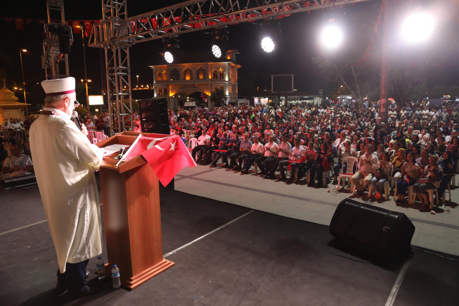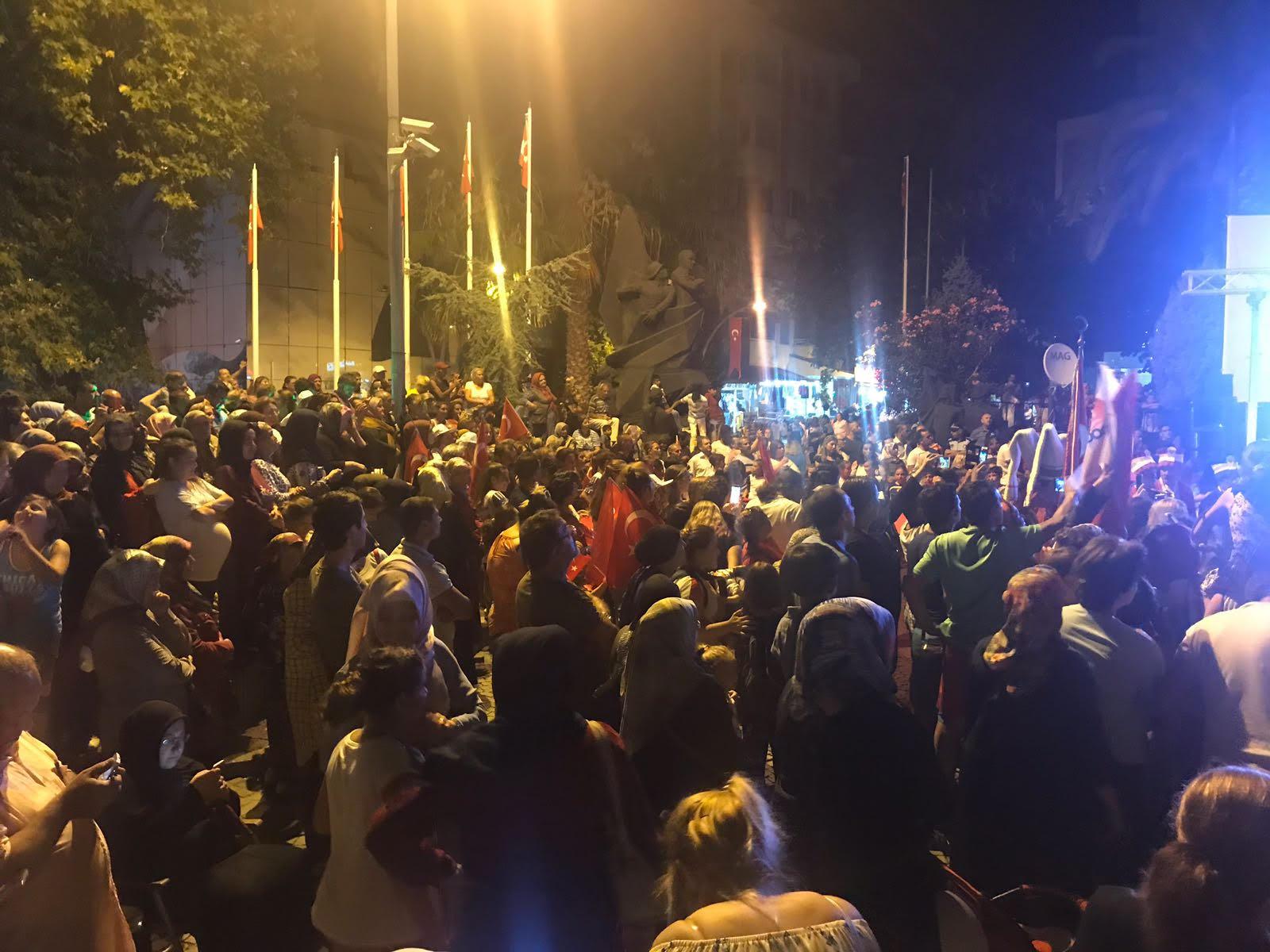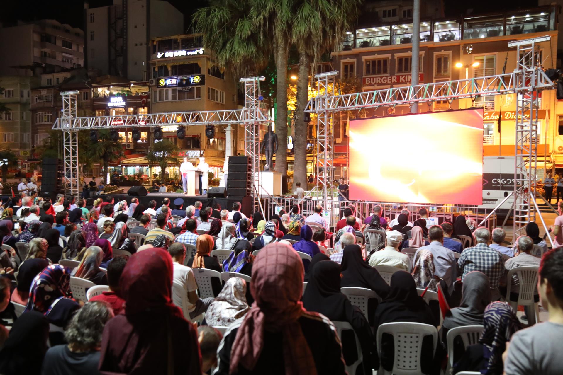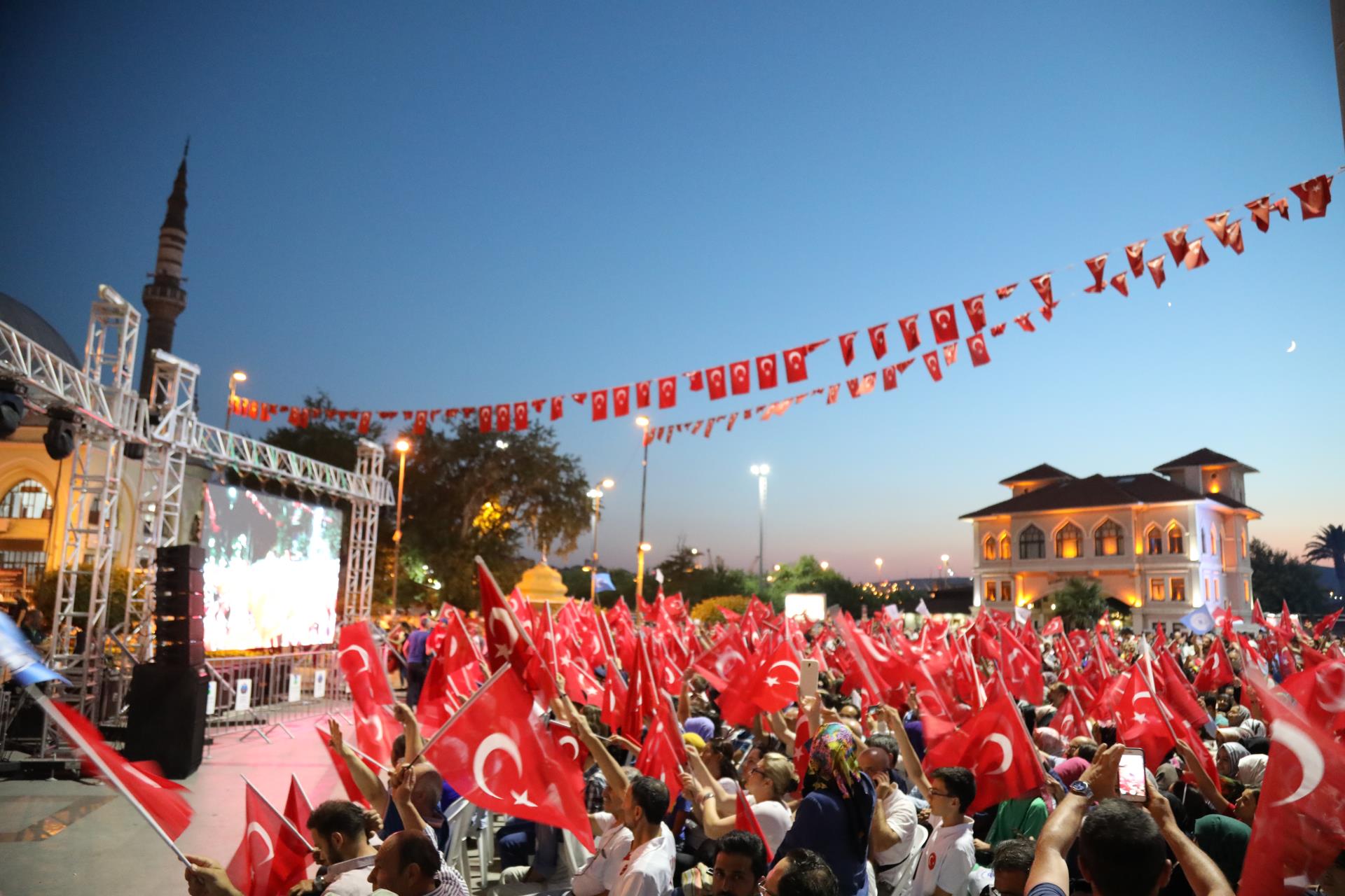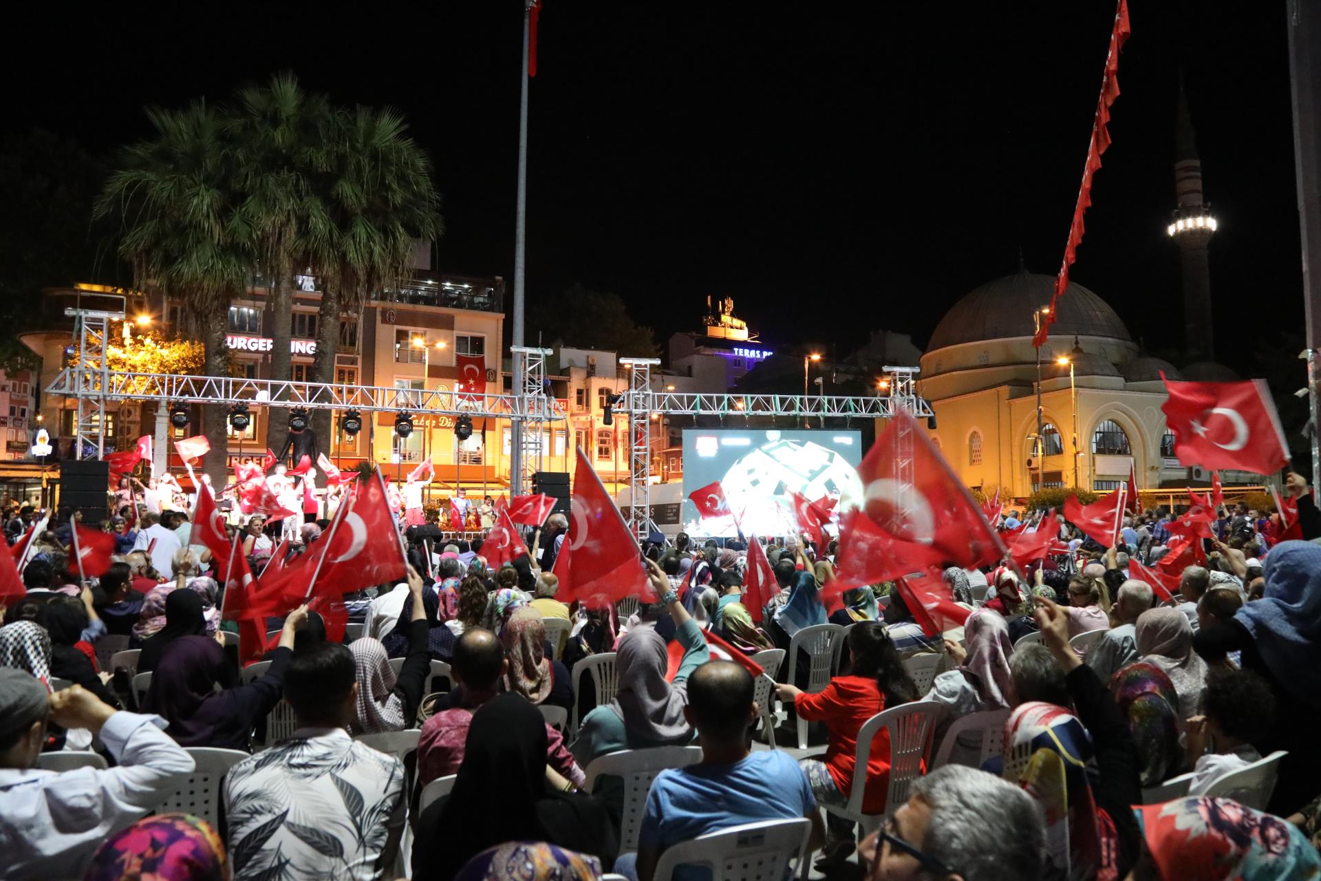 Saygı duruşu ve İstiklal Marşı’mızın okunması ile başlayan program sinevizyon gösterimleriyle devam etti. Belgesel ve sinevizyon gösterimleri esnasında izleyicilerin gözyaşlarına hakim olamadığı duygusal anlar yaşandı. Gecenin ilerleyen saatlerinde Cumhurbaşkanımız Recep Tayyip Erdoğan’ın yaptığı konuşma barkovizyon aracılığıyla katılımcılara izletildi. 15 Temmuz için yazılan marşların çalınması, şiirlerin okunması ve belgesel gösterimleriyle devam etti. Program 00.13’ te okunan selaların dinlenmesinin ardından Bandırma İlçe Müftüsü Süleyman Küçük’ün şehitlerimiz için yaptığı dua ile son buldu.