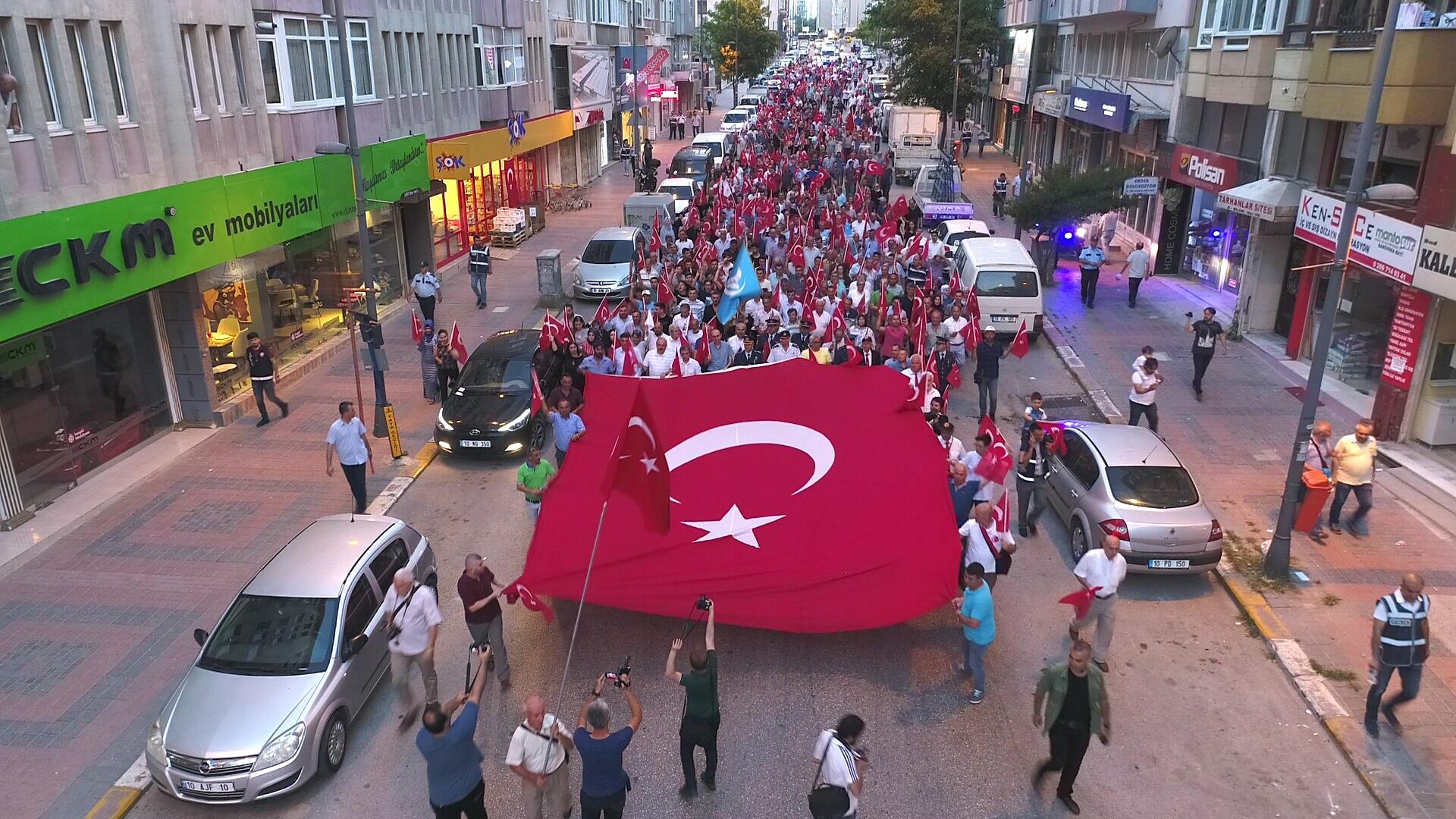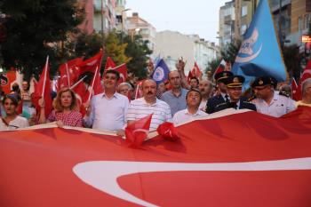 Bandırma Kaymakamlığı himayelerinde düzenlenen "15 Temmuz Demokrasi ve Millî Birlik Günü" programı kapsamında gerçekleştirilen “Demokrasi Yürüyüşü” etkinliğinde rektörümüz Prof. Dr. Süleyman Özdemir ile birlikte üniversitemiz akademik ve idari personeli de yer aldı. Ordu Caddesi- Migros önünden başlayan, Bandırma Kaymakamı Günhan Yazar, Bandırma Garnizon Komutanı Albay Selahattin Akalp, Bandırma Belediye Başkan Vekili Sami Türkmen, Cumhuriyet Başsavcısı Önder Yeniçeri, Bandırma ilçe protolü, sivil toplum kuruluşu temsilcileri ve vatandaşların katılımıyla gerçekleşen “Demokrasi Yürüyüşü”, Cumhuriyet Meydanı’nda son buldu.