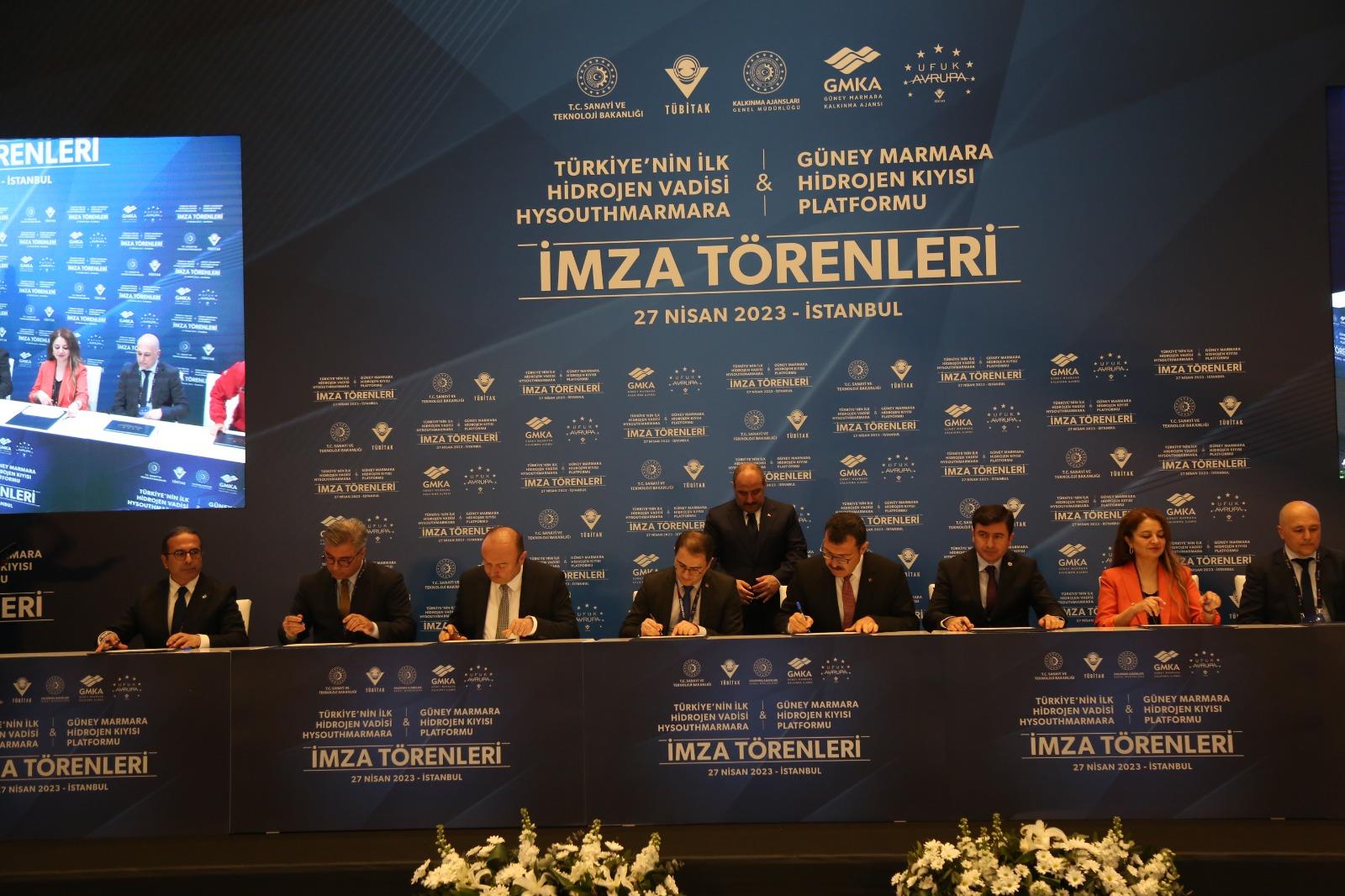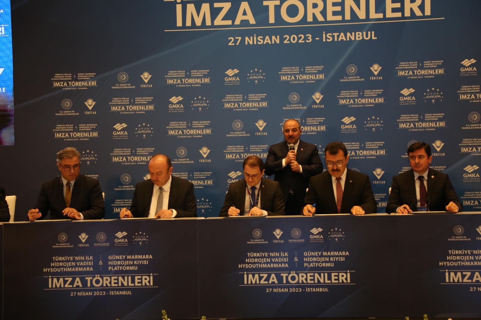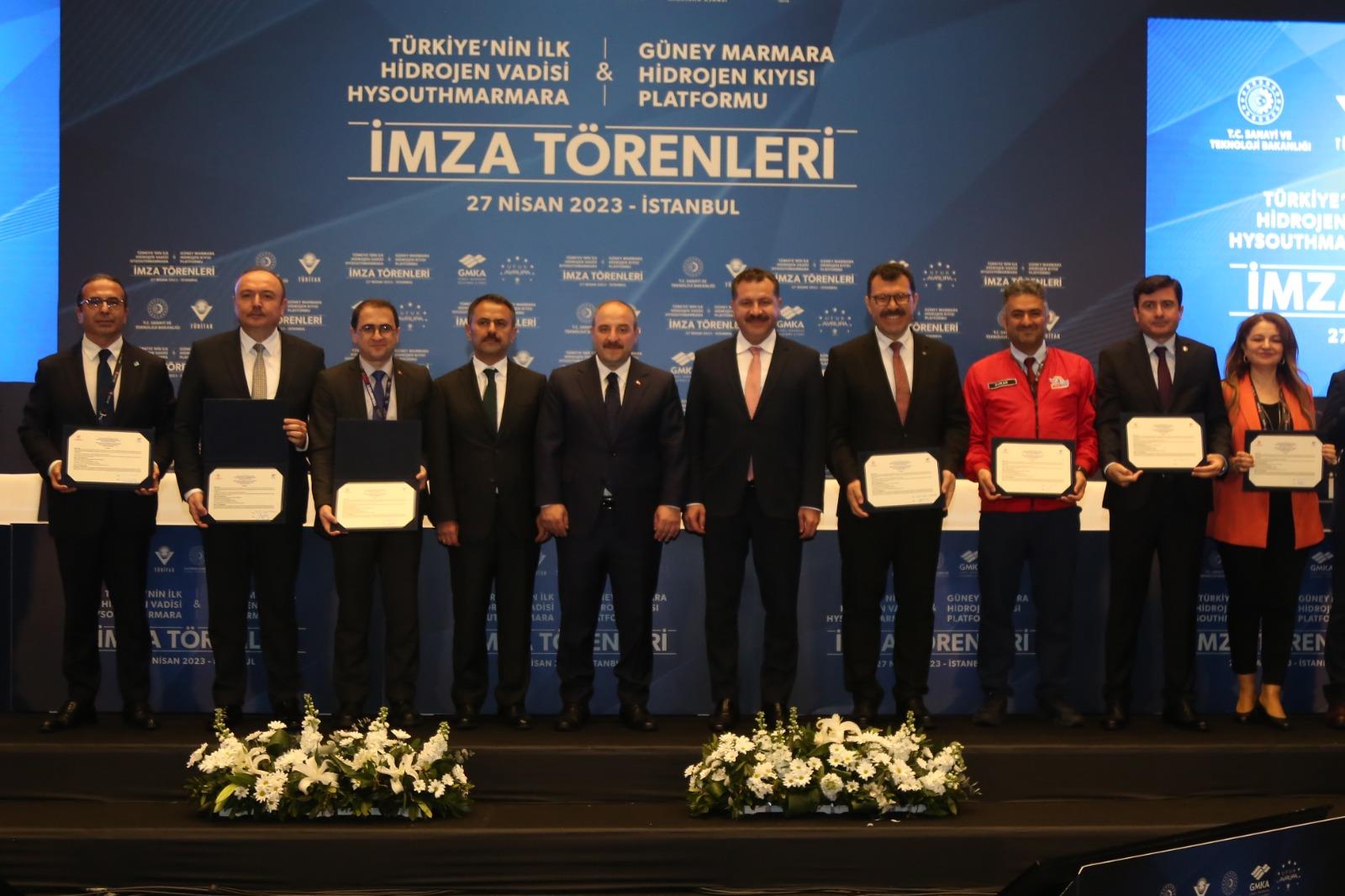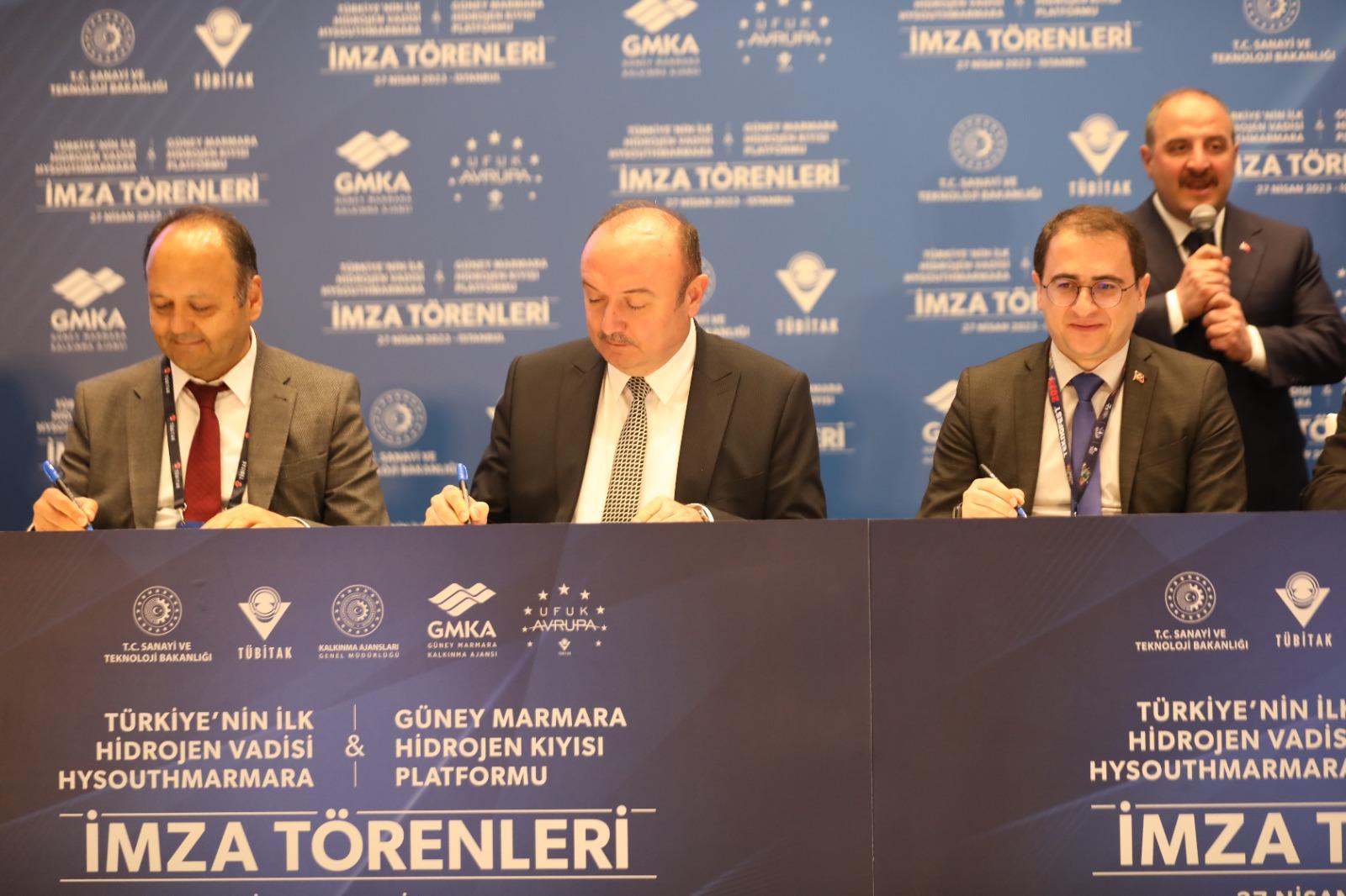 Güney Marmara Kalkınma Ajansı’nın (GMKA) koordinatörlüğünde hazırlanan, Üniversitemizin de paydaş olduğu HYSouthMarmara ve Güney Marmara Hidrojen Kıyısı Platformu imza törenleri gerçekleştirildi. Sanayi ve Teknoloji Bakanı Mustafa Varank gerçekleştirdiği konuşmada: “Bu projeler Türkiye’ye hidrojende lig atlatacak. Yeşil hidrojen atılımıyla ülkemiz hidrojen ihracatçısı bir ülke haline gelecek.” dedi.