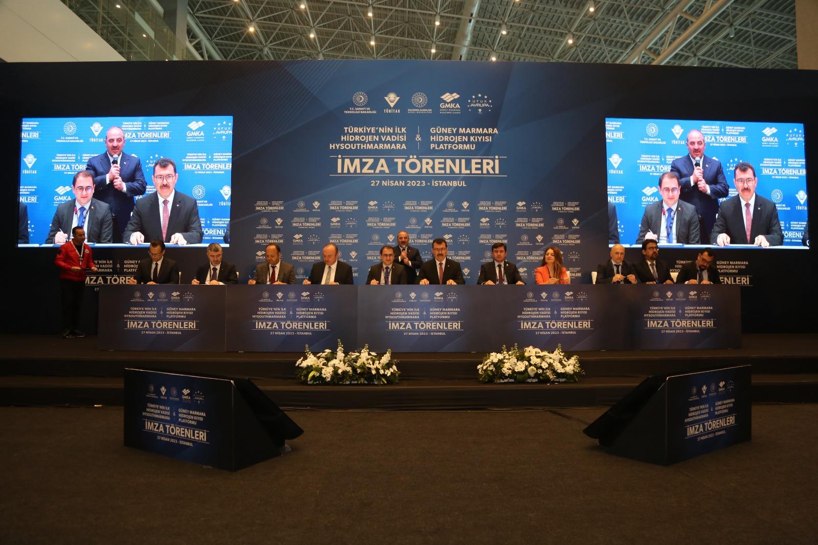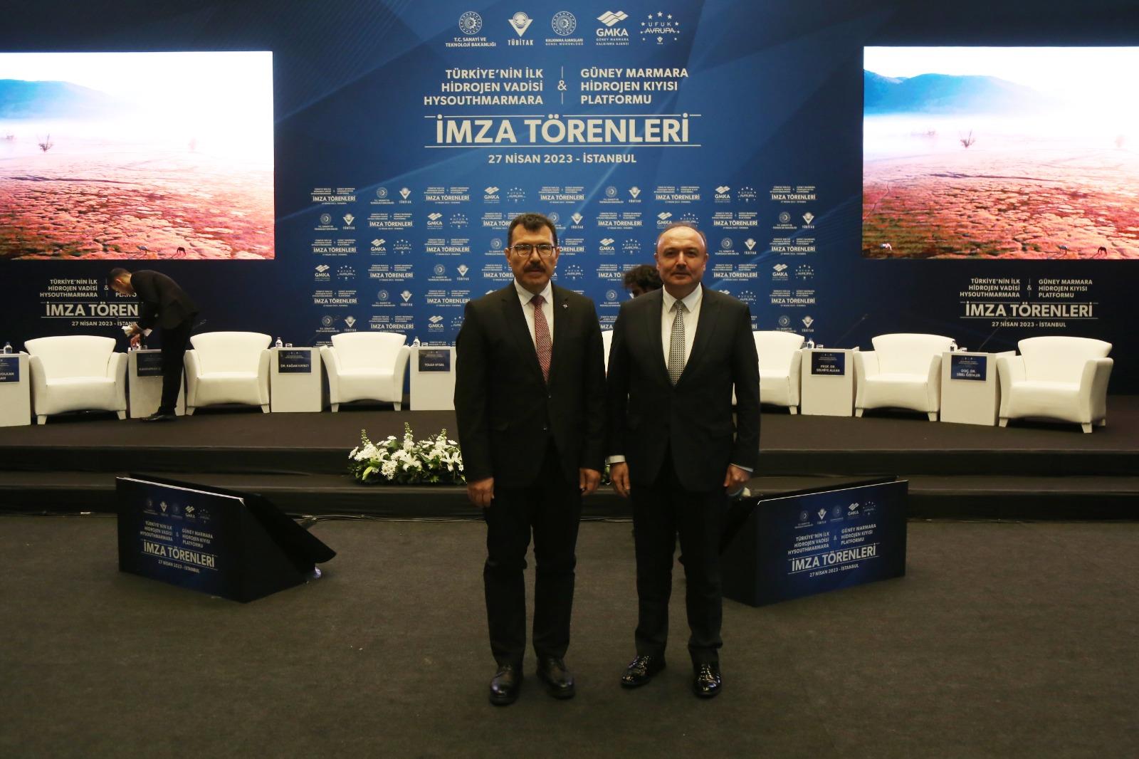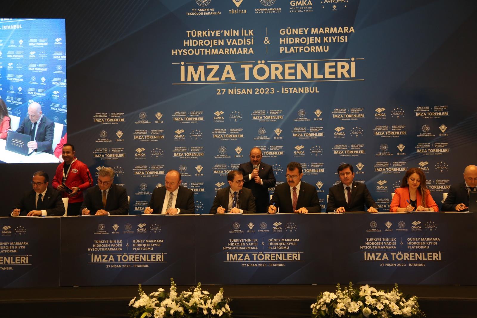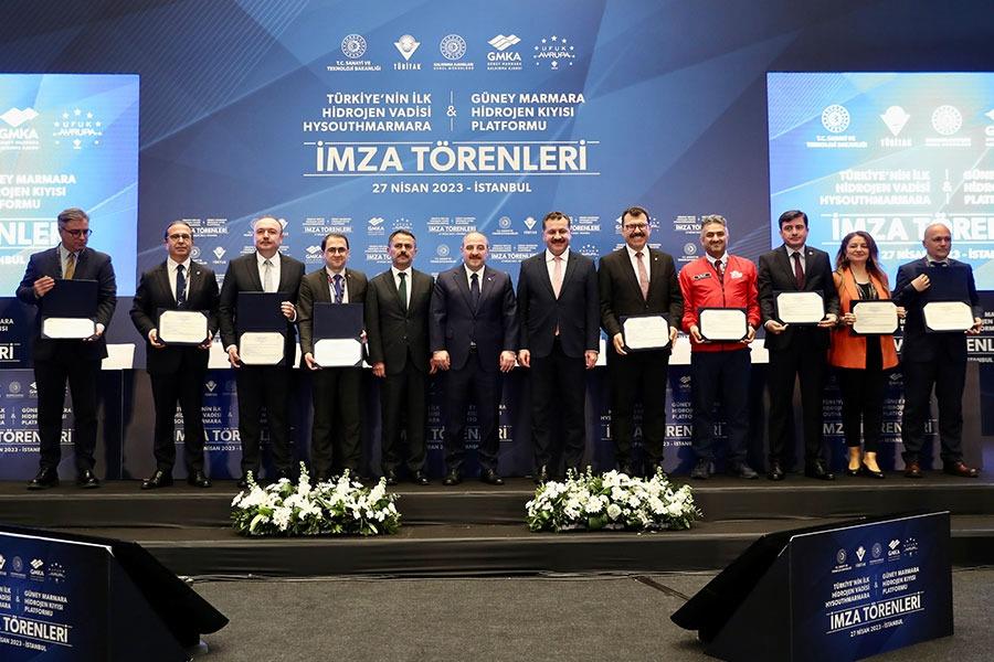 Güney Marmara Kalkınma Ajansı’nın (GMKA) koordinatörlüğünde hazırlanan, Üniversitemizin de paydaş olduğu HYSouthMarmara ve Güney Marmara Hidrojen Kıyısı Platformu imza törenleri gerçekleştirildi. Sanayi ve Teknoloji Bakanı Mustafa Varank gerçekleştirdiği konuşmada: “Bu projeler Türkiye’ye hidrojende lig atlatacak. Yeşil hidrojen atılımıyla ülkemiz hidrojen ihracatçısı bir ülke haline gelecek.” dedi.