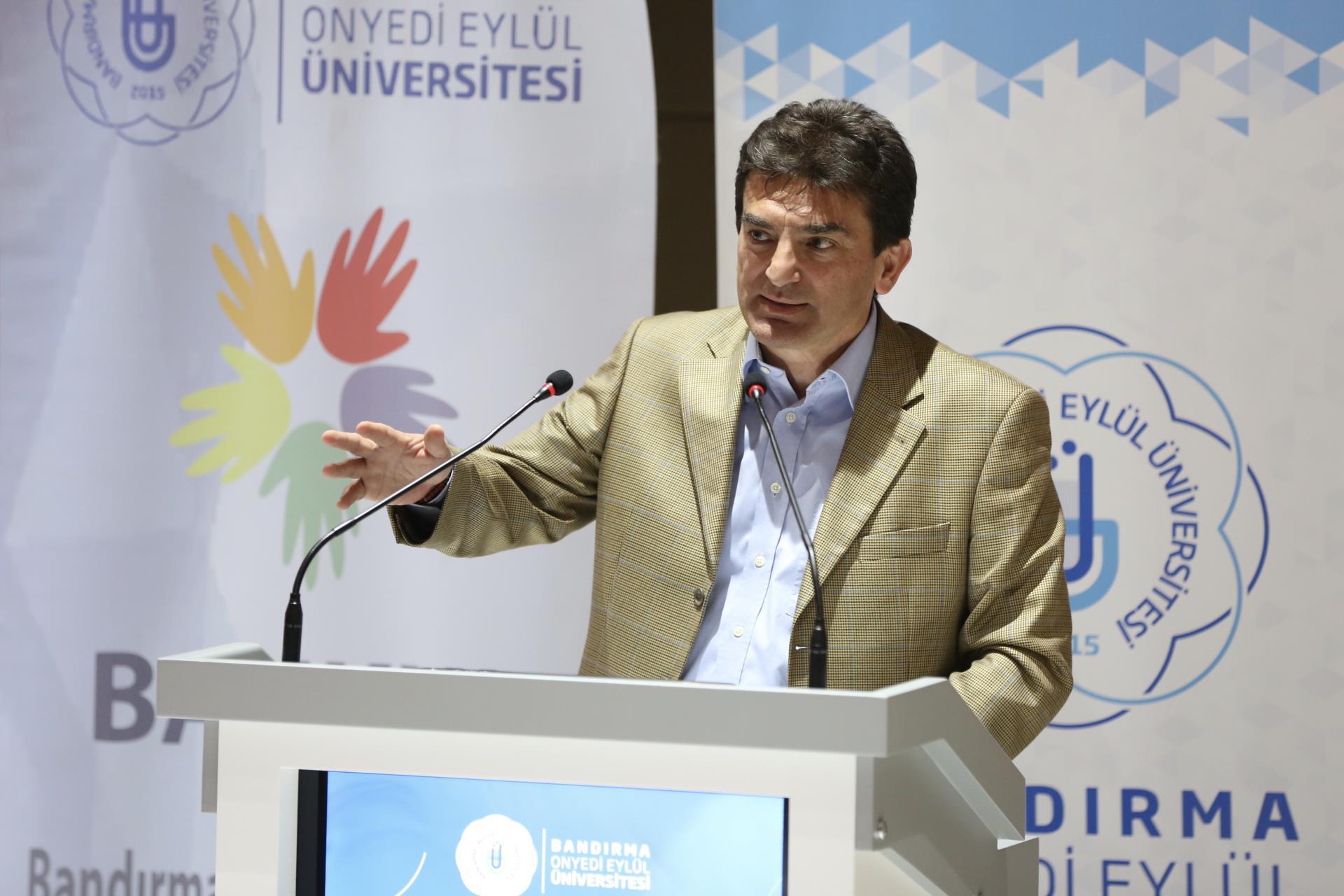 “Endüstri 4.0 ve Kuluçka Merkezleri” hakkında konuşma yapan İstanbul Ticaret Odası Eski Başkanı ve İstanbul Ticaret Üniversitesi Öğretim Üyesi Doç. Dr. Murat Yalçıntaş, “Bazı uluslar gelişmişken bazıları fakir çünkü kaynaklarını iyi bir şekilde kullanamıyorlar. Bu kaynak sadece doğal kaynak değil aynı zamanda insan kaynağıdır da. İnsanı doğru kullanıp yetiştirirseniz Finlandiya gibi olursunuz ancak yetiştiremezseniz Afrika ülkeleri gibi olursunuz. Demek ki bir ülkeyi gelişmiş yapan insanların o ülkede ortaya koyduğu katma değerdir. Endüstri 4.0 tehlike midir şans mıdır diye tartışmalar sürüyor. Yeni Zelanda’da katıldığım bir toplantıda Hintli bir akademisyenin: ”Endüstri 4.0 son hızla gelen tren gibidir. Karşısında durursan ezilirsin ancak binersen çok güzel yerlere götürür” sözü bence konuyu çok güzel özetliyor. Endüstri 4.0 hayatımızı değiştirecek ve yapay zeka ile çok ileri bir noktaya gelecek.” diye konuştu.