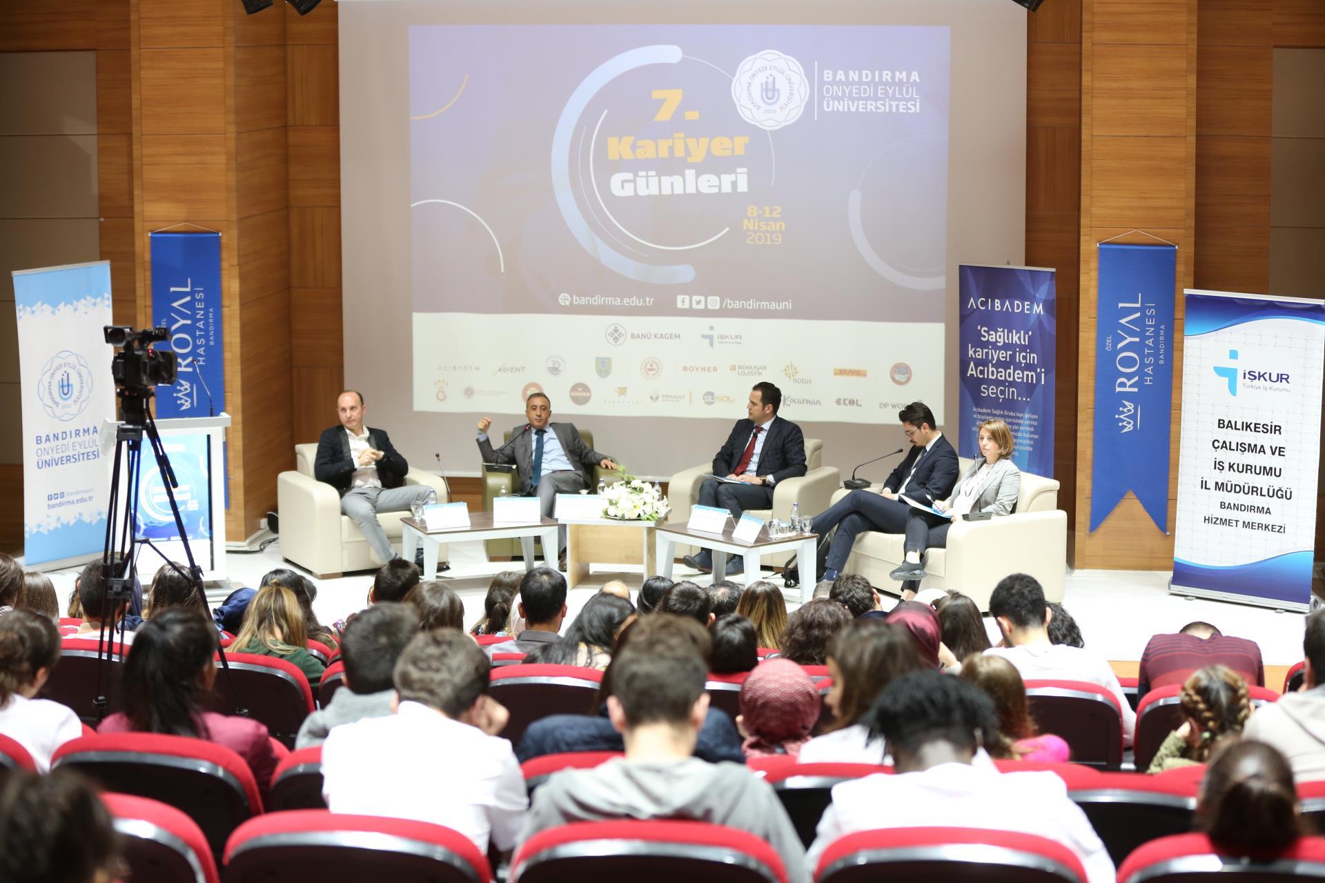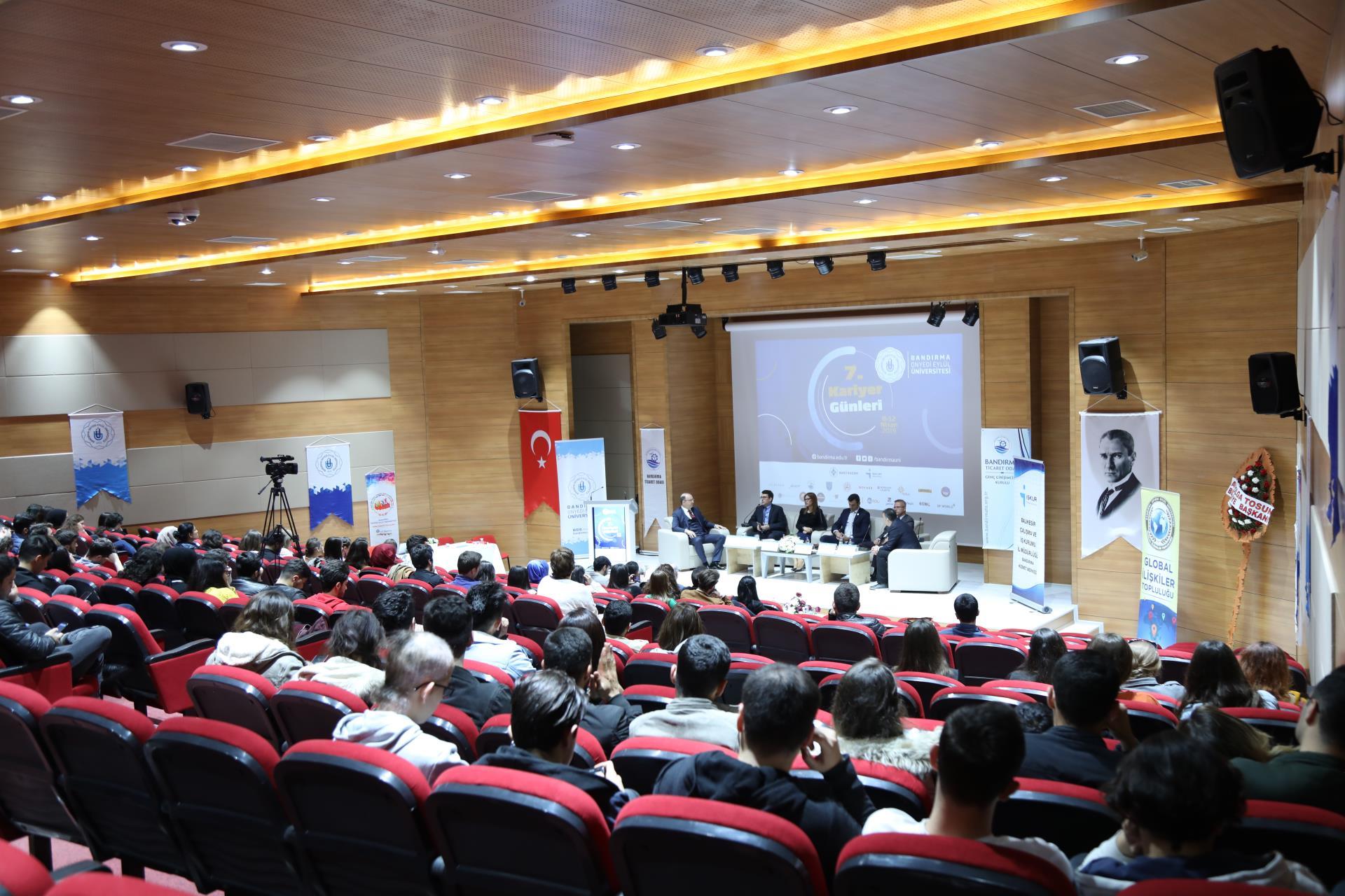 Üniversitemiz Kariyer Geliştirme Uygulama ve Araştırma Merkezi (BANÜ-KAGEM) ile Bandırma Çalışma ve İş Kurumu (İŞKUR) ve Üniversitemiz Sağlık, Kültür ve Spor Daire Başkanlığı’na bağlı öğrenci toplulukları iş birliğiyle 8-12 Nisan tarihleri arasında düzenlenen, yerel ve ulusal düzeyde 34 seçkin konuşmacının katıldığı “7. Kariyer Günleri”, öğrencilerimizin yoğun ilgi ve katılımıyla, büyük bir başarıyla gerçekleşti.