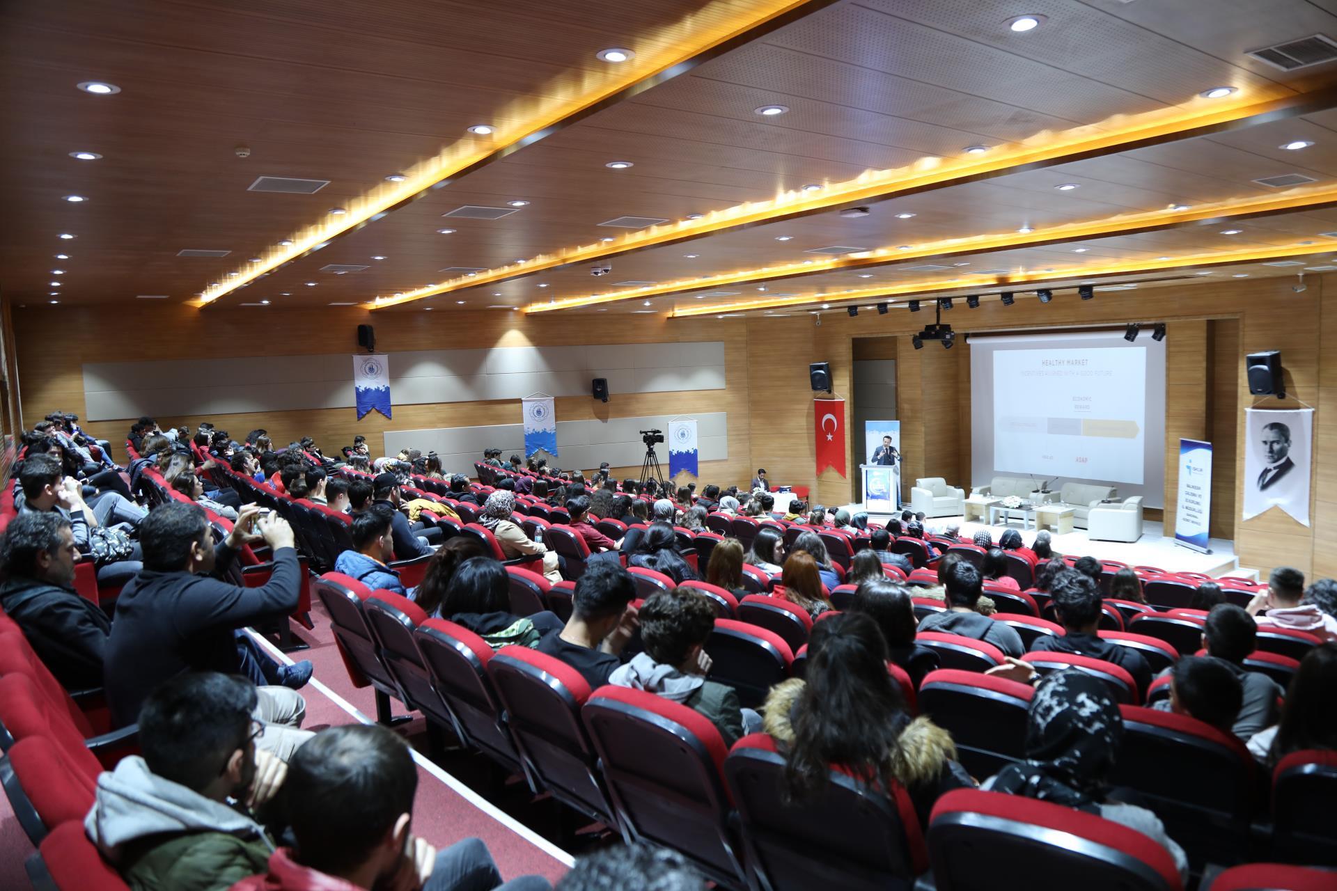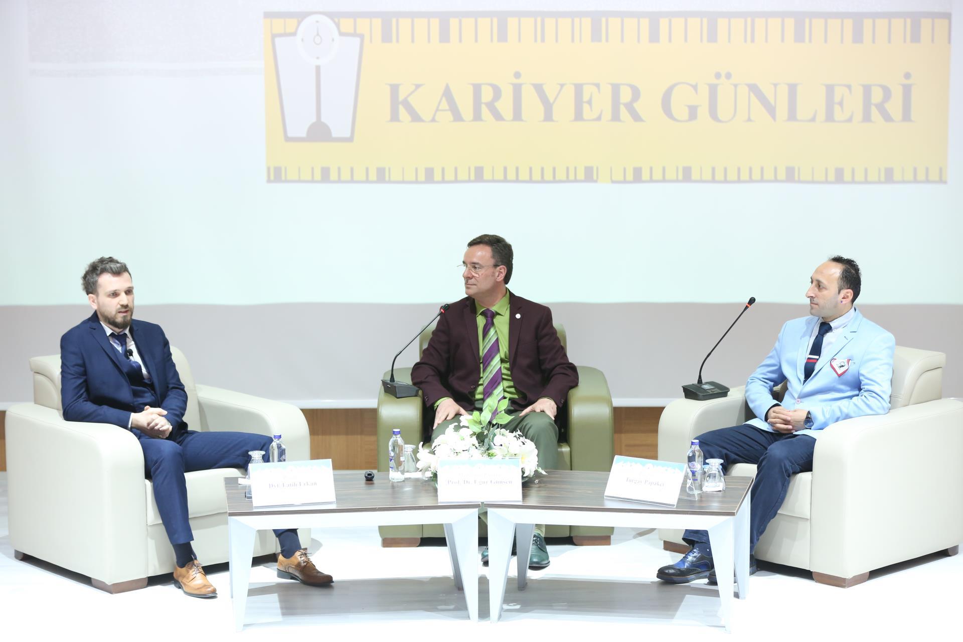 “7. Kariyer Günleri” etkinliğinin üçüncü gününün öğleden sonraki oturumuna Paket Taxi CEO’su Raşit Emir Süer, Boyner Holding Eğitim Yöneticisi Doğan Yıldız ve Best A. Ş. İnsan Kaynakları Müdürü İsmail Orhan Sönmez katıldı.