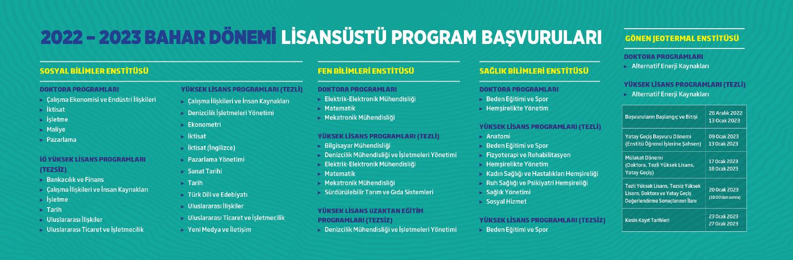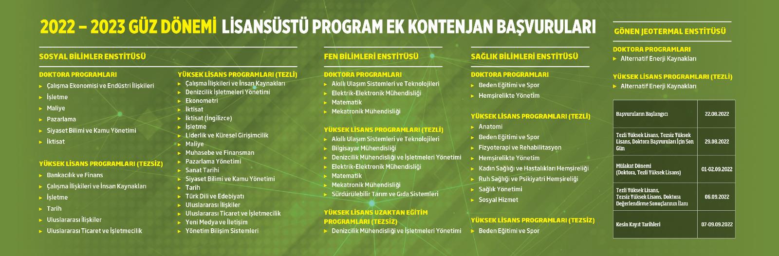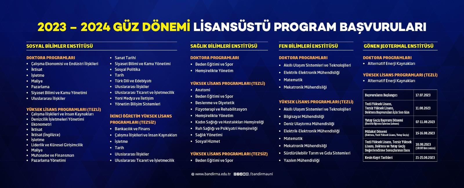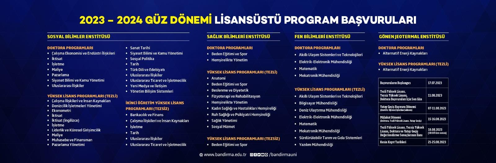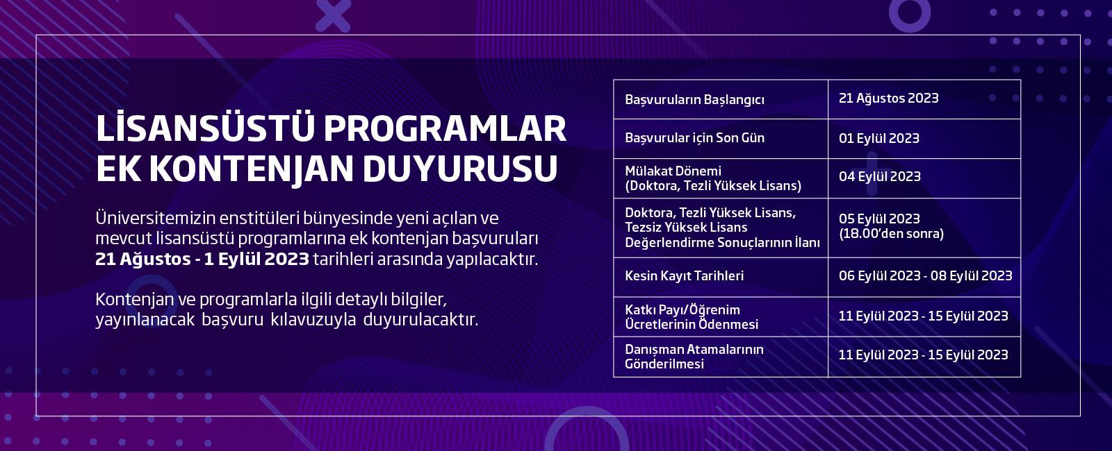 - 2023-2024 Eğitim-Öğretim Yılı Güz Dönemi Lisansüstü Programlarına Başvurular Başlıyor