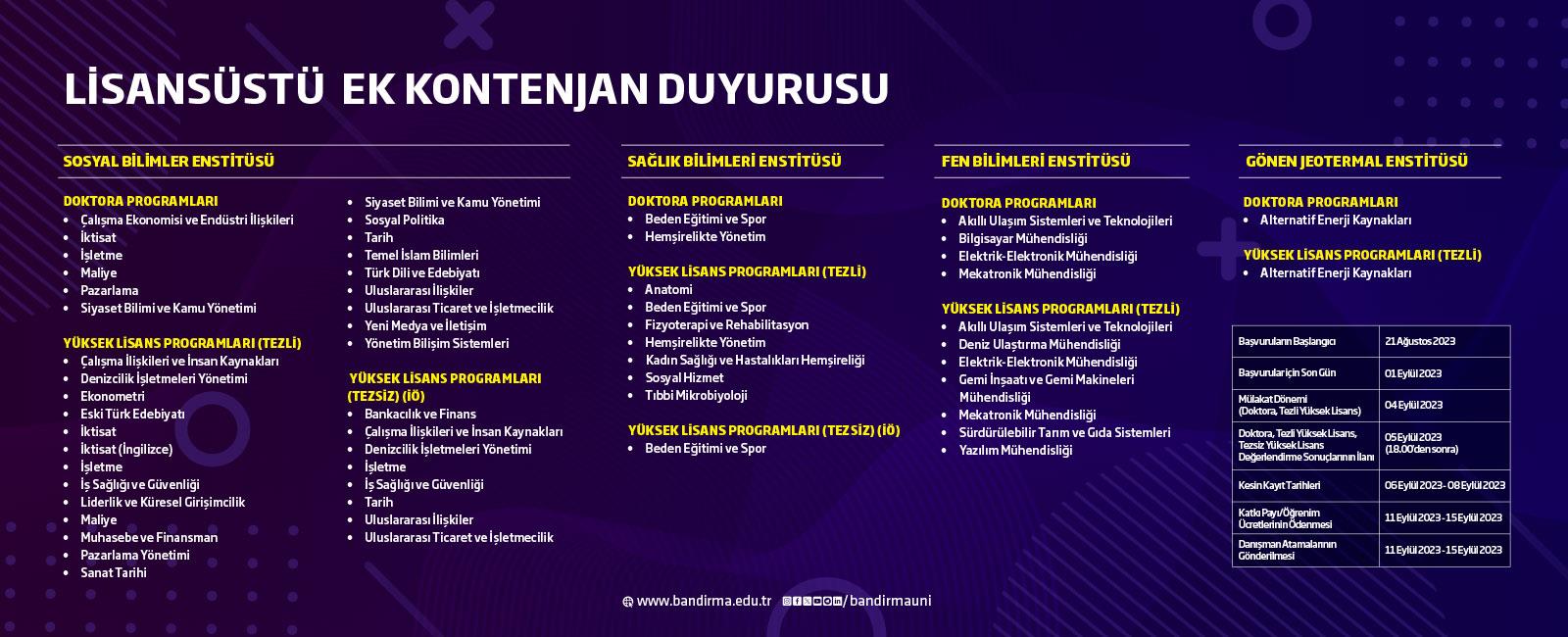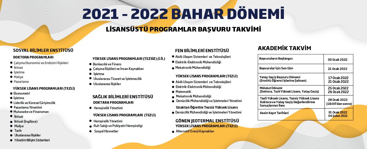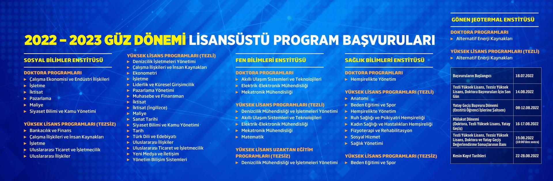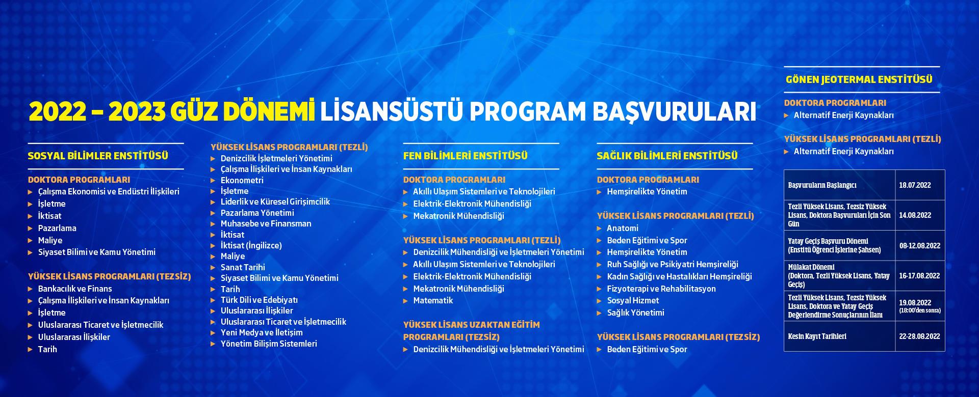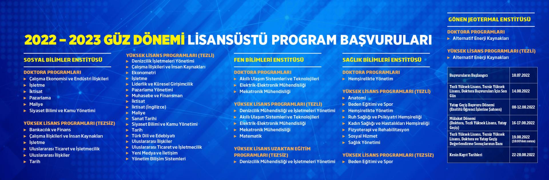 - 2023-2024 Eğitim-Öğretim Yılı Güz Dönemi Lisansüstü Programlarına Başvurular Başlıyor