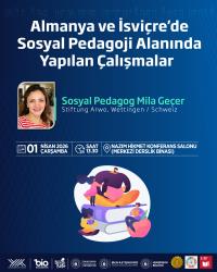 Etkinlik kapsamında, Stiftung Arwo (Wettingen/İsviçre) bünyesinde görev yapan Sosyal Pedagog Mila Geçer konuşmacı olarak yer alacaktır. Programda, Almanya ve İsviçre’de sosyal pedagoji alanında yürütülen uygulamalar, iyi örnekler ve mesleki deneyimler katılımcılarla paylaşılacaktır.