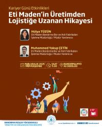 Etkinlikler 18 Aralık 2025 Perşembe günü saat 11.00’de, Eti Maden Bandırma Bor ve Asit Fabrikaları İşletme Müdür Yardımcıları Hülya Tüzün ve Muhammet Yakup Çetin tarafından gerçekleştirilecek “Eti Maden’in Üretimden Lojistiğe Uzanan Hikâyesi” başlıklı sunumla devam edecektir.