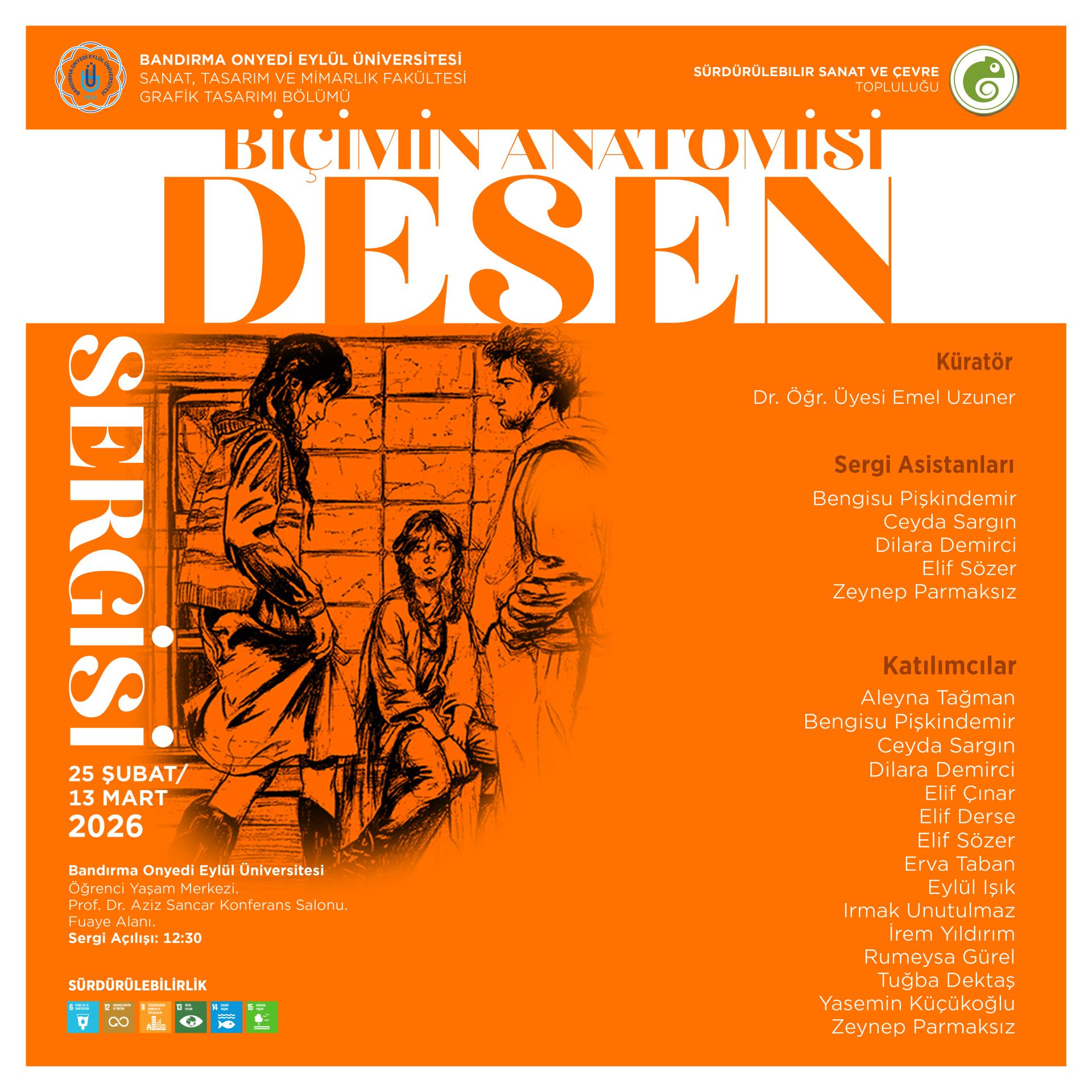 Üniversitemiz Sanat, Tasarım ve Mimarlık Fakültesi Grafik Tasarımı Bölümü ile Sürdürülebilir Sanat ve Çevre Topluluğu iş birliğinde “Biçim Anatomisi: Desen” başlıklı sergi düzenlenecektir.