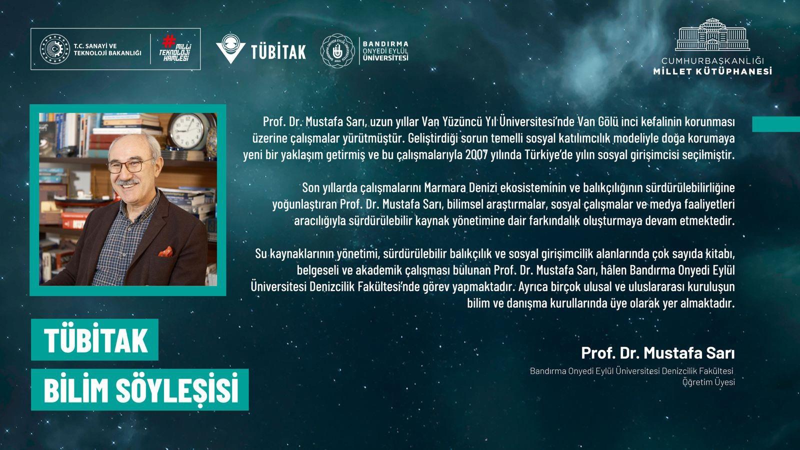 Söyleşide, Denizcilik Fakültesi öğretim üyemiz Prof. Dr. Mustafa Sarı, uzun yıllara dayanan bilimsel çalışmaları kapsamında Marmara Denizi ekosistemi, iklim değişikliği, sürdürülebilir balıkçılık ve sosyal girişimcilik alanlarındaki birikimlerini katılımcılarla paylaşacaktır.