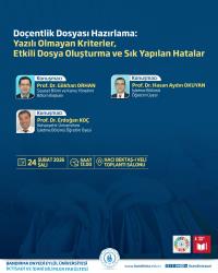 “Doçentlik Dosyası Hazırlama: Yazılı Olmayan Kriterler, Etkili Dosya Oluşturma ve Sık Yapılan Hatalar” Konulu Söyleşi Düzenleniyor