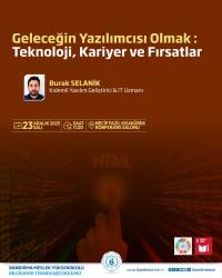 Bandırma Meslek Yüksekokulumuz Bilgisayar Teknolojisi Bölümü tarafından, “Geleceğin Yazılımcısı Olmak: Teknoloji, Kariyer ve Fırsatlar” başlıklı bir söyleşi düzenlenecektir.