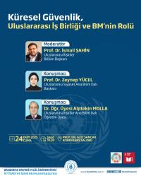 İktisadi ve İdari Bilimler Fakültemiz tarafından, uluslararası güvenlik perspektifinden iş birliği mekanizmalarını ve Birleşmiş Milletler’in rolünü ele almak amacıyla “Küresel Güvenlik, Uluslararası İş Birliği ve BM’nin Rolü” başlıklı bir panel düzenlenecektir.
