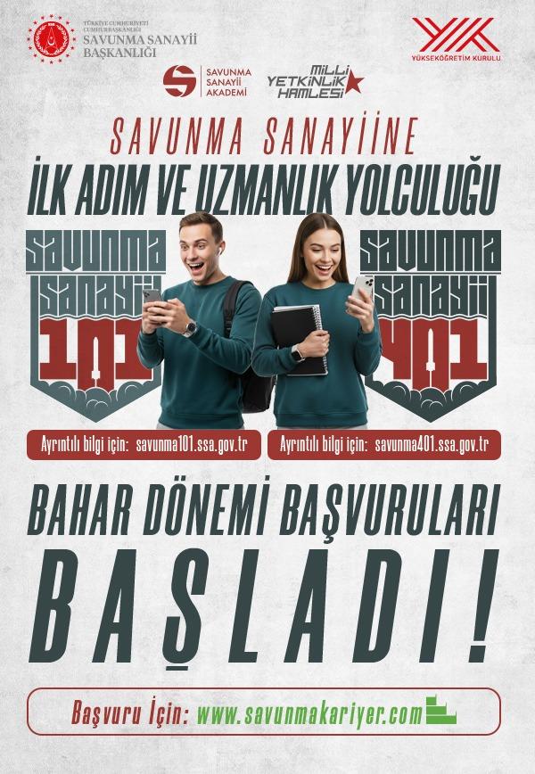 Savunma Sanayi Akademi tarafından yürütülen ve Yükseköğretim Kurulu (YÖK) iş birliğiyle gerçekleştirilen Milli Yetkinlik Hamlesi kapsamında, üniversite öğrencilerine yönelik Savunma Sanayii 101, 102, 401 ve 402 Eğitim Programlarının bahar dönemi başvuruları başlamıştır.