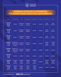 Üniversitemizde yer alan Yarı Olimpik Yüzme Havuzu, belirlenen yeni dönem kullanım seanslarıyla hizmet vermeye başladı.