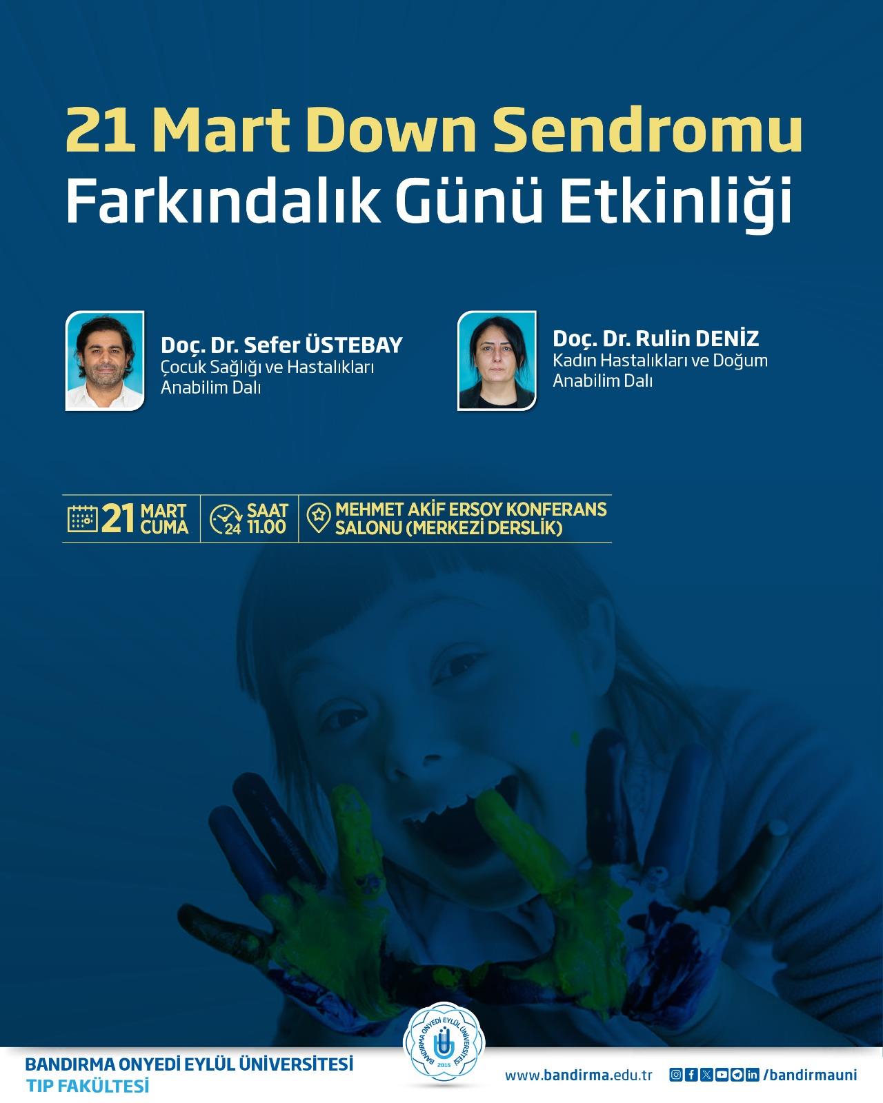 Üniversitemiz Tıp Fakültesi tarafından 21 Mart Down Sendromu Farkındalık Günü Etkinliği düzenlenecektir.