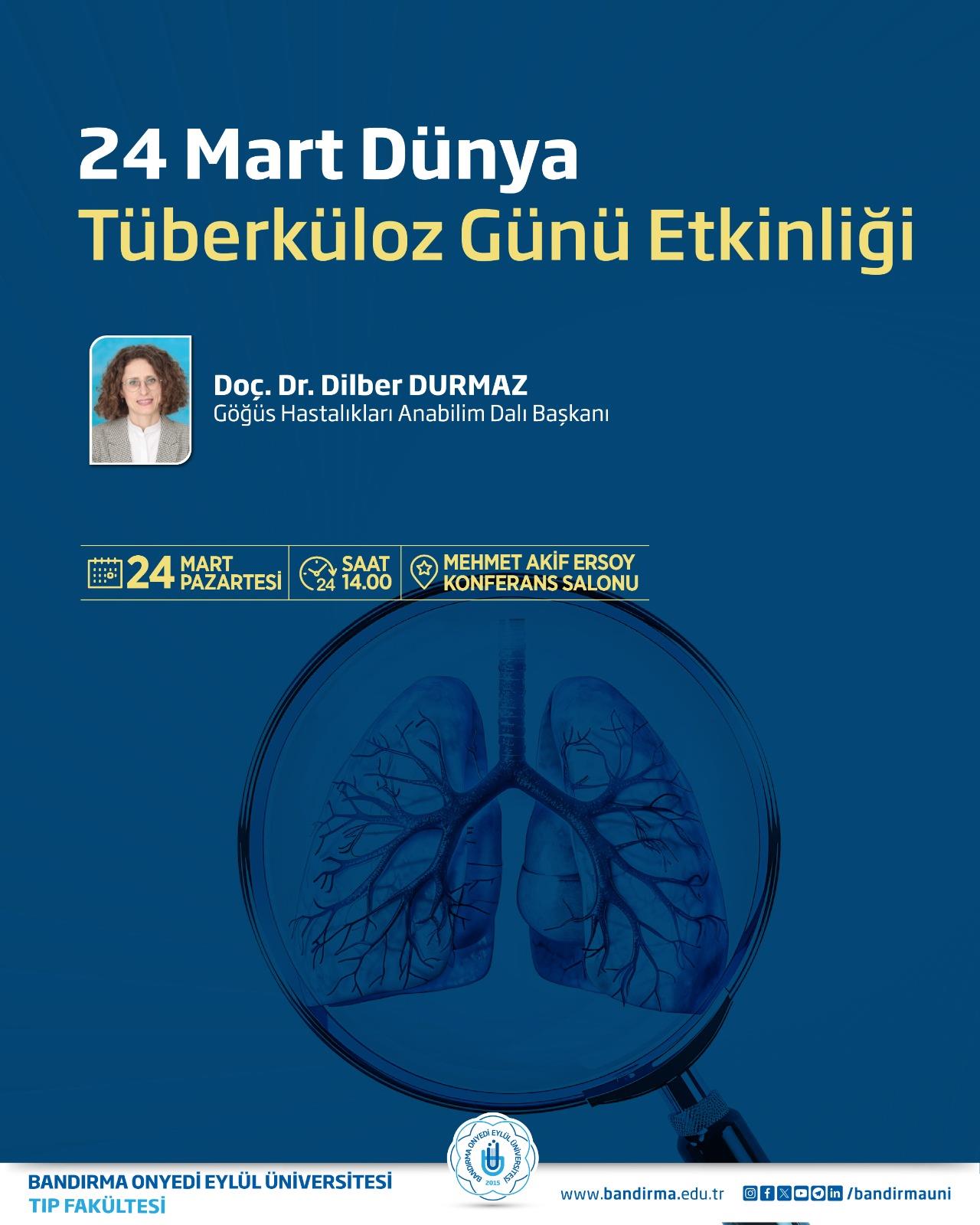 Üniversitemiz Tıp Fakültesi tarafından 24 Mart Dünya Tüberküloz Günü etkinliği düzenlenecektir.