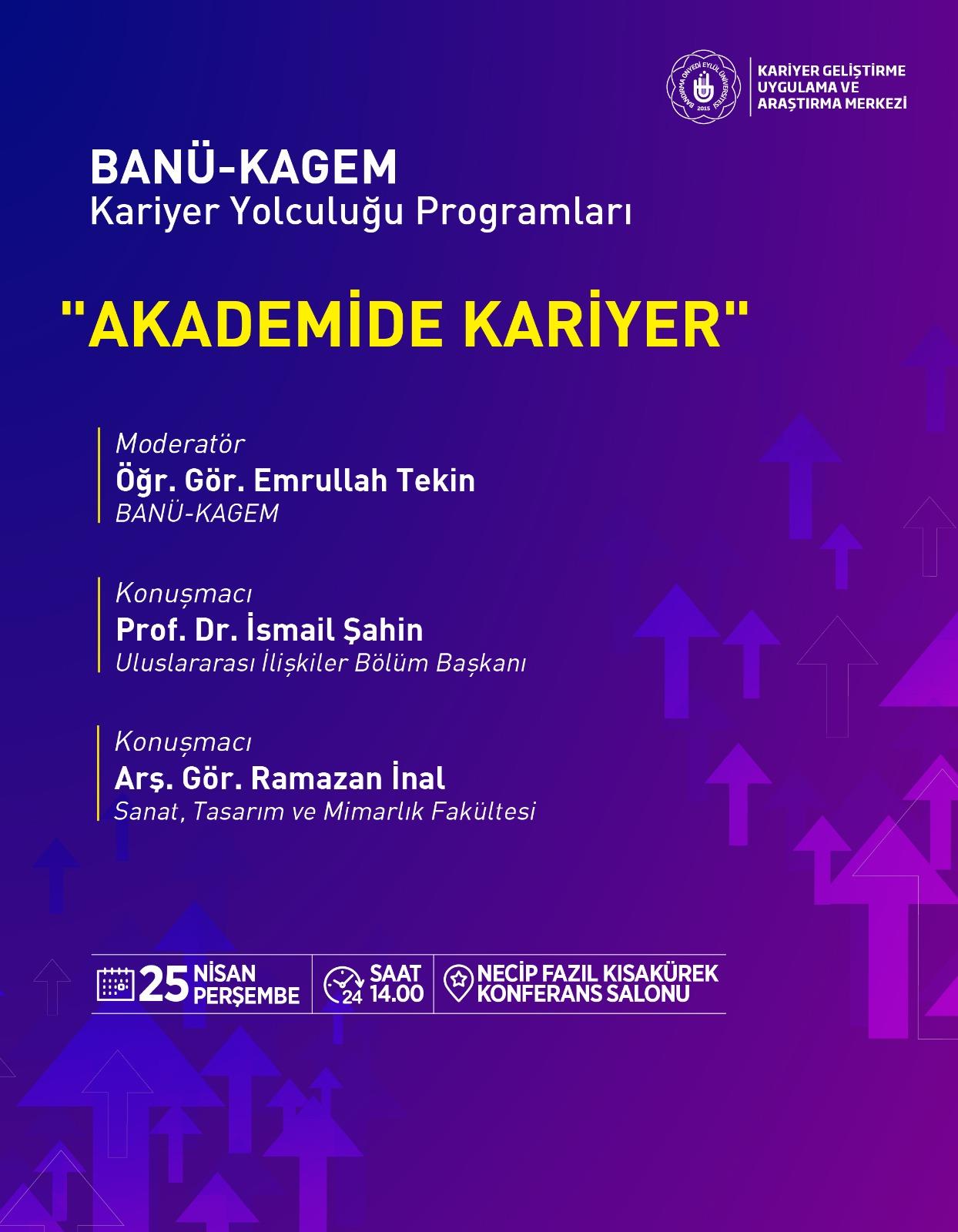BANÜ-KAGEM Kariyer Yolculuğu Programları kapsamında “Akademide Kariyer” konulu panel düzenlenecektir.