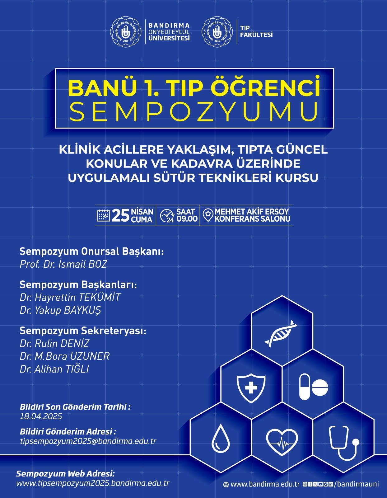 Üniversitemiz Tıp Fakültesi tarafından “BANÜ 1. Tıp Öğrenci Sempozyumu” düzenlenecektir.