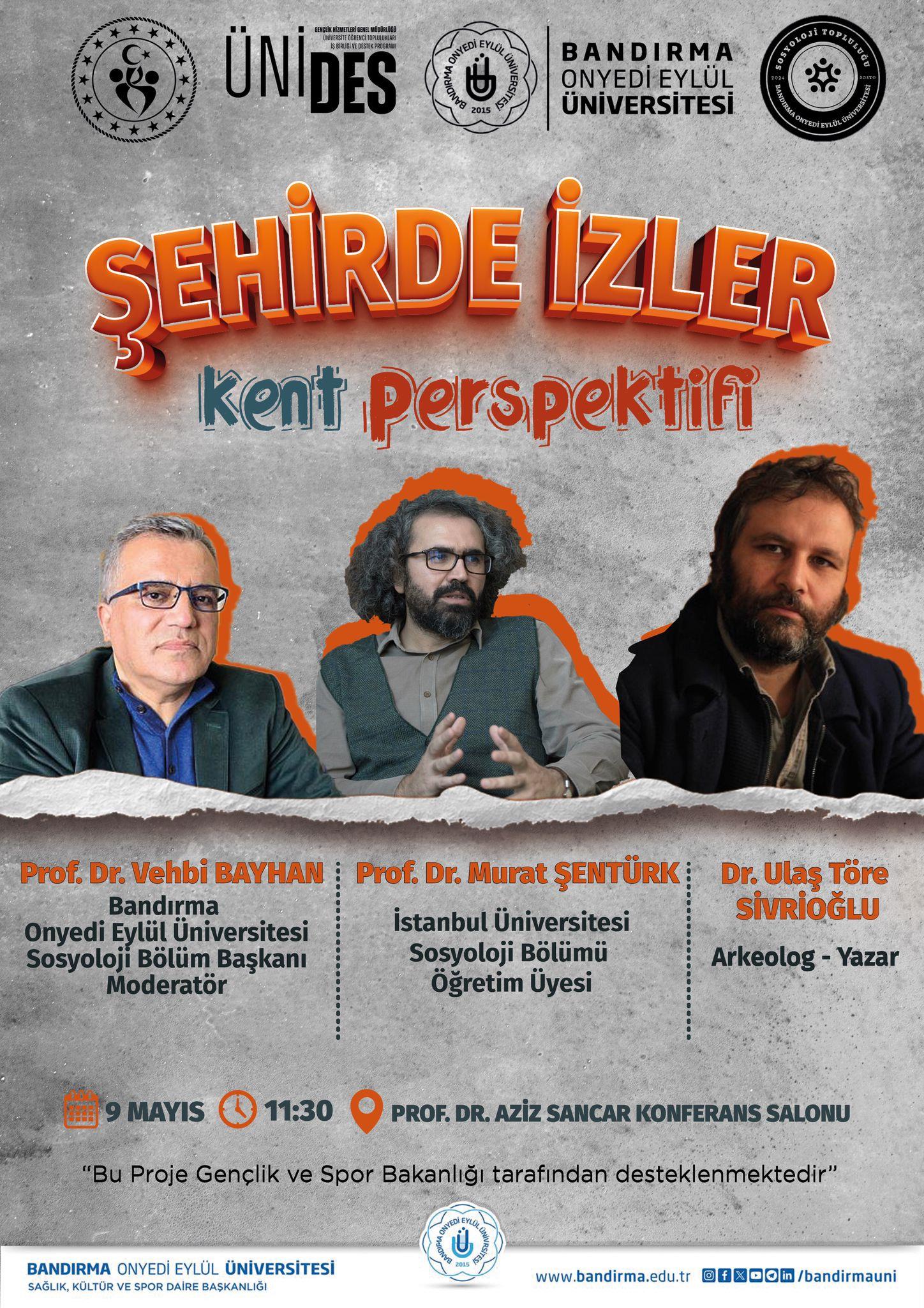 Gençlik ve Spor Bakanlığı tarafından desteklenen Üniversite Öğrenci Toplulukları İş Birliği ve Destek Programı (ÜNİDES) kapsamında Üniversitemiz Sosyoloji Topluluğu tarafından “Şehirde İzler: Kent Perspektifi” konulu konferans düzenlenecektir.