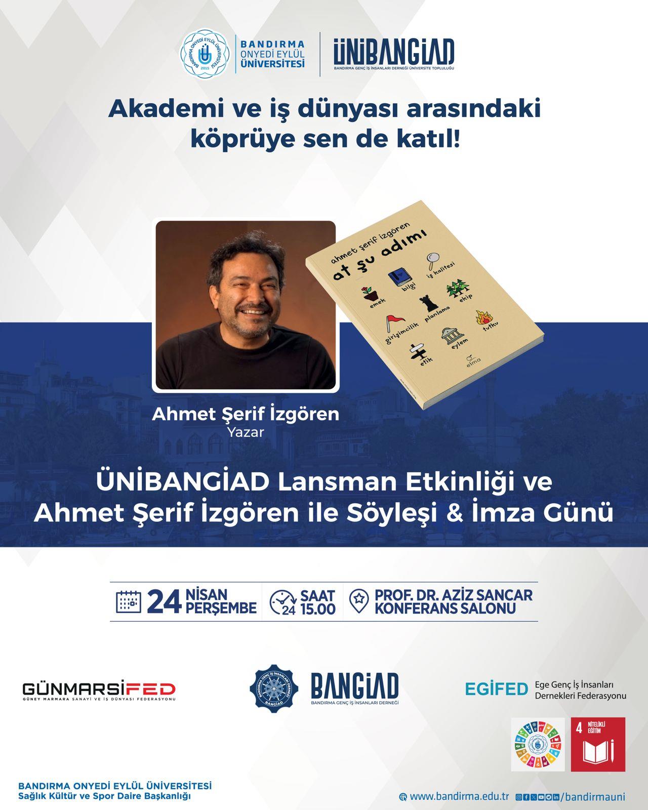 Üniversitemizde ÜNİBANGİAD Lansman Etkinliği ve Ahmet Şerif İzgören ile Söyleşi ve İmza Günü Düzenleniyor