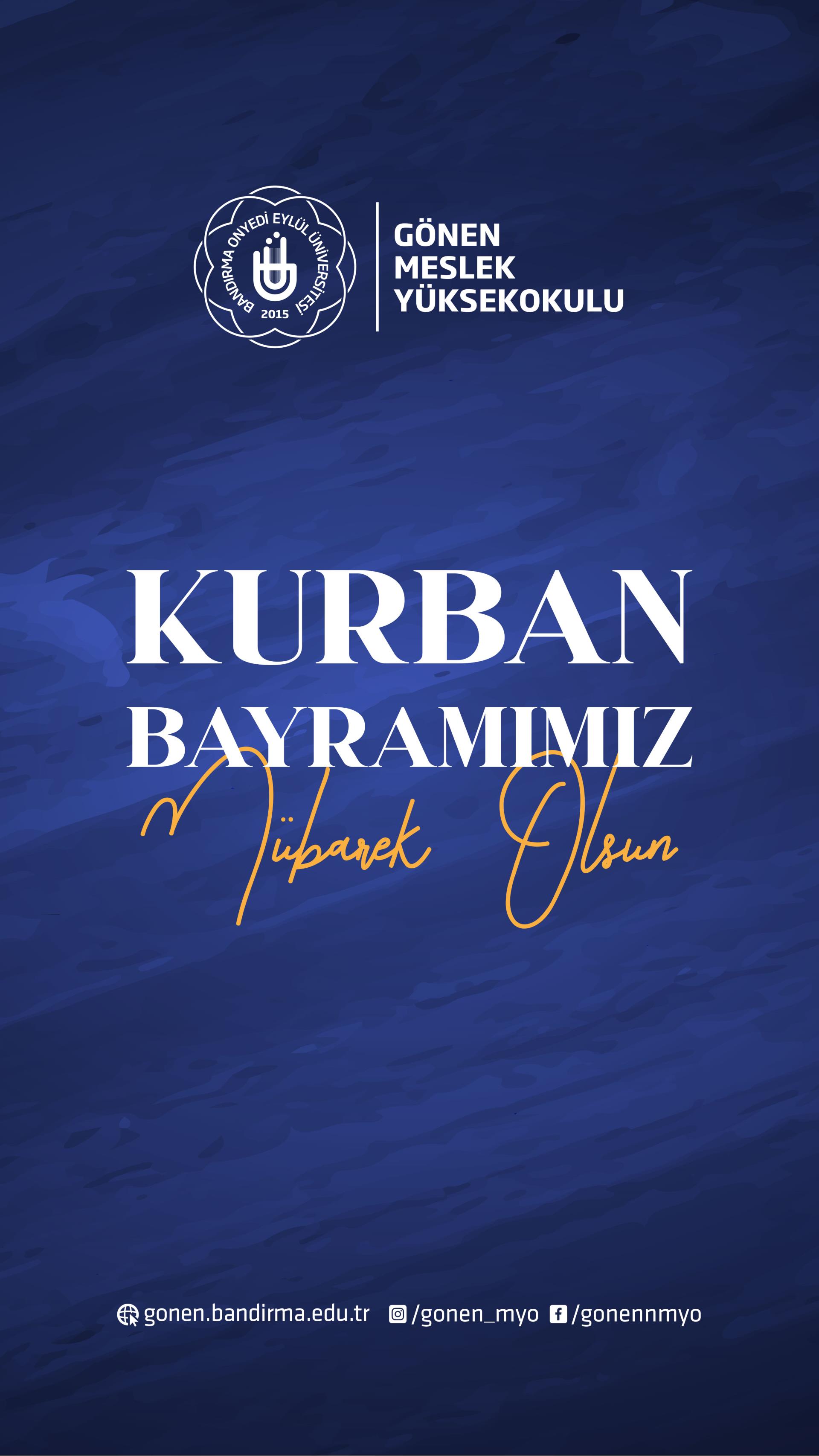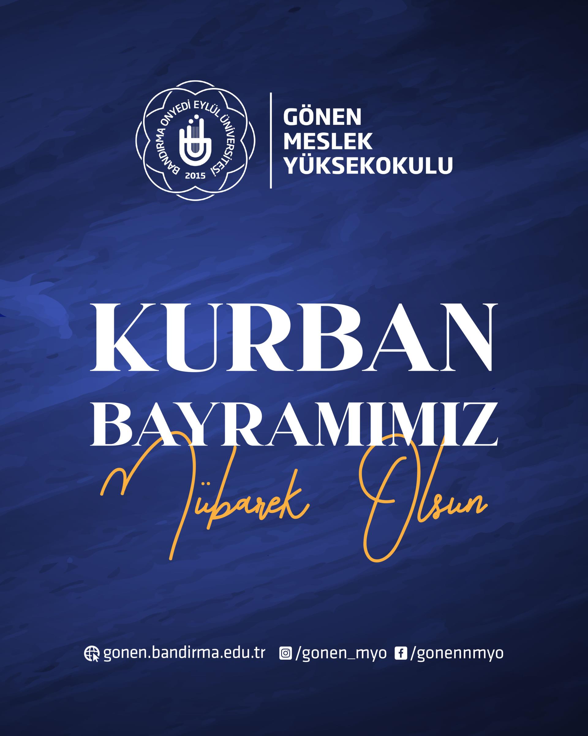 Kurban Bayramınızı en içten dileklerimizle kutlar, bu mübarek bayramın ülkemize ve tüm insanlığa sağlık, barış ve huzur getirmesini temenni ederiz. Sevdiklerinizle birlikte nice mutlu bayramlara erişmenizi dileriz.