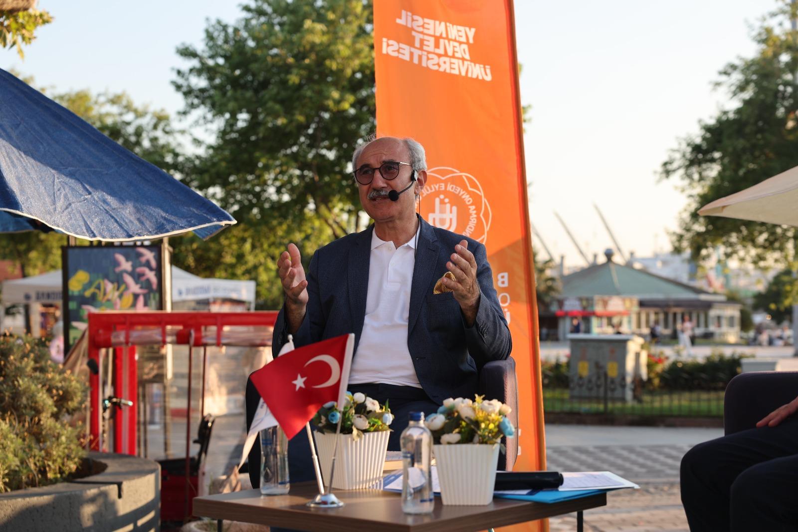 Etkinliğin moderatörlüğünü Kurumsal İletişim Koordinatörümüz Öğr. Gör. Muhammet Yörübulut üstlenirken, konuşmacı olarak ise Denizcilik Fakültesi Öğretim Üyemiz Prof. Dr. Mustafa Sarı yer aldı. Prof. Dr. Mustafa Sarı, “Marmara Denizi, Tehditler ve Müsilaj” başlıklı konuşmasıyla Marmara Denizi’nin karşı karşıya olduğu çevresel tehditleri bilimsel verilerle ele aldı.