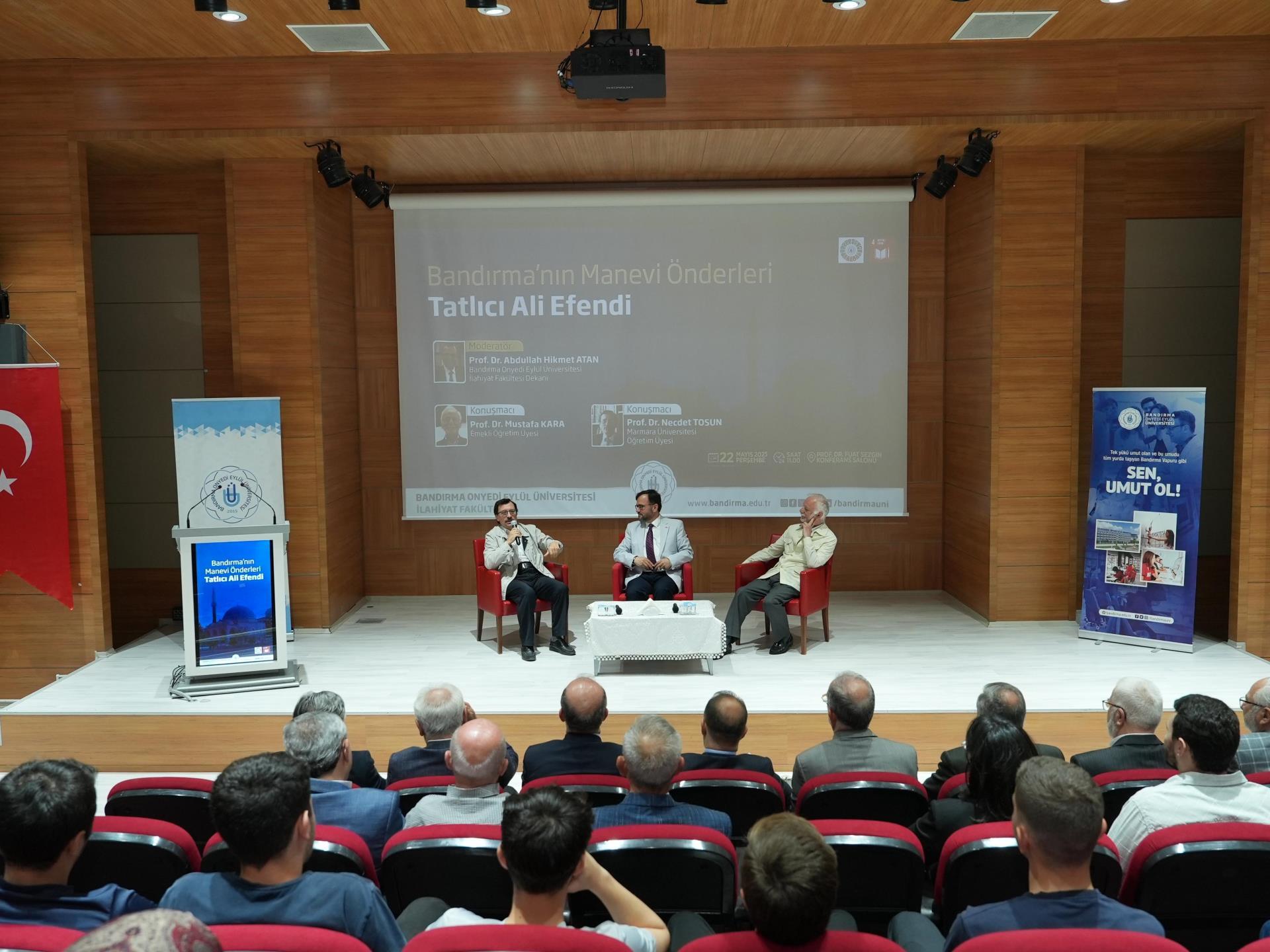 Üniversitemiz İlahiyat Fakültesi tarafından düzenlenen “Bandırma’nın Manevi Önderleri: Tatlıcı Ali Efendi” başlıklı panel, Prof. Dr. Fuat Sezgin Konferans Salonu’nda yoğun katılımla gerçekleştirildi.