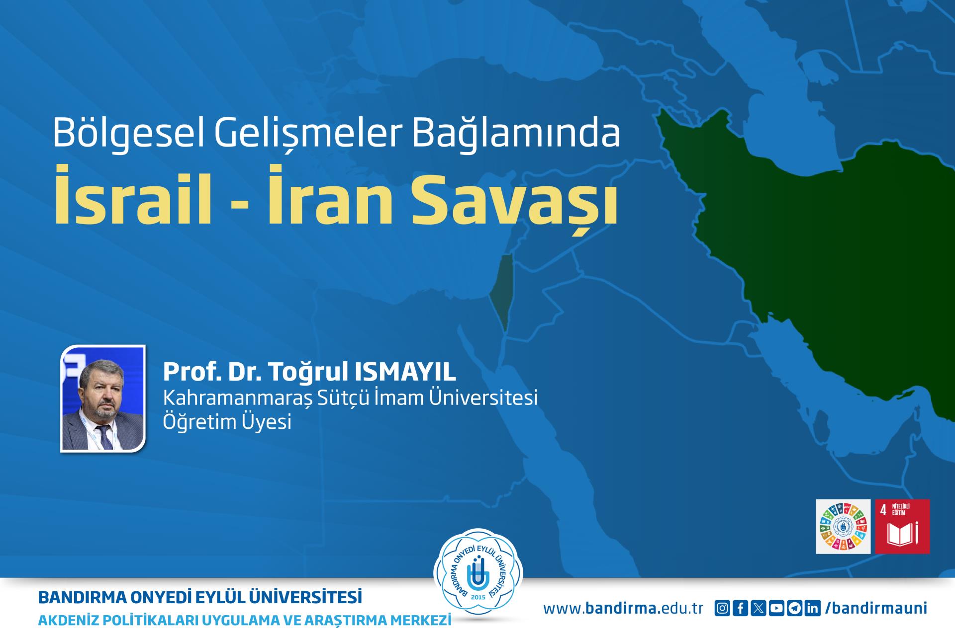 Konferansa, Kahramanmaraş Sütçü İmam Üniversitesi Öğretim Üyesi Prof. Dr. Toğrul Ismayıl konuşmacı olarak katıldı. Moderatörlüğünü BANÜ-APAM Müdürümüz Doç. Dr. Altuğ Günar’ın yaptığı konferansta, İran ile İsrail arasında başlayan savaşın tarihsel kökenleri, günümüzdeki yansımaları ve özellikle Akdeniz ile Doğu Akdeniz bölgesi üzerindeki etkileri kapsamlı şekilde değerlendirildi.