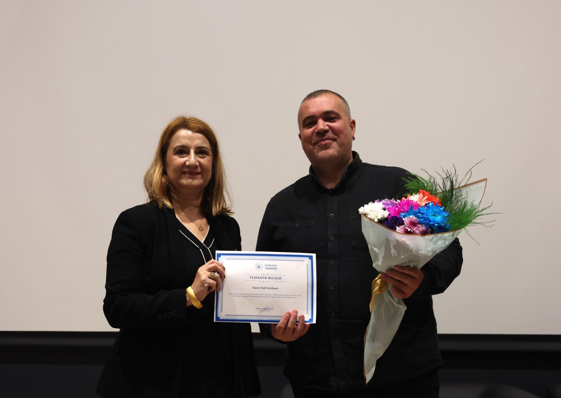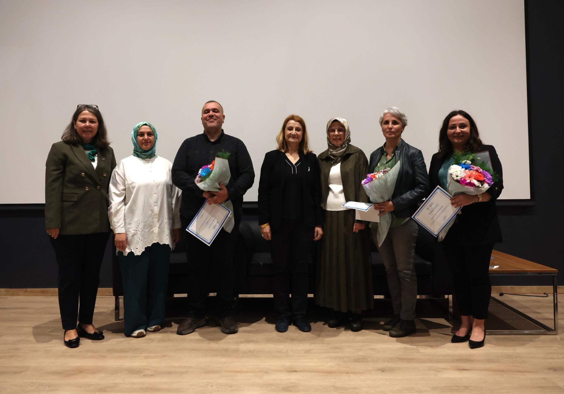 At the end of the program, certificates of appreciation were presented to the speakers by Dear Sibel Boz, wife of our Rector Dear Prof. Dr. İsmail Boz; Vice Rector and our Head of Department Dear Prof. Dr. Ebru Kaya Mutlu; Director of the Vocational School of Health Services and our department faculty member Dear Assist. Prof. Dr. Fatma Nur Yılmaz; and Dean of the Faculty of Medicine Dear Prof. Dr. Ayşe Güldem Kilciler. The seminar ended after a group photo.