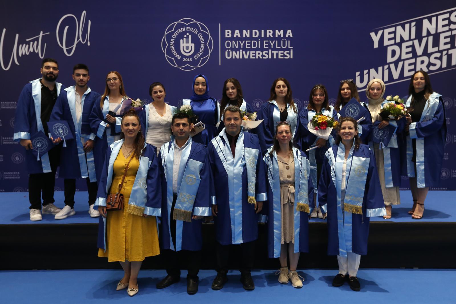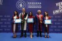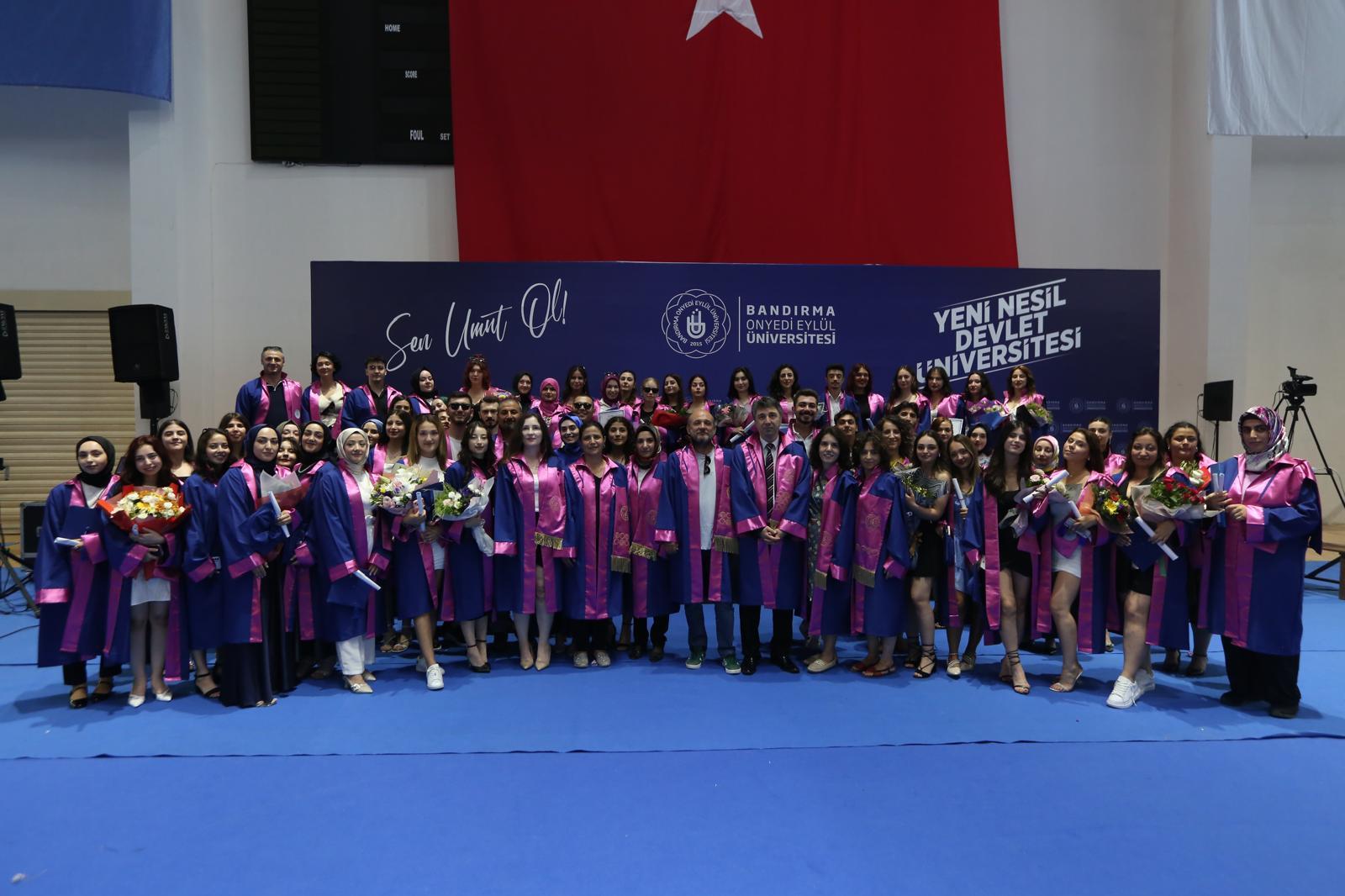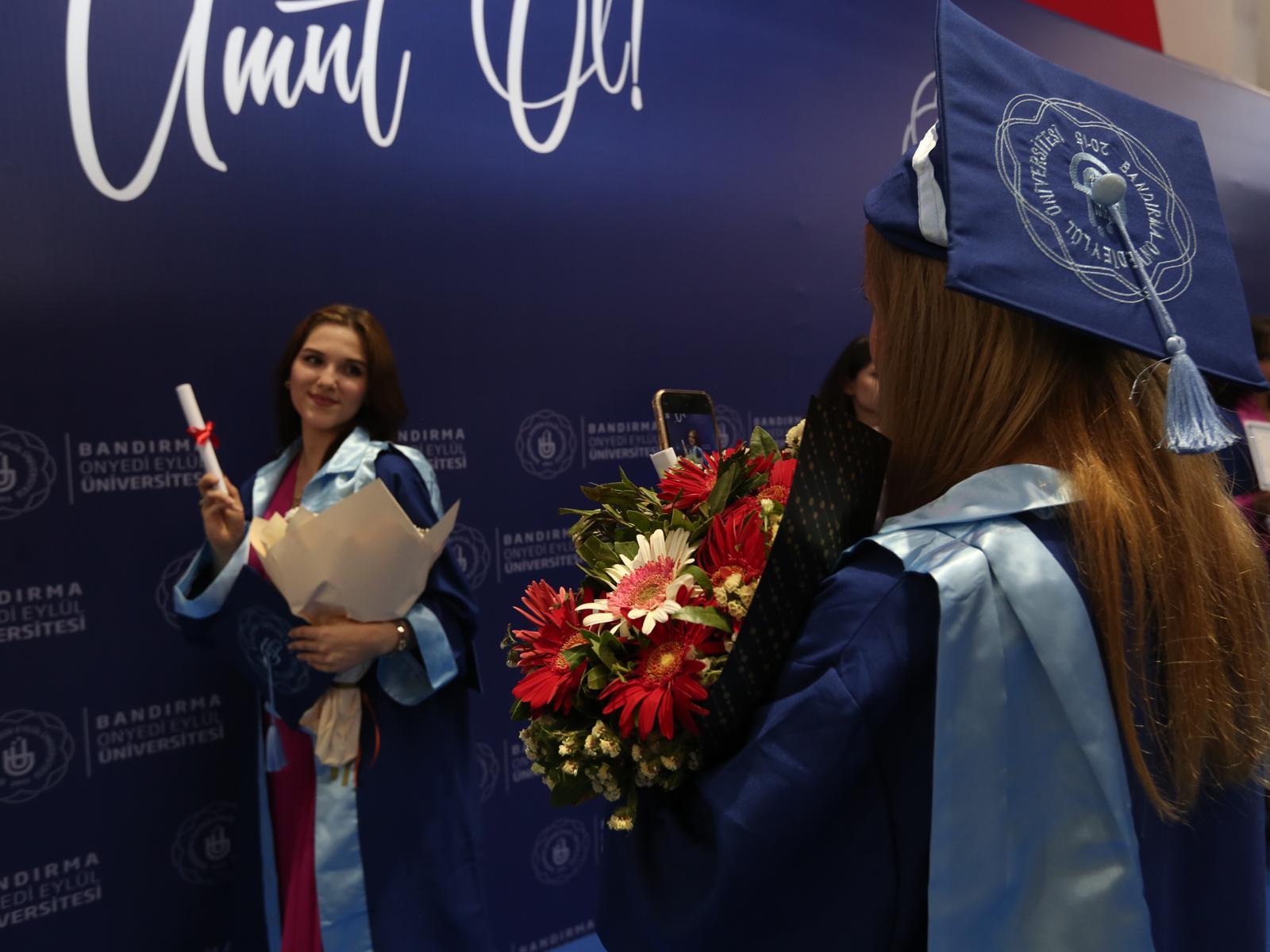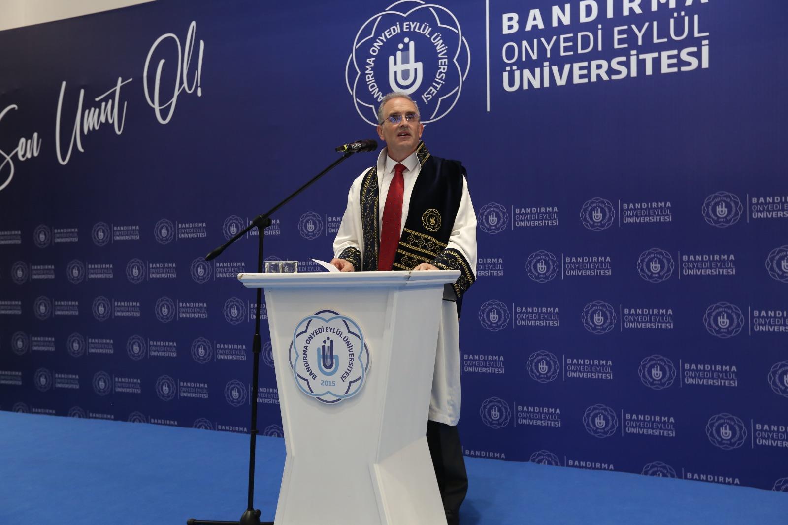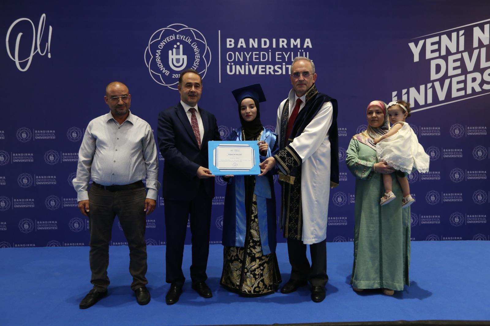 Mezuniyet törenlerimizin ilki; Adalet Meslek Yüksekokulu, Bandırma Meslek Yüksekokulu, Denizcilik Meslek Yüksekokulu ve Sağlık Hizmetleri Meslek Yüksekokulu mezunlarımıza yönelik düzenlenen mezuniyet töreni oldu. Saygı duruşu ve İstiklal Marşımızın okunmasıyla başlayan törende Rektörümüz Prof. Dr. İsmail Boz tarafından yapılan açış konuşmasının ardından Meslek Yüksekokullarımızı birincilikle bitiren öğrencilerimizin tüm mezunlar adına kütüğe plaket çakma seremonisi gerçekleşti. Seremoninin ardından Adalet Meslek Yüksekokulu Adalet Programı öğrencimiz Hatice Kara, mezun öğrencilerimiz adına bir konuşma gerçekleştirdi. Daha sonra dereceye giren öğrencilerimize başarı belgeleri ve tüm mezun öğrencilerimize mezuniyet anı belgelerinin takdim edildi. Tören, mezun öğrencilerin keplerini havaya atması ve mezuniyet eğlencesinin ardından son buldu.