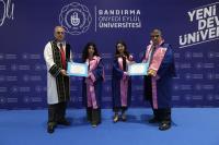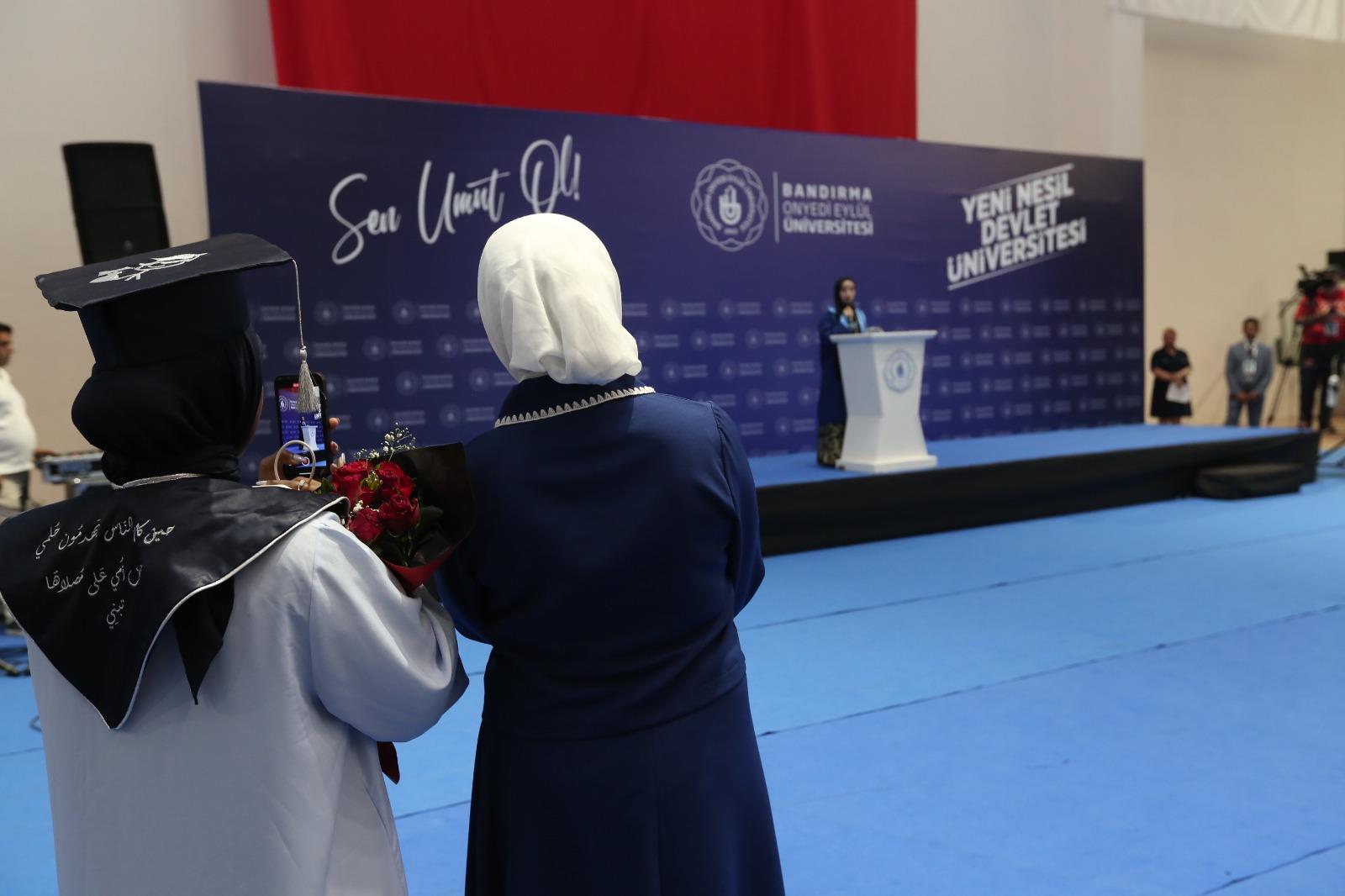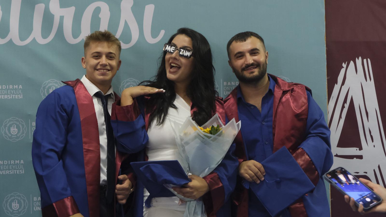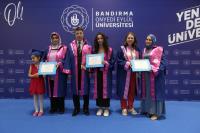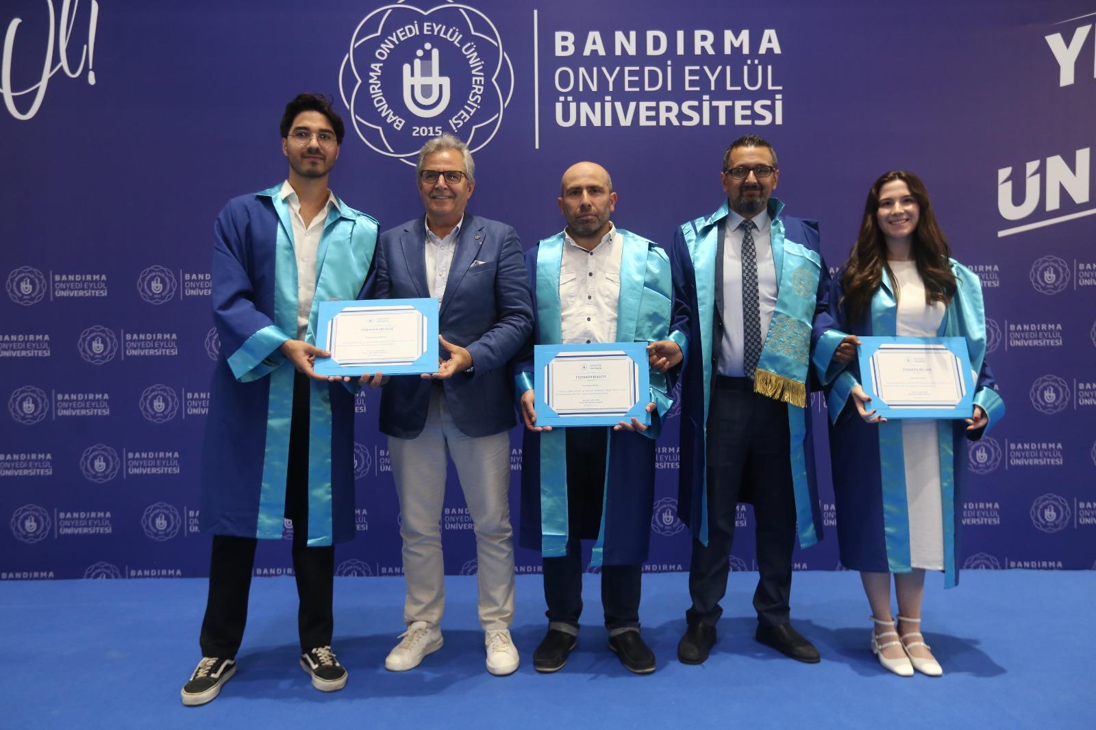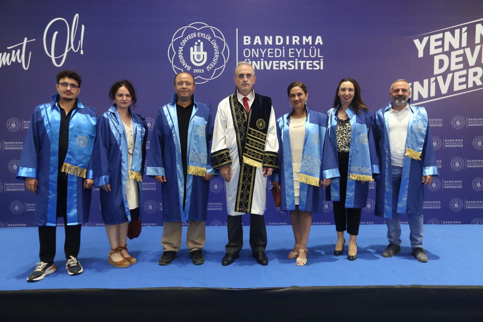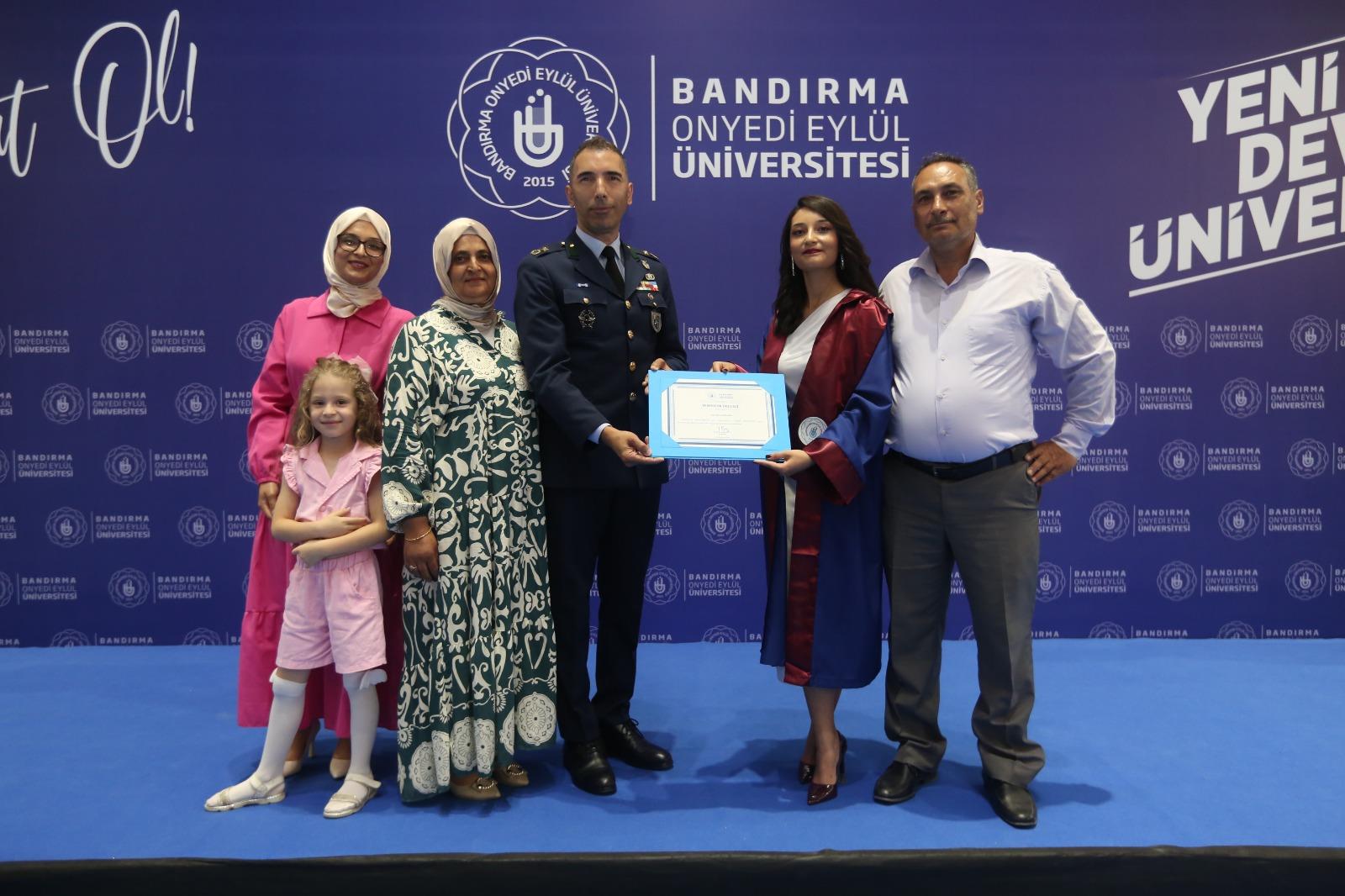 Mezuniyet törenlerimizin ilki; Adalet Meslek Yüksekokulu, Bandırma Meslek Yüksekokulu, Denizcilik Meslek Yüksekokulu ve Sağlık Hizmetleri Meslek Yüksekokulu mezunlarımıza yönelik düzenlenen mezuniyet töreni oldu. Saygı duruşu ve İstiklal Marşımızın okunmasıyla başlayan törende Rektörümüz Prof. Dr. İsmail Boz tarafından yapılan açış konuşmasının ardından Meslek Yüksekokullarımızı birincilikle bitiren öğrencilerimizin tüm mezunlar adına kütüğe plaket çakma seremonisi gerçekleşti. Seremoninin ardından Adalet Meslek Yüksekokulu Adalet Programı öğrencimiz Hatice Kara, mezun öğrencilerimiz adına bir konuşma gerçekleştirdi. Daha sonra dereceye giren öğrencilerimize başarı belgeleri ve tüm mezun öğrencilerimize mezuniyet anı belgelerinin takdim edildi. Tören, mezun öğrencilerin keplerini havaya atması ve mezuniyet eğlencesinin ardından son buldu.