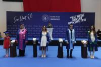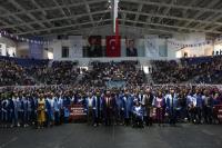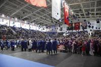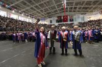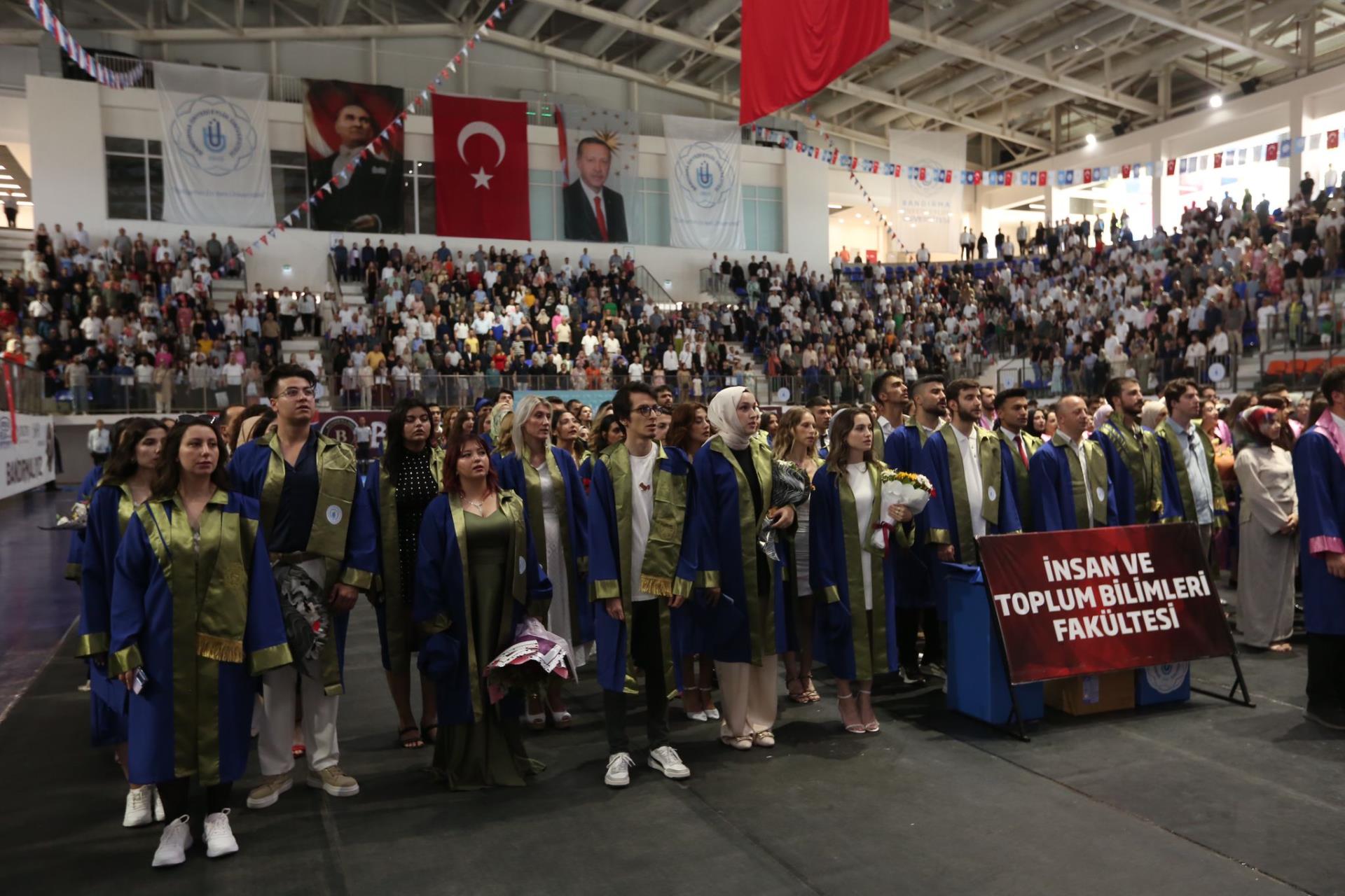 Mezuniyet törenlerimizin ikincisi; İnsan ve Toplum Bilimleri Fakültesi, Mühendislik ve Doğa Bilimleri Fakültesi ve Sağlık Bilimleri Fakültesi mezunlarımıza yönelik düzenlenen mezuniyet töreni oldu. Saygı duruşu ve İstiklal Marşımızın okunmasıyla başlayan törende Rektörümüz Prof. Dr. İsmail Boz tarafından yapılan açış konuşmasının ardından Fakültelerimizi birincilikle bitiren öğrencilerimizin tüm mezunlar adına kütüğe plaket çakma seremonisi gerçekleşti. Seremoninin ardından Sağlık Bilimleri Fakültesi Sağlık Yönetimi Bölümü öğrencimiz Sevgül Taş, mezun öğrencilerimiz adına bir konuşma gerçekleştirdi. Daha sonra dereceye giren öğrencilerimize başarı belgeleri ve tüm mezun öğrencilerimize mezuniyet anı belgelerinin takdim edildi. Öğrenciler, cüppe ve kepleriyle mezuniyet tören alanını doldururken kıymetli aileleri ve sevdikleri onları gururla ve mutlulukla izledi. Mezuniyet törenlerimiz, mezun öğrencilerimizin kep atma ve toplu fotoğraf çekimleri ile son buldu.