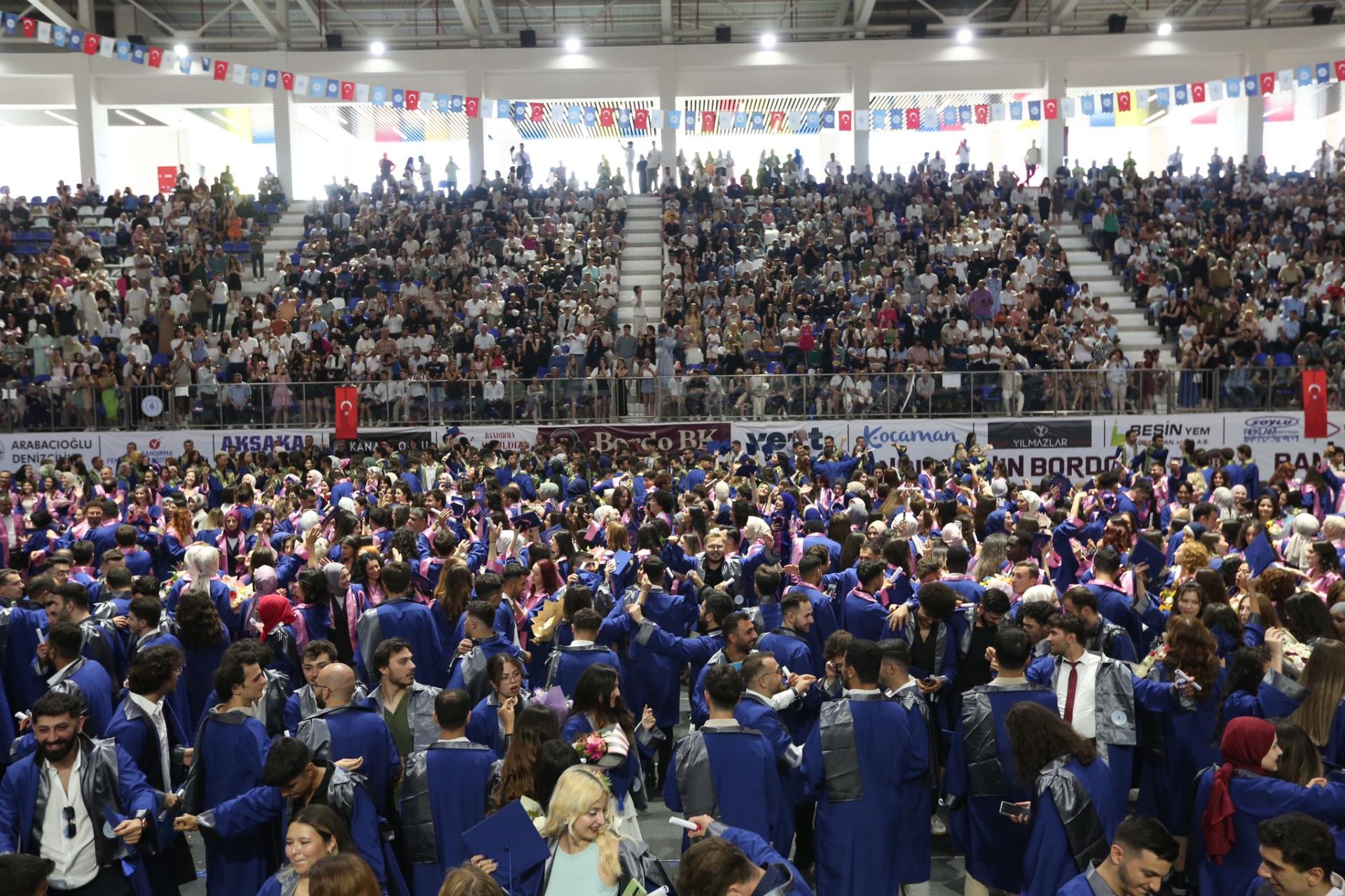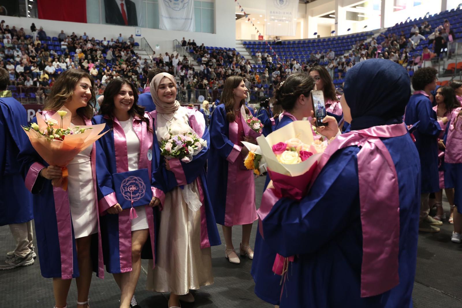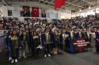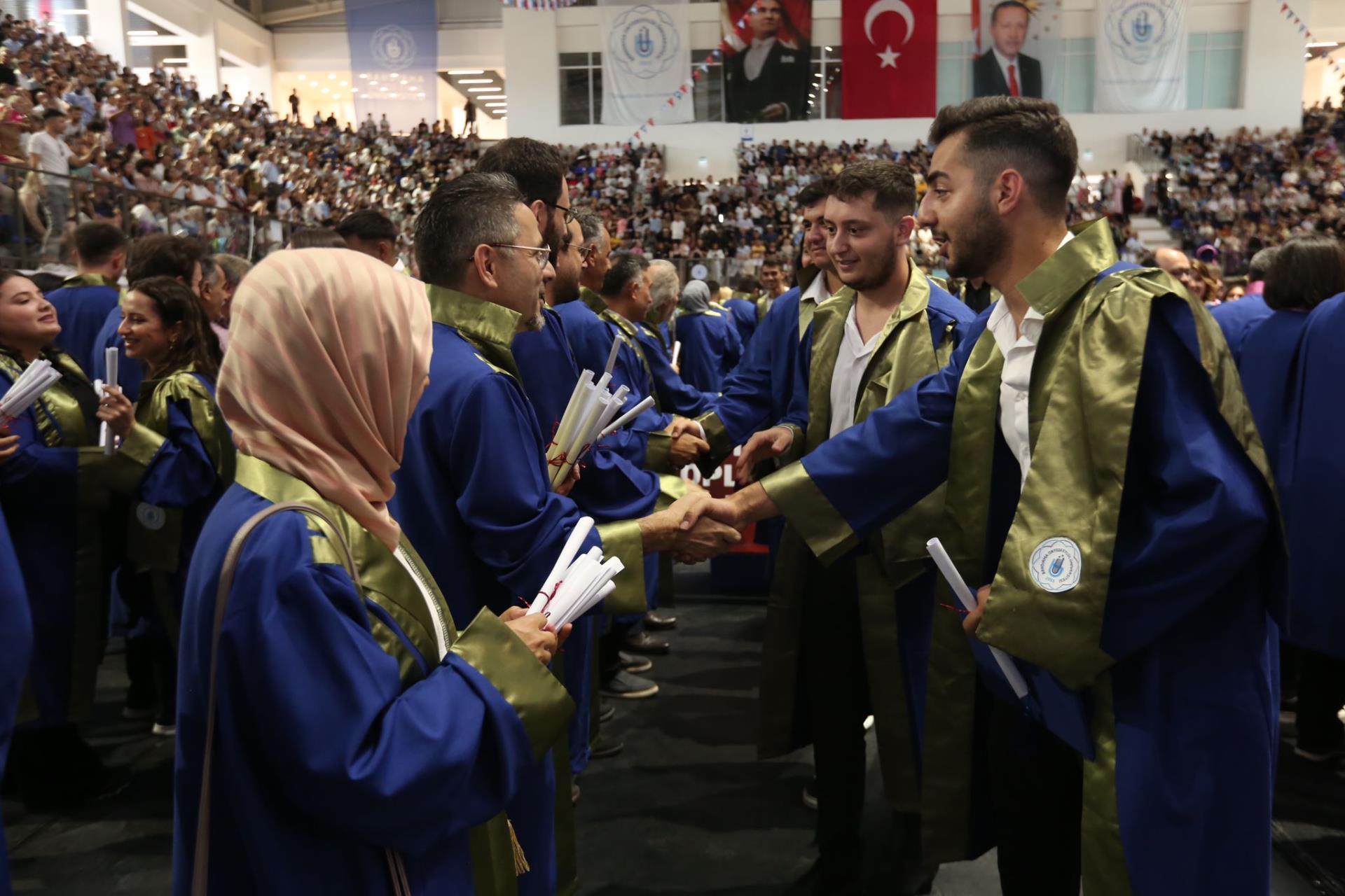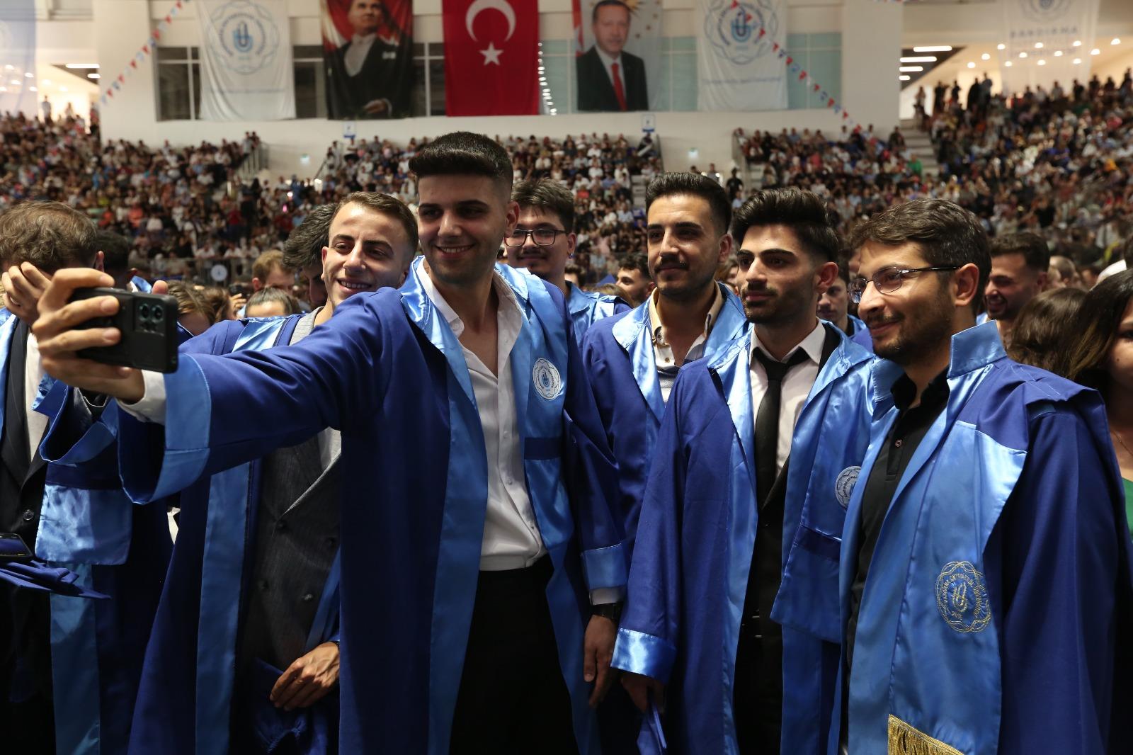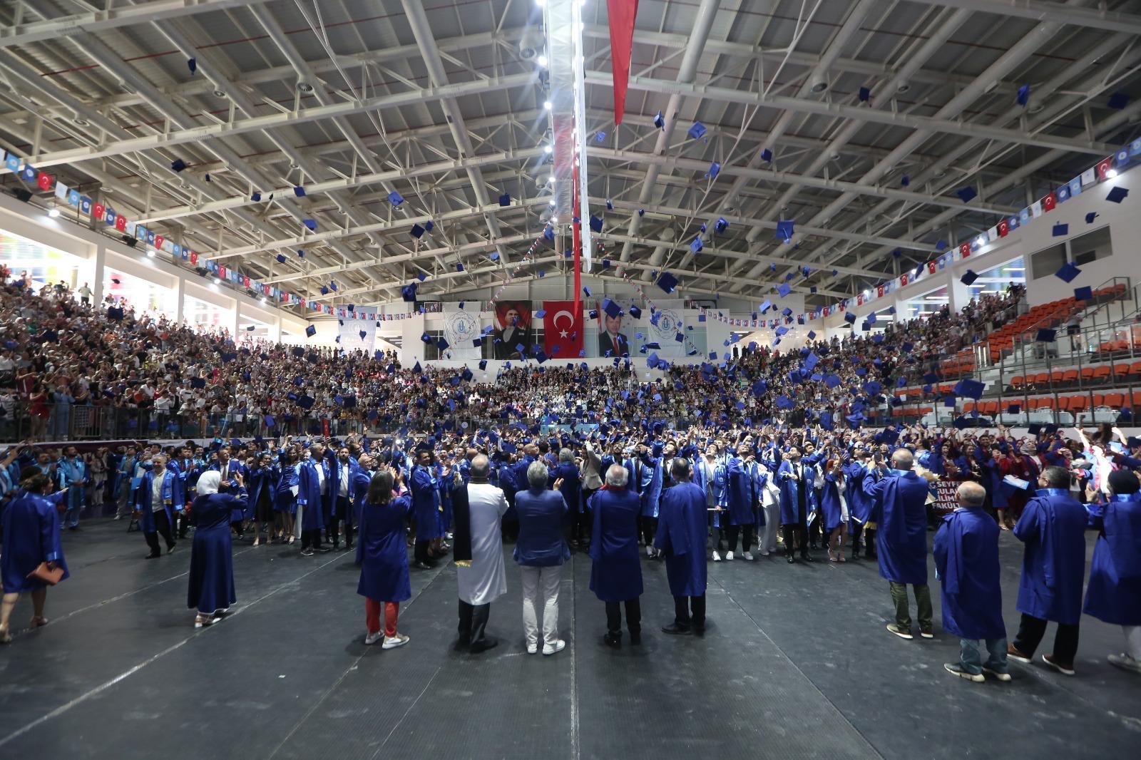 Üniversitemiz 2023-2024 Eğitim-Öğretim Yılı Lisans ve Önlisans mezunlarına yönelik düzenlenen mezuniyet törenlerimiz büyük bir coşkuyla gerçekleşti. Mezun olan öğrencilerimiz, diploma sevincini aileleri ve sevdikleriyle paylaşmanın mutluluğunu yaşadılar. BANÜ Spor Vadisi Kapalı Spor Salonu’nda üç ayrı program olarak düzenlenen mezuniyet törenlerinde öğrencilerimiz, uzun bir eğitim maratonunun ardından kazandıkları başarıları, kıymetli aileleri ve akademik/idari kadromuzla birlikte kutladılar. Mezuniyet törenleri sonunda ülkemizin umudu, istikbalimizin parlayan yıldızları gençlerimizi yeni hayatlarına uğurladık.