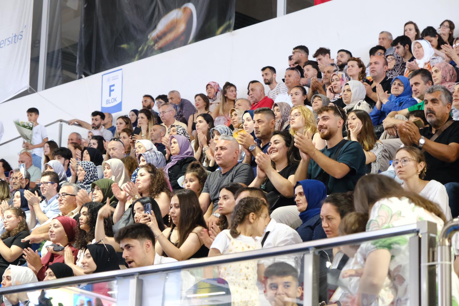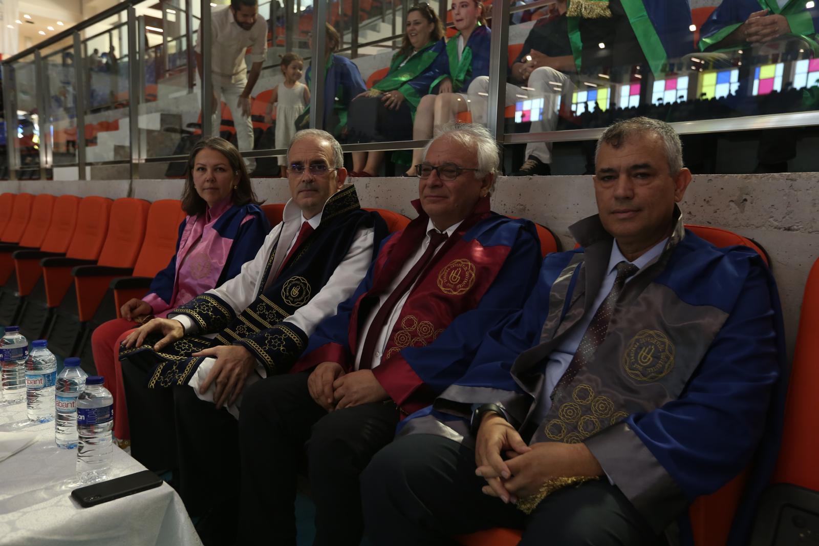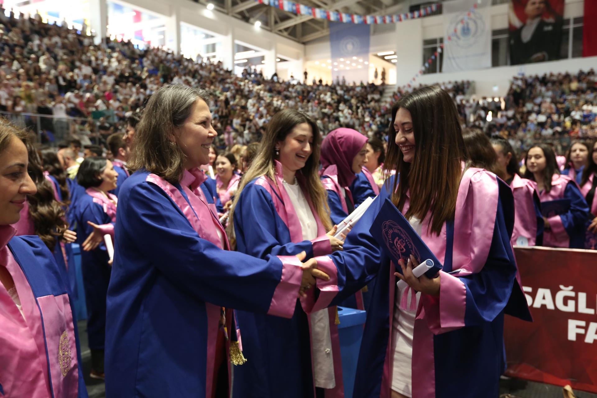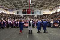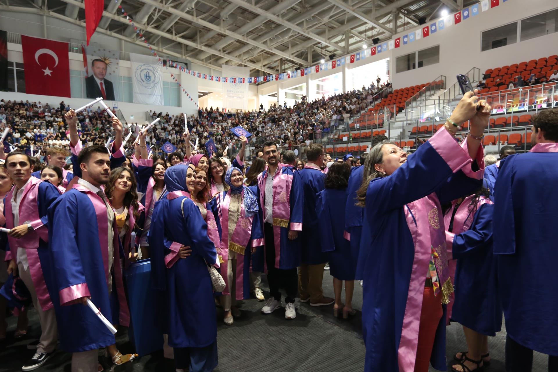 Üniversitemiz 2023-2024 Eğitim-Öğretim Yılı Lisans ve Önlisans mezunlarına yönelik düzenlenen mezuniyet törenlerimiz büyük bir coşkuyla gerçekleşti. Mezun olan öğrencilerimiz, diploma sevincini aileleri ve sevdikleriyle paylaşmanın mutluluğunu yaşadılar. BANÜ Spor Vadisi Kapalı Spor Salonu’nda üç ayrı program olarak düzenlenen mezuniyet törenlerinde öğrencilerimiz, uzun bir eğitim maratonunun ardından kazandıkları başarıları, kıymetli aileleri ve akademik/idari kadromuzla birlikte kutladılar. Mezuniyet törenleri sonunda ülkemizin umudu, istikbalimizin parlayan yıldızları gençlerimizi yeni hayatlarına uğurladık.