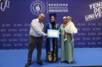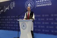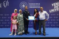 Mezuniyet törenimizin üçüncüsü; Denizcilik Fakültesi, İktisadi ve İdari Bilimler Fakültesi ve Ömer Seyfettin Uygulamalı Bilimler Fakültesi mezunlarımıza yönelik düzenlenen mezuniyet töreni oldu. Törene; Bandırma Kaymakamı Engin Aksakal, Balıkesir Milletvekili Ali Taylan Öztaylan, Garnizon Komutan Vekili Hava Piyade Binbaşı Serkant Karaman, Bandırma Belediye Başkanı Dursun Mirza, Rektörümüz Prof. Dr. İsmail Boz, Rektör Yardımcılarımız Prof. Dr. Alpaslan Serel, Prof. Dr. Feyzullah Temurtaş ile Prof. Dr. Ebru Kaya Mutlu, akademik/idari yöneticilerimiz ve personelimiz, ilçe protokolü, siyasi parti ve sivil toplum kuruluşlarının temsilcileri, basın mensupları öğrencilerimiz ve kıymetli yakınları katıldı. Saygı duruşu ve İstiklal Marşımızın okunmasıyla başlayan törende Rektörümüz Prof. Dr. İsmail Boz tarafından mezuniyet törenimizin açış konuşması ve protokol konuşmaları gerçekleştirildi. Protokol konuşmalarının ardından 2023-2024 Eğitim-Öğretim Yılında, Üniversitemizi ve Fakültesini birincilikle bitiren, İktisadi ve İdari Bilimler Fakültesi İşletme Bölümü öğrencimiz Jawahir Aitemran, mezun öğrencilerimiz adına konuşma gerçekleştirdi. Daha sonra Fakültelerimizi birincilikle bitiren öğrencilerimizin tüm mezunlar adına kütüğe plaket çakma seremonisi gerçekleşti. Daha sonra dereceye giren öğrencilerimize başarı belgeleri ve tüm mezun öğrencilerimize mezuniyet anı belgelerinin takdim edildi. Törende yerlerini alan mezun öğrencilerimizin ve kıymetli yakınlarının büyük heyecan ve coşkusuyla kep atma törenine geçildi. Geri sayımın başlamasıyla beraber heyecanın zirveye çıktığı o anda mezun öğrencilerimiz, hep birlikte keplerini havaya atarak mezuniyet sevincini doyasıya yaşadılar.