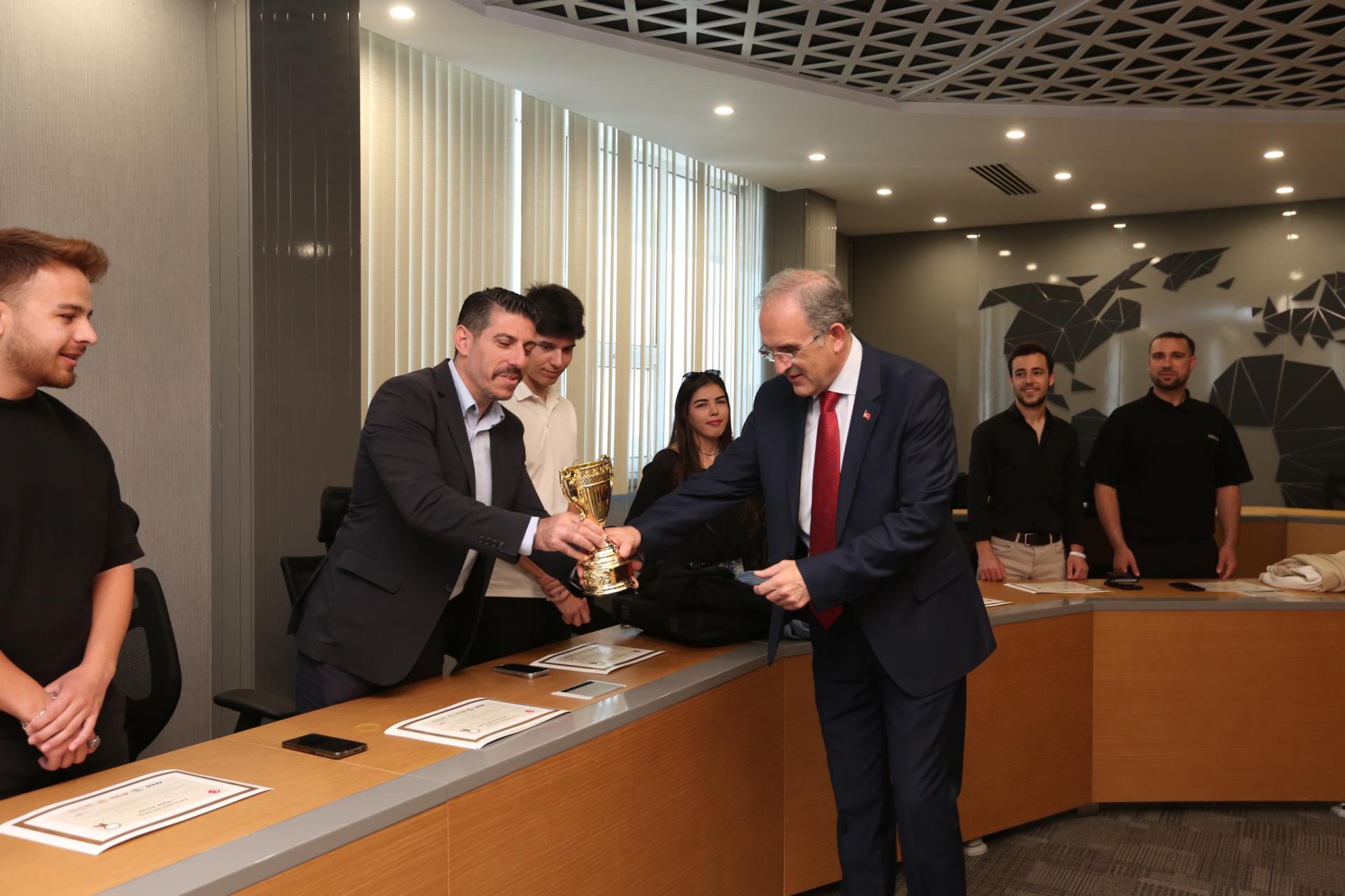 Teşekkür programına Rektörümüz Prof. Dr. İsmail Boz, Rektör Yardımcılarımız Prof. Dr. Alpaslan Serel ve Prof. Dr. Ebru Kaya Mutlu, Sağlık, Kültür ve Spor Daire Başkanımız Mehmet Karatepe ve 911 Arama Kurtarma ve Dağcılık Topluluğumuz katıldı. Rektörümüz Prof. Dr. İsmail Boz, teşekkür programında yaptığı konuşmada, "911 Arama Kurtarma ve Dağcılık Topluluğumuzun Balkan Ülkeleri Üniversiteler Arası Arama Kurtarma Yarışması'nda gösterdiği başarılardan dolayı gurur duyduk. Kendilerini kutluyor, başarılarının devamını diliyorum" ifadelerini kullandı.