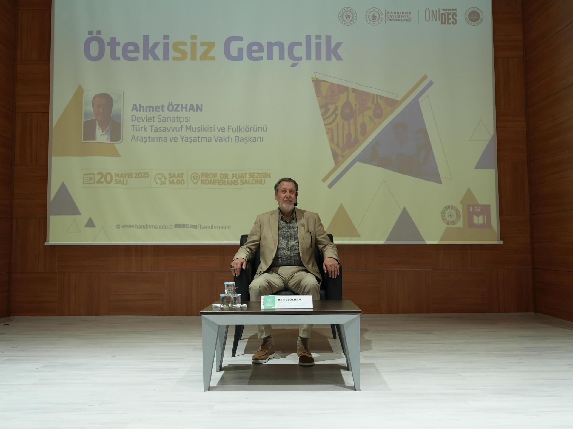 Üniversitemiz Kariyer Geliştirme Uygulama ve Araştırma Merkezi (BANÜ-KAGEM) koordinatörlüğünde, fakültelerimiz ve öğrenci topluluklarımızın iş birliğiyle bu yıl onuncusu düzenlenen geleneksel Kariyer Günleri etkinlikleri tüm hızıyla devam ediyor. Etkinlikler kapsamında, İlahiyat Fakültemiz iş birliğinde, devlet sanatçısı ve aynı zamanda Türk Tasavvuf Musikisi ve Folklörünü Araştırma ve Yaşatma Vakfı Başkanı Ahmet Özhan, Üniversitemizde “Ötekisiz Gençlik” başlıklı bir söyleşi gerçekleştirdi.