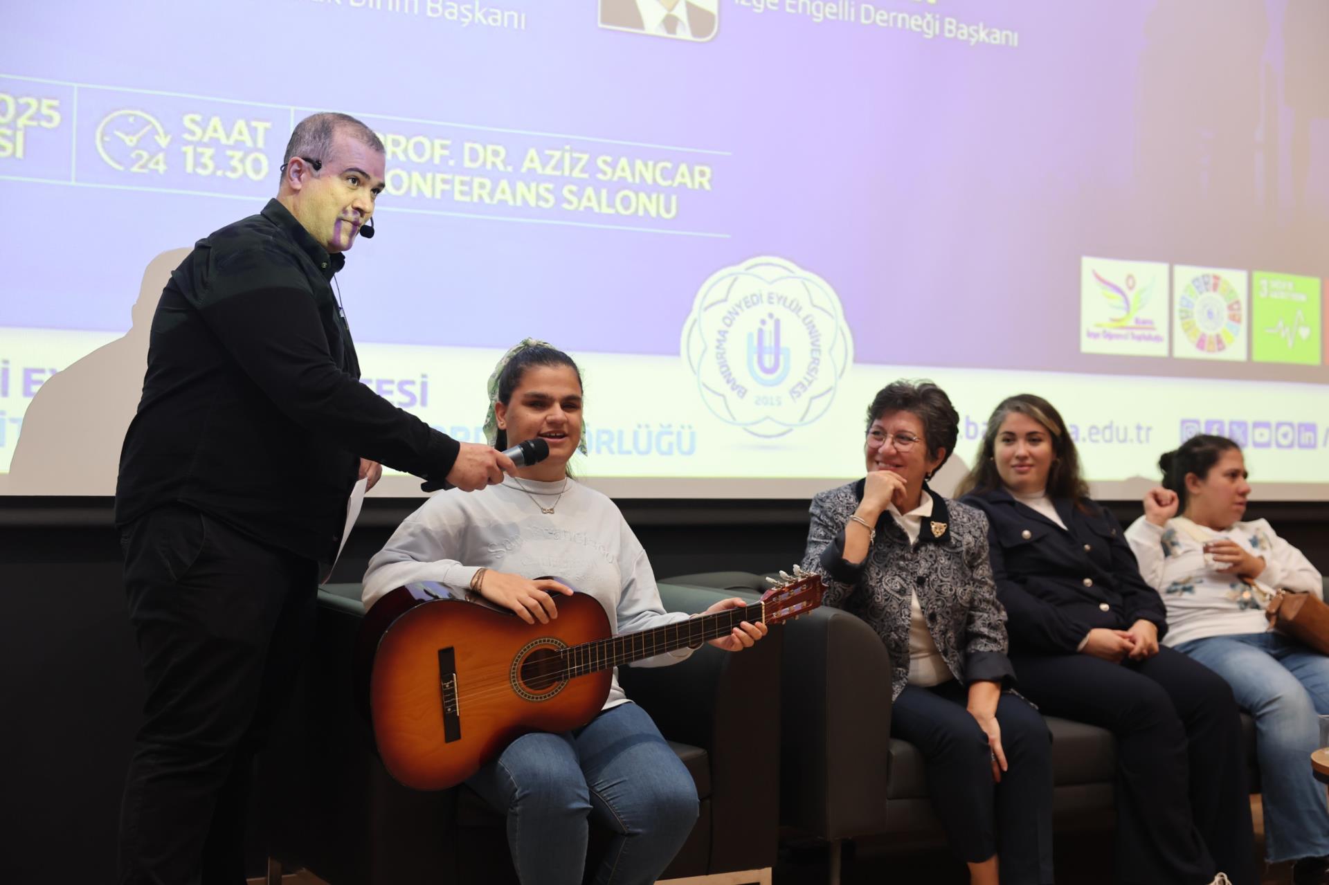Panelin moderatörlüğünü İzge Engelli Derneği Başkanı Nail Yurdusev üstlendi. Panelde; OBİDEV Başkanı Fatma Tabanlı, Özel Çocuklar Eğitim ve Dayanışma Derneği Başkanı ve Otizm Konfederasyonu Saymanı Parin Yakupyan, Down Türkiye Yönetim Kurulu Üyesi ve Otizm Konfederasyonu Hukuk Birim Başkanı Cansu Korkmaz konuşmacı olarak yer aldı. Etkinlikte ayrıca Üniversitemiz öğrencilerinden Ayşenur Otlu da kısa bir konuşma yaptı ve ardından gitar eşliğinde seslendirdiği şarkı, salonda duygusal anlar yaşanmasına neden oldu.