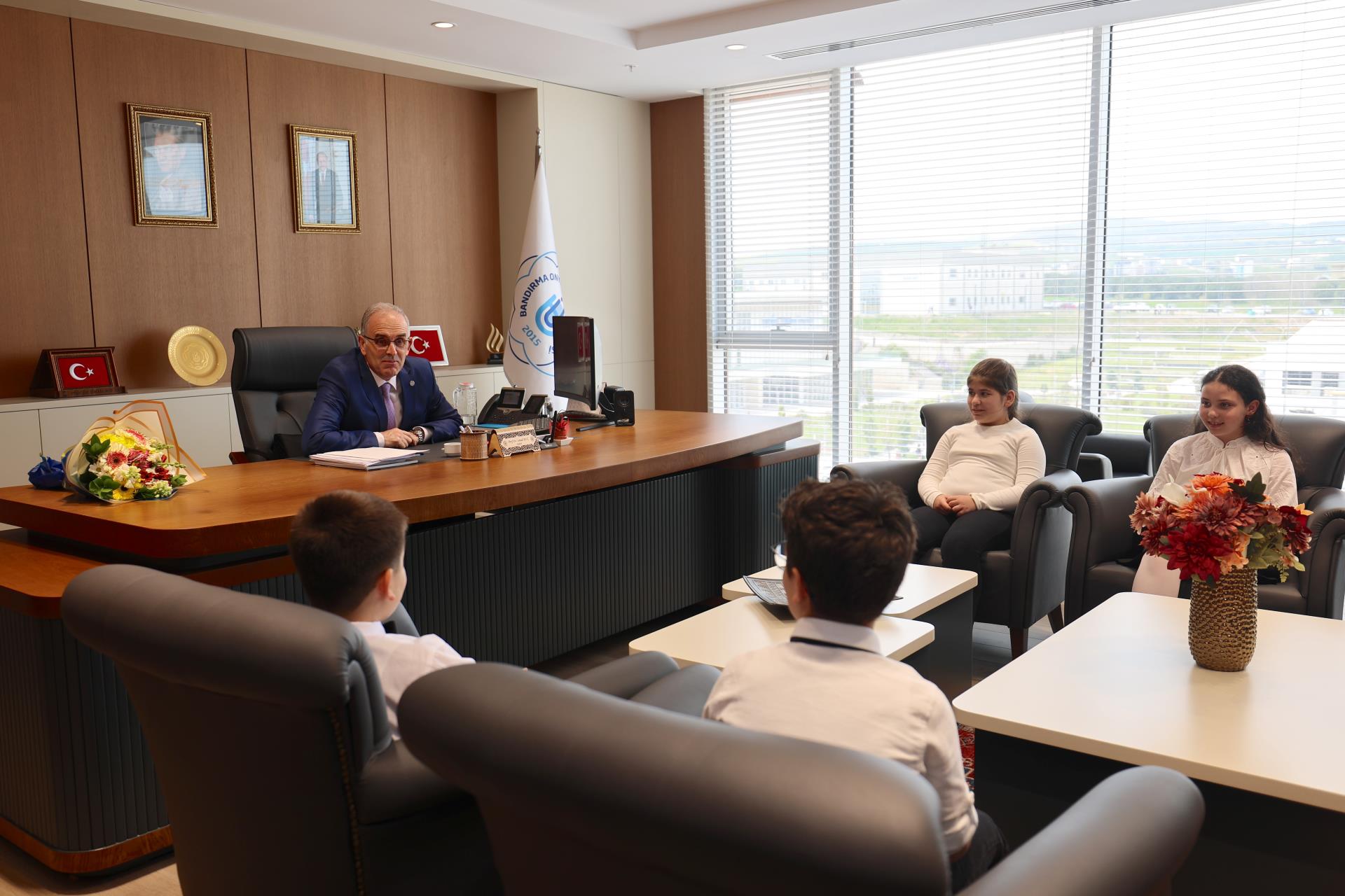 Bandırma Doğa Koleji Öğrencilerinden Rektörümüze 23 Nisan Ulusal Egemenlik ve Çocuk Bayramı Ziyareti