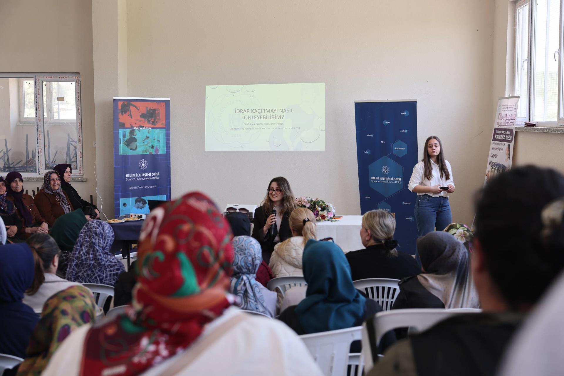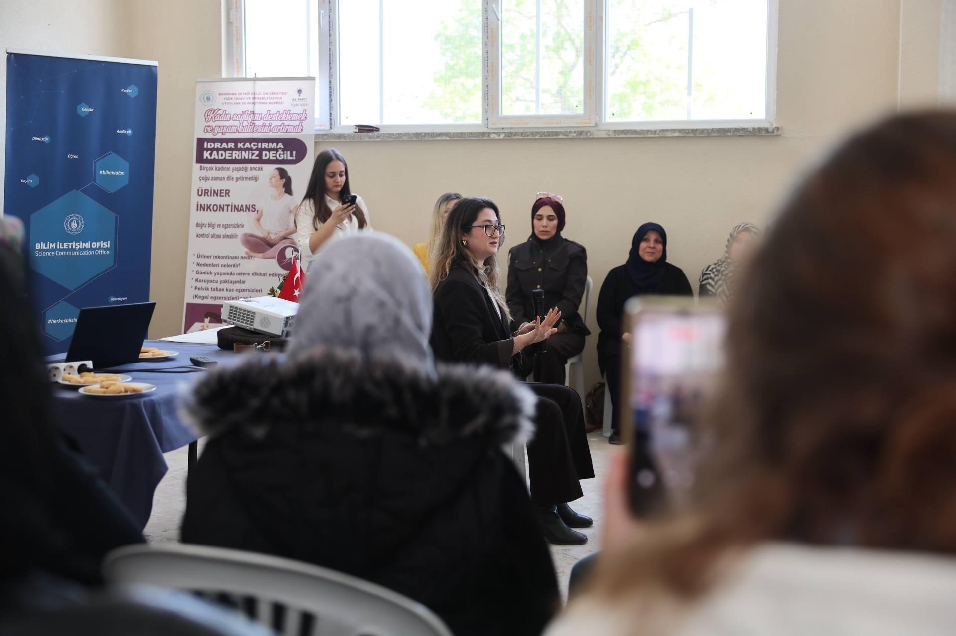 Bilim İletişimi Ofisimiz ile Fizik Tedavi ve Rehabilitasyon Uygulama ve Araştırma Merkezimiz iş birliğinde, Bilim Kafe Etkinlikleri kapsamında Bandırma Aksakal Mahallesi’nde kadınlara yönelik “Üriner İnkontinans (İdrar Kaçırma) ve Pelvik Taban Sağlığı” konulu bir eğitim ve uygulama programı gerçekleştirildi. Programa Üniveresitemiz Fizik Tedavi ve Rehabilitasyon Uygulama ve Araştırma Merkezi (BANÜ-FTR) Müdürü Dr. Öğr. Üyesi Şule Keçelioğlu, Sağlık Bilimleri Fakültesi Dr. Öğr. Üyesi Derya Azim, akademik ve personelimiz ile Aksakal sakini kadınlar katıldı.