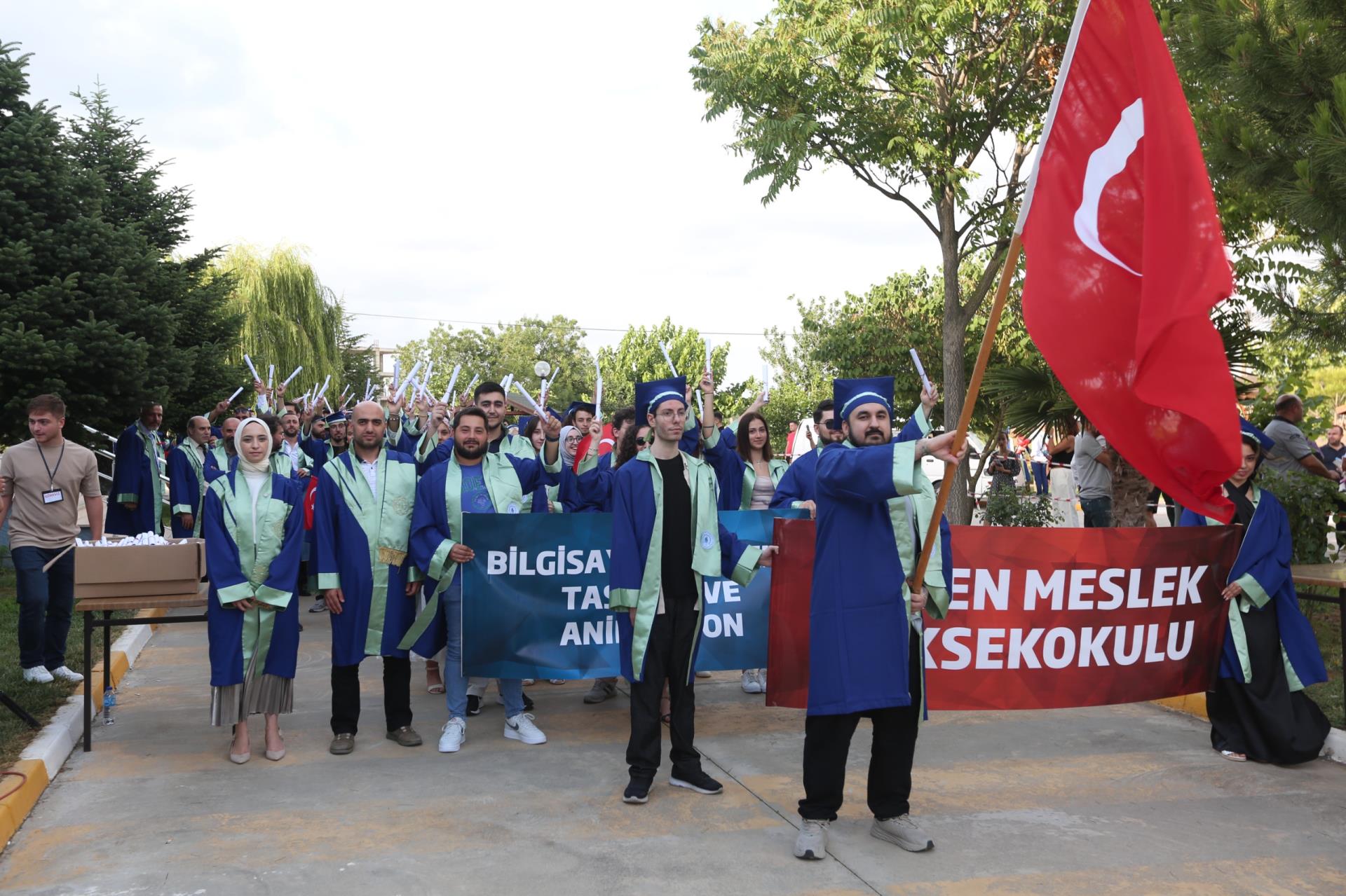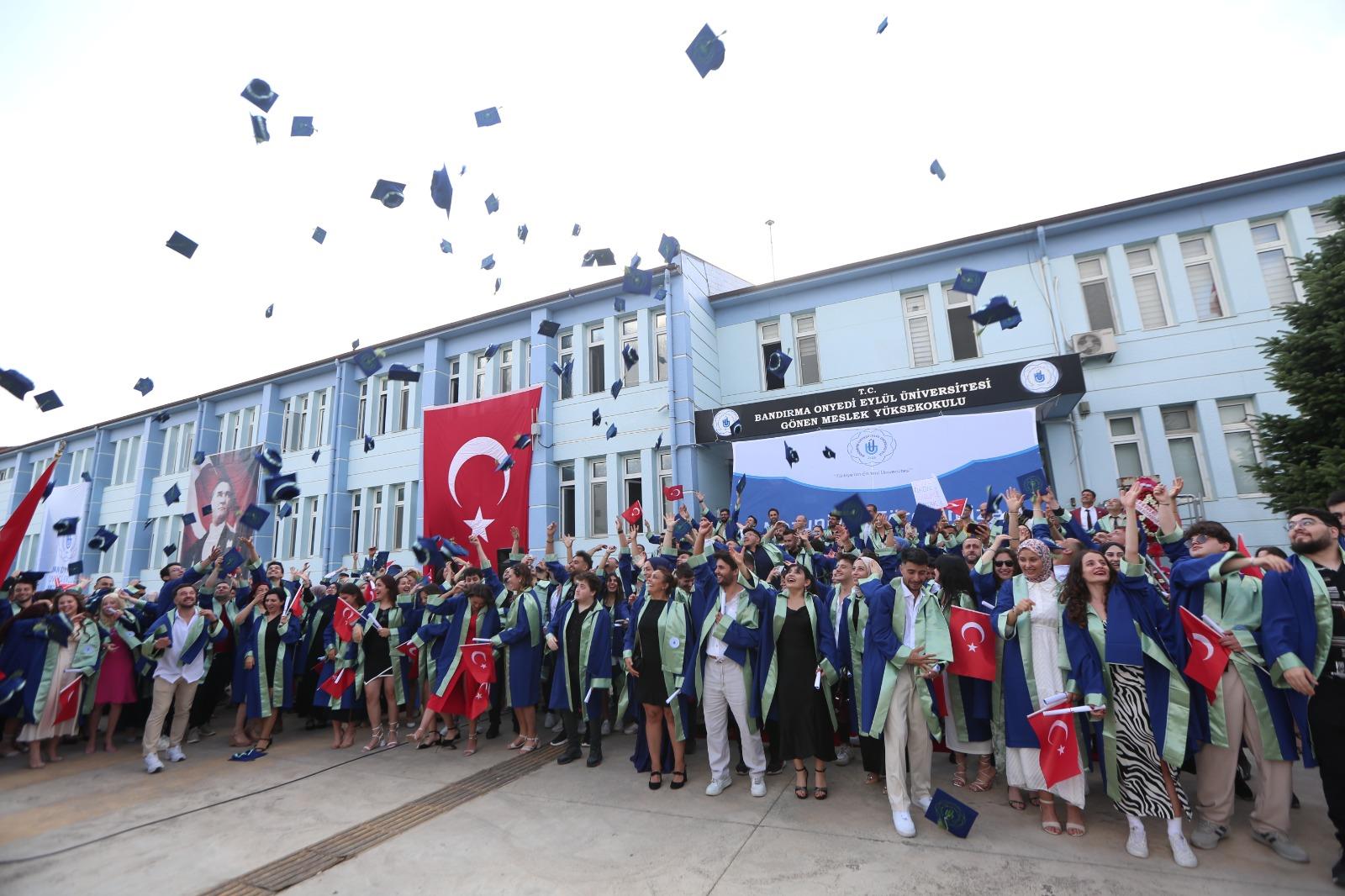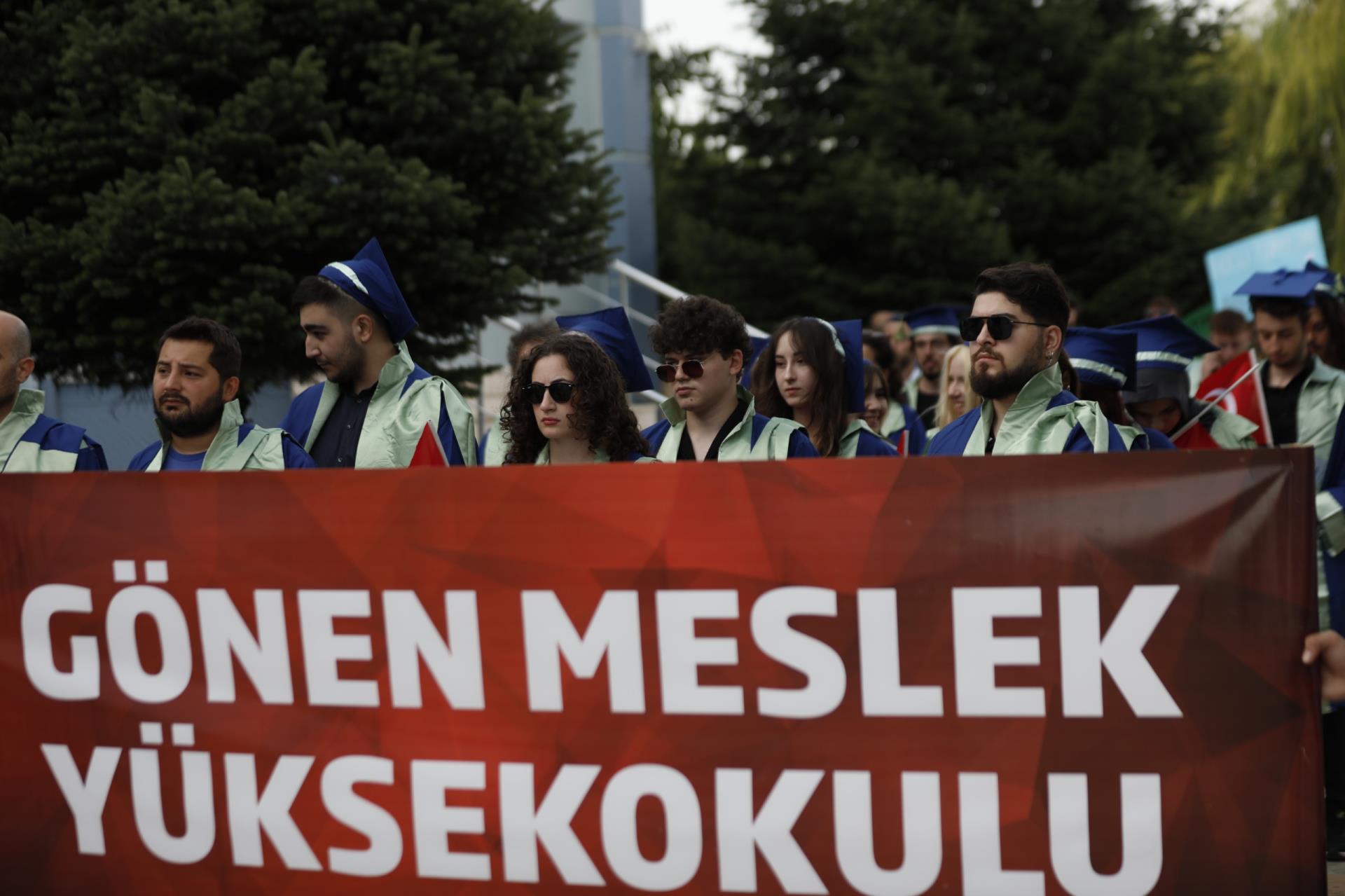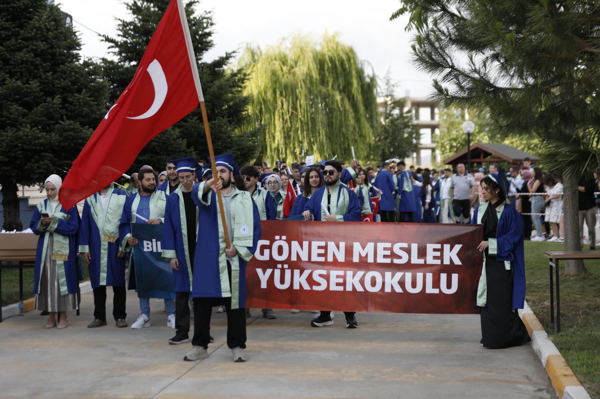 Gönen Meslek Yüksekokulu mezuniyet törenimiz büyük bir coşkuyla gerçekleşti. Gönen Meslek Yüksekokulu A. Dursun Akın Yerleşkesinde gerçekleşen ve Gönen Meslek Yüksekokulu Müdürümüz Dr. Öğr. Üyesi Muhammet Arucu’nun ev sahipliği yaptığı törene Rektörümüz Prof. Dr. İsmail Boz, Gönen Kaymakamı Dr. Arslan Yurt, Gönen Belediye Başkan Yardımcısı Mehmet Yılman, Gönen İlçe Emniyet Müdürü Aydın Zeybek, Gönen İlçe Jandarma Komutanı V. J. Kd. Bşvş. Selim Yafay, Gönen Ticaret Odası Başkanı İsmail Mutlu, Rektör Yardımcılarımız Prof. Dr. Alpaslan Serel, Prof. Dr. Feyzullah Temurtaş ve Prof. Dr. Ebru Kaya Mutlu, akademik ve idari personelimiz, basın mensupları, öğrencilerimiz ve kıymetli velileri katılım gösterdi.