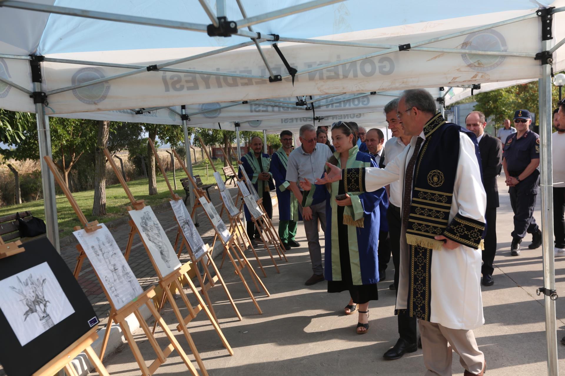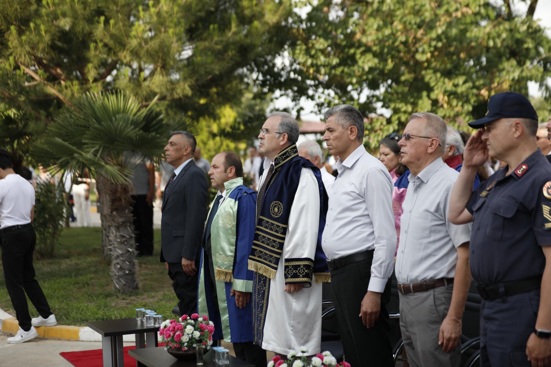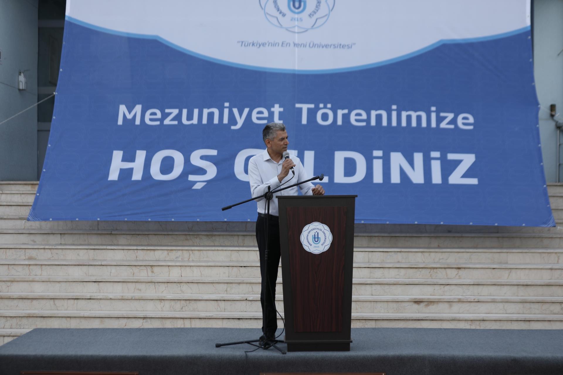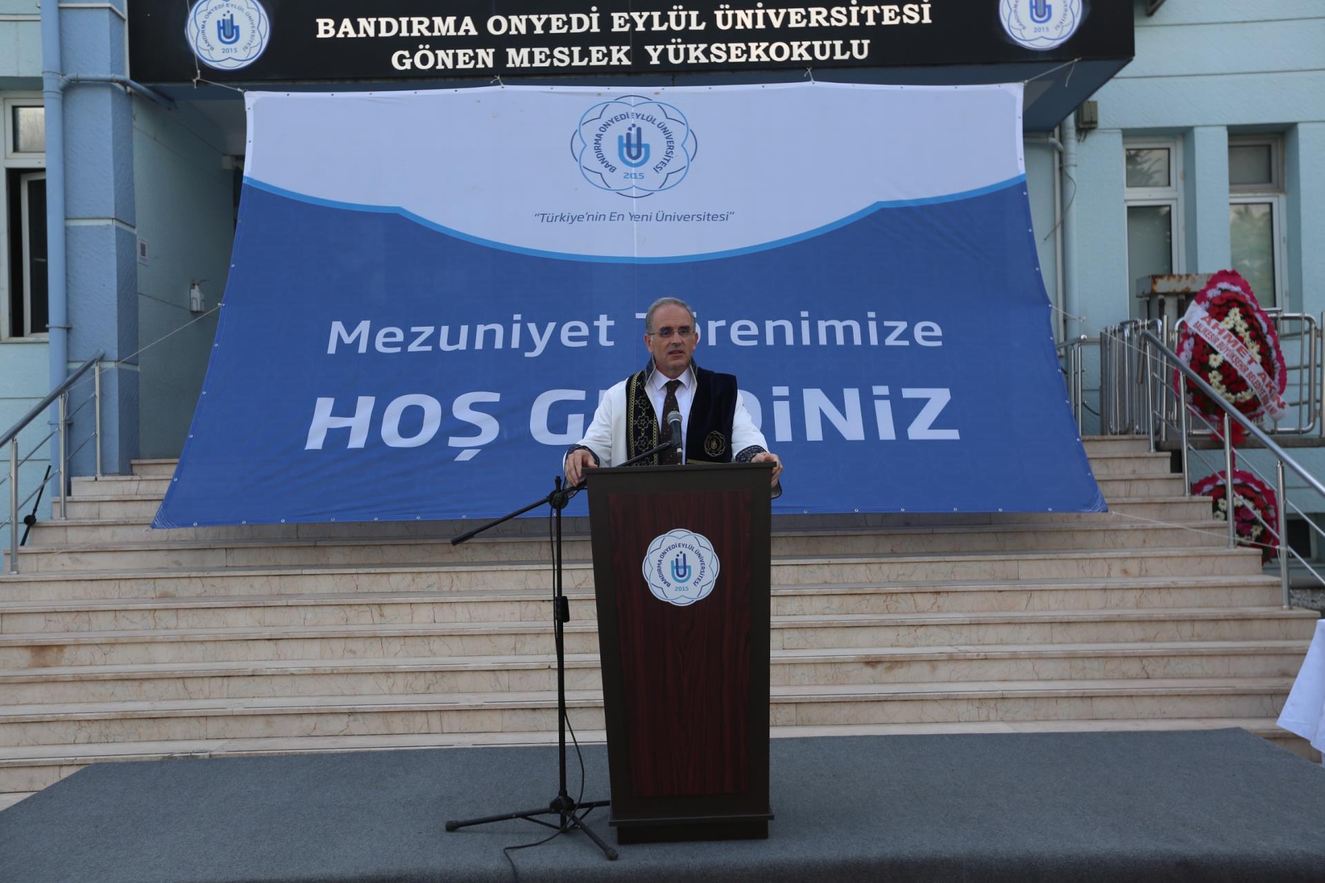 Saygı duruşu ve İstiklal Marşımızın okunması ile başlayan mezuniyet töreninin açılış konuşmasını Gönen Meslek Yüksekokulu Müdürümüz Dr. Öğr. Üyesi Muhammet Arucu gerçekleştirdi. Selamlama konuşmalarını gerçekleştiren Rektörümüz Prof. Dr. İsmail Boz, mezun öğrencilerimize meslek yaşamlarında başarılar diledi. Gönen Kaymakamı Dr. Arslan Yurt da öğrencilerimize bundan sonraki yaşamlarında başarı dileklerinde bulunarak mezuniyetlerinin hayırlı olmasını temenni etti. 2023-2024 eğitim-öğretim yılında Gönen Meslek Yüksekokulumuzu birincilikle bitiren Bilgisayar Programcılığı Programı Öğrencimiz Uygar Çelik de heyecanını ve mutluluğunu dile getirdiği bir konuşma gerçekleştirdi.