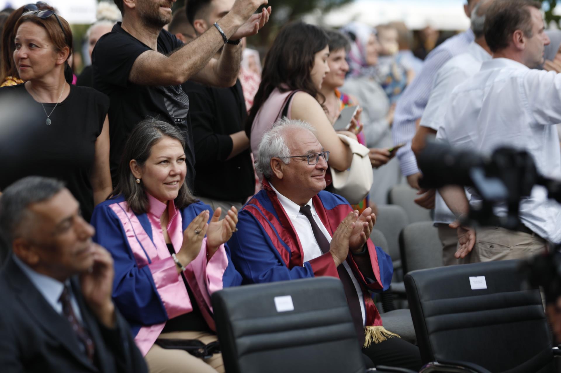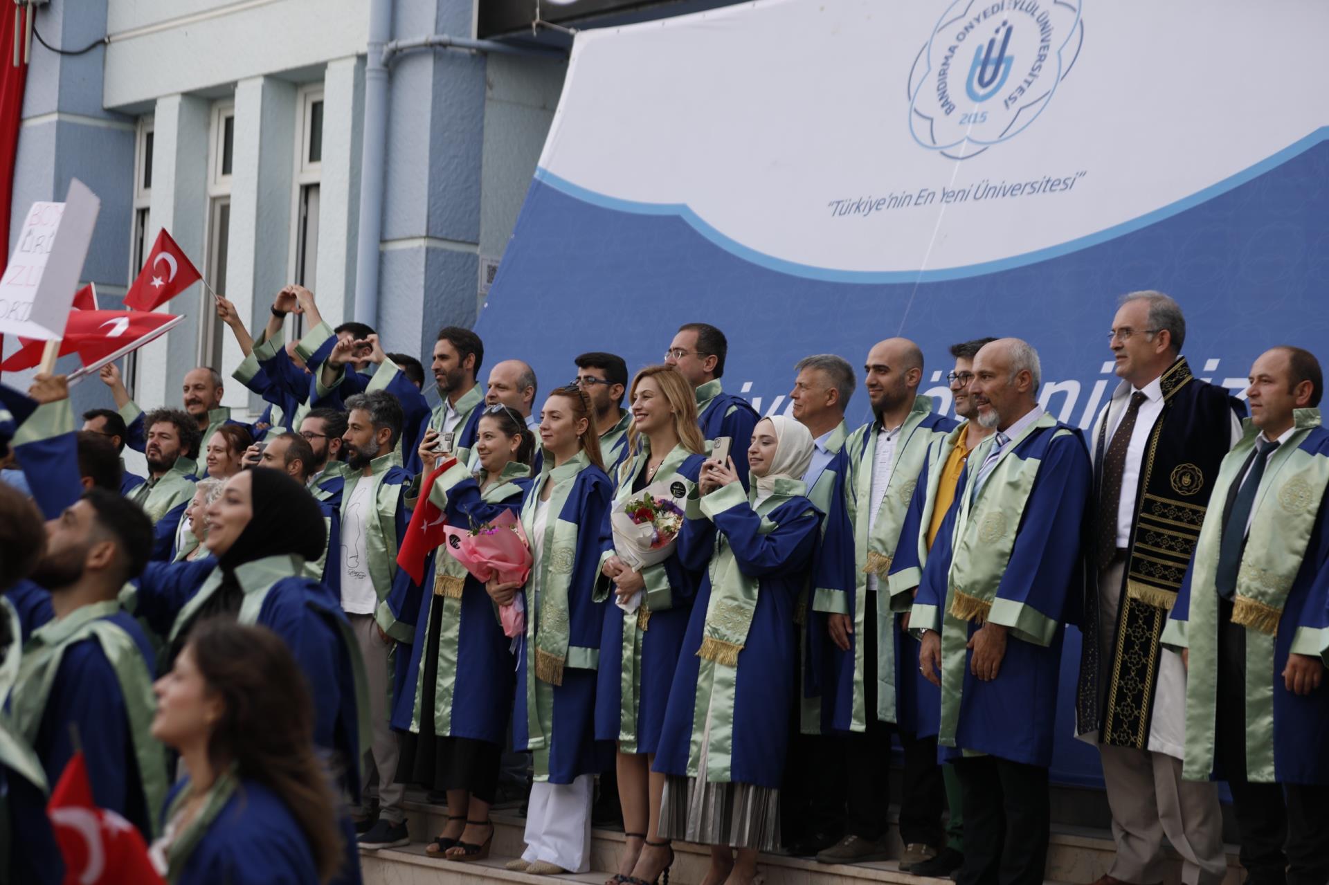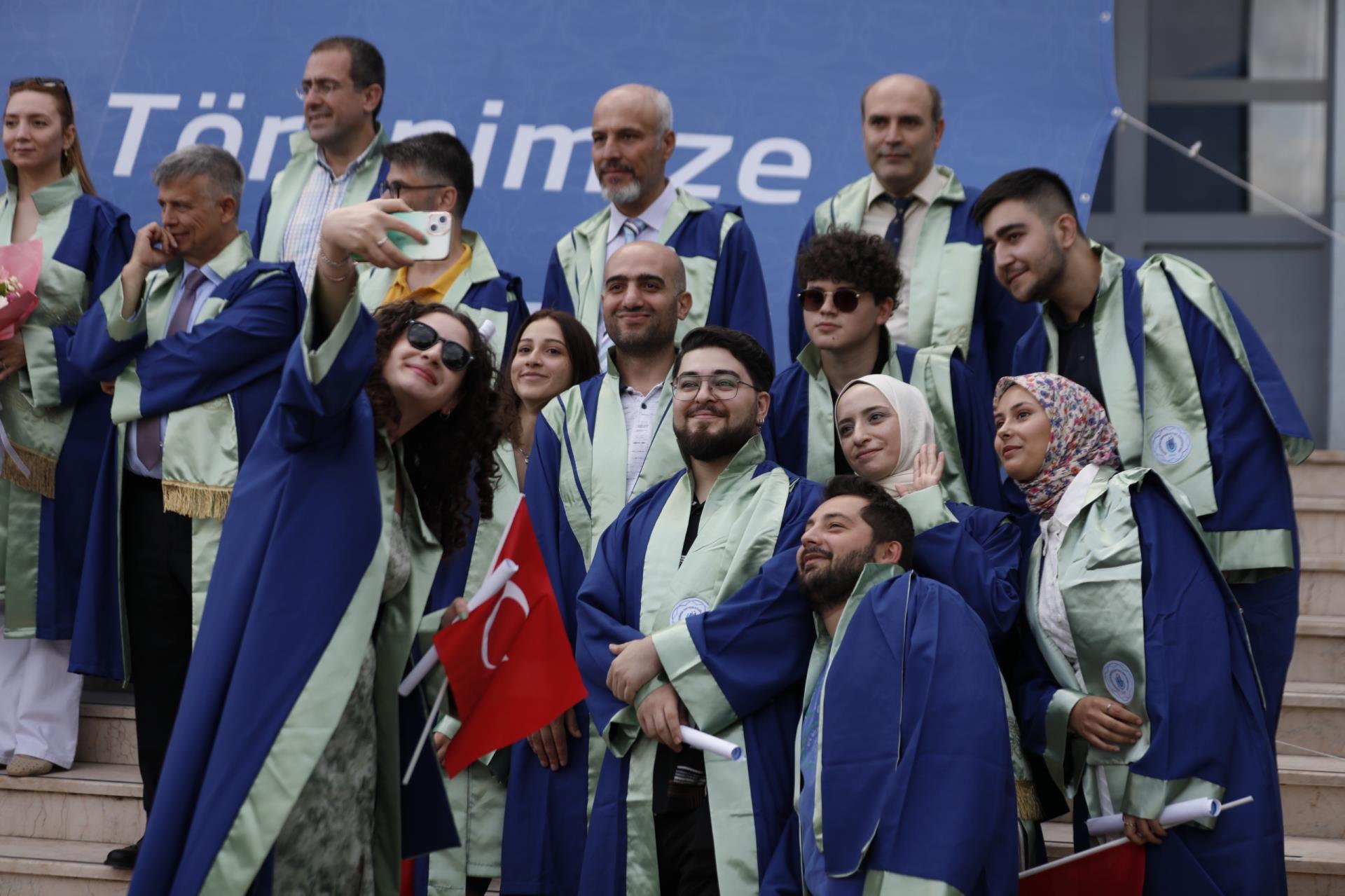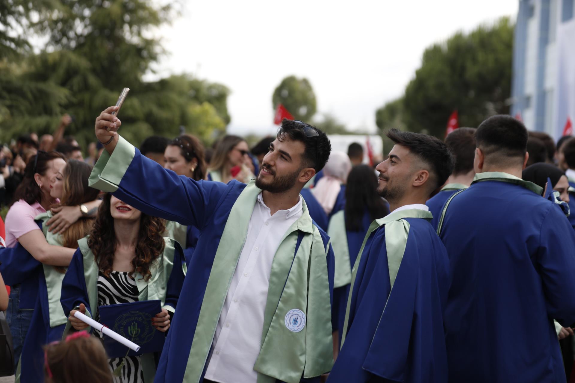 Büyük bir coşkuyla gerçekleşen mezuniyet törenimiz mezun öğrencilerimizin keplerini havaya fırlatmasıyla son buldu. Yüzlerce kepin havada süzüldüğü bu güzel an fotoğraf ve video çekimleriyle ölümsüzleştirildi.