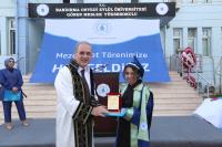 Konuşmalardan sonra bölümlerini birincilikle bitiren öğrencilerimiz tarafından tüm mezun öğrencilerimiz adına kütüğe plaket çakma seremonisi gerçekleştirildi. Programda daha sonra dereceye giren öğrencilerimize teşekkür belgesi takdim törenine geçildi. Üniversitemizi derece ile tamamlayan öğrenciler teşekkür belgelerini Rektörümüz Prof. Dr. İsmail Boz ve protokol üyelerinin elinden aldı. Teşekkür belgesi takdimlerinin ardından Meslek Yüksekokulu Müdürümüz Dr. Öğr. Üyesi Muhammet Arucu tarafından öğrencilerimize mezuniyet belgeleri takdim edildi.