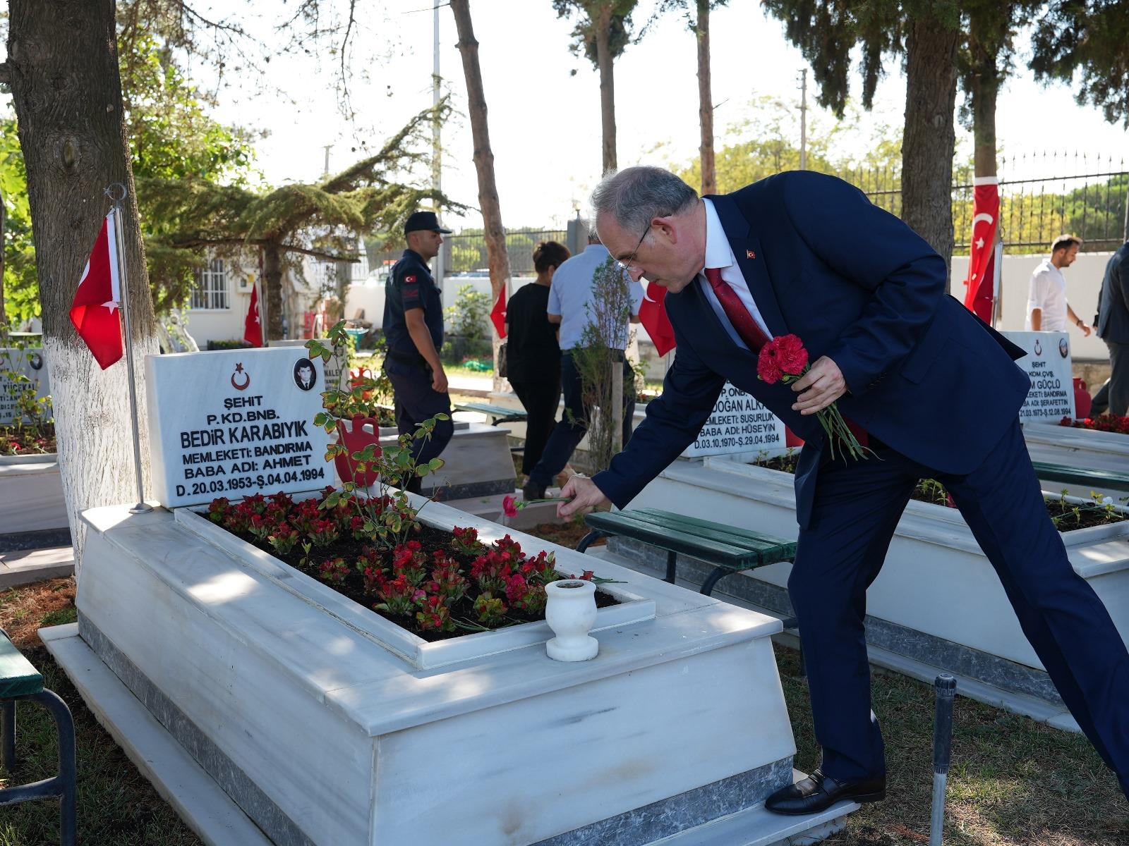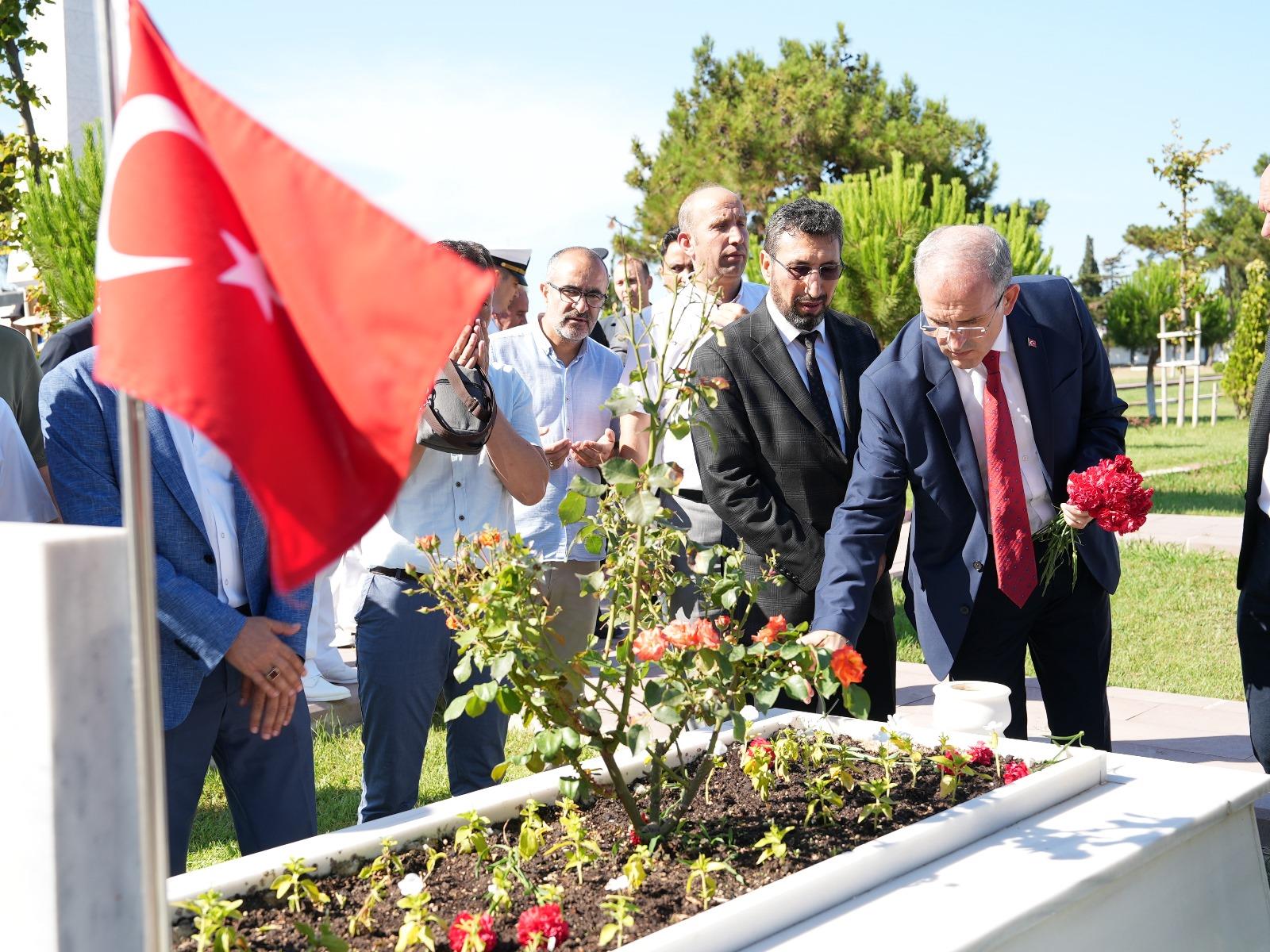 Program kapsamında düzenlenen bir başka etkinlik ise Bandırma Şehitliği’nde gerçekleştirildi. Şehitlik ziyareti mahiyetinde gerçekleştirilen etkinlikte Kuran-ı Kerim tilaveti yapıldı ve dualar okundu. Rektörümüz Prof. Dr. İsmail Boz ve protokol üyeleri, şehitlerimizin kabirlerine karanfil bıraktı.