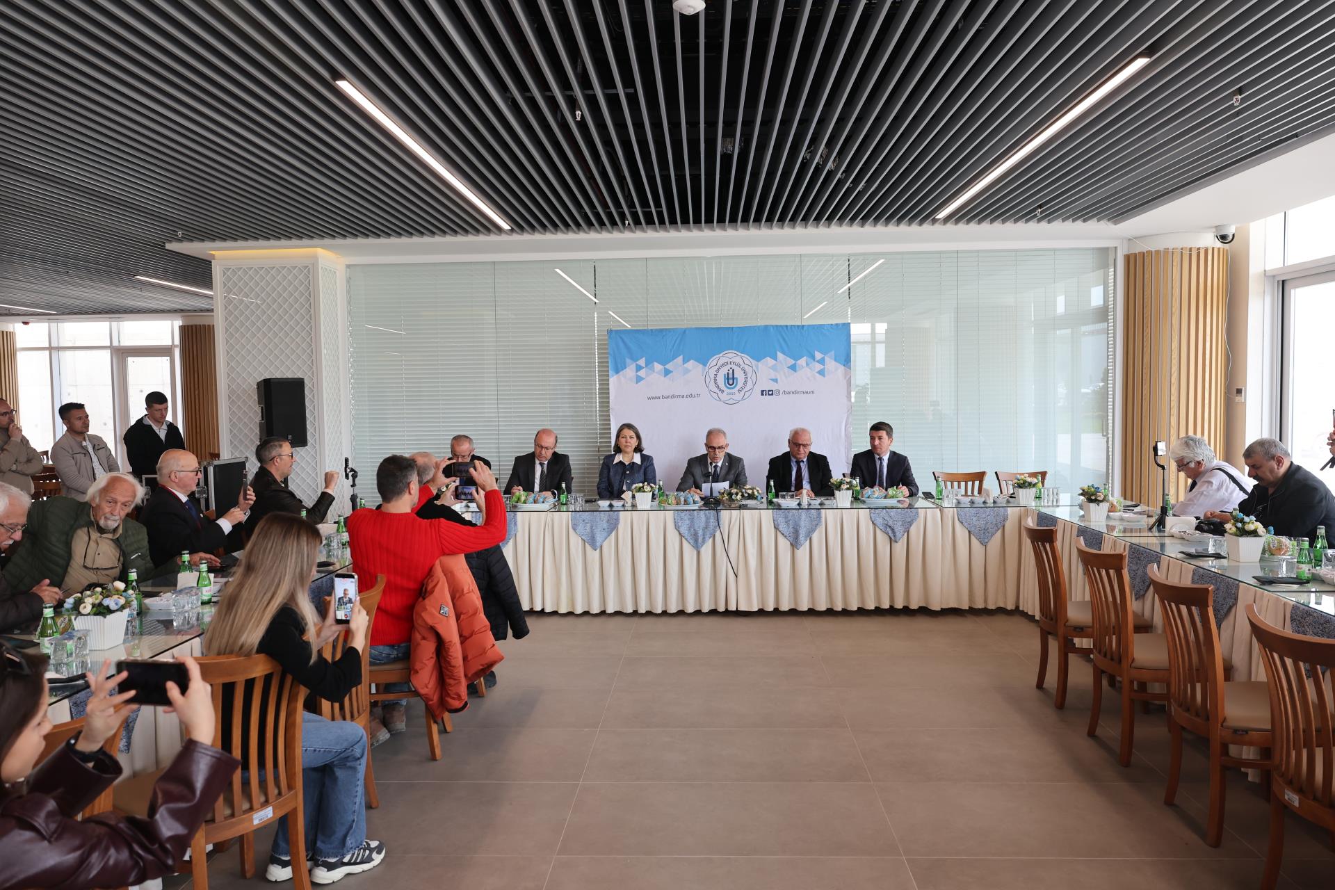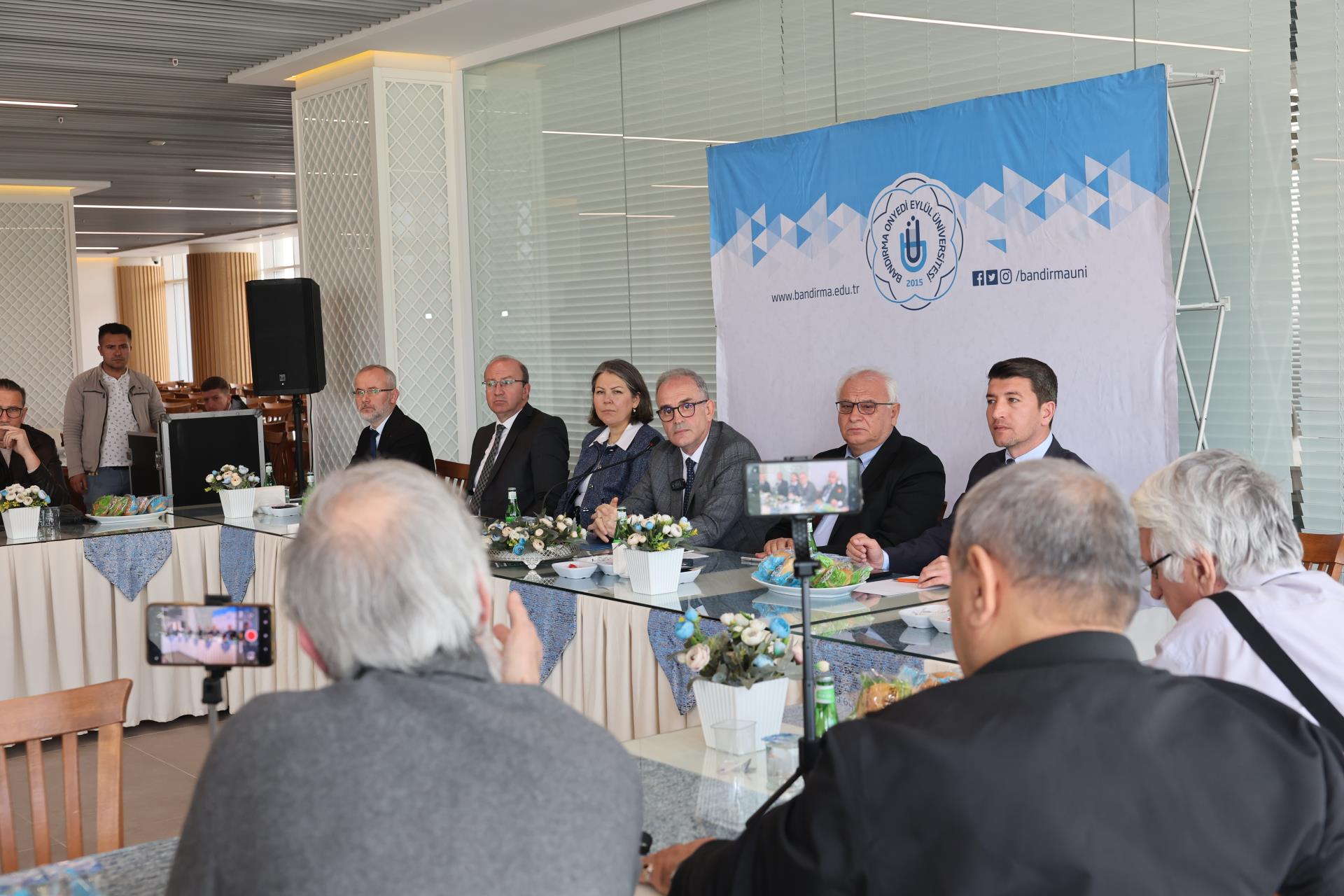 Üniversitelerin bulundukları şehirle birlikte geliştiğini vurgulayan Rektörümüz Prof. Dr. İsmail Boz, şu değerlendirmede bulundu: “Üniversiteler yalnızca kendi imkânlarıyla değil, bulundukları şehrin tüm dinamikleriyle birlikte büyür ve güçlenir. Bu noktada, basın mensuplarımızın üniversitemizin çalışmalarını daha görünür kılması ve başarılarımızı daha geniş kitlelere ulaştırması son derece önemlidir. Bandırma’nın gelişimi, şehrimizin ihtiyaç ve beklentilerinin doğru şekilde ifade edilmesi ve ortak akılla çözüm üretilmesi noktasında siz değerli paydaşlarımızın desteğine her zamankinden daha fazla ihtiyaç duyuyoruz.” dedi.
